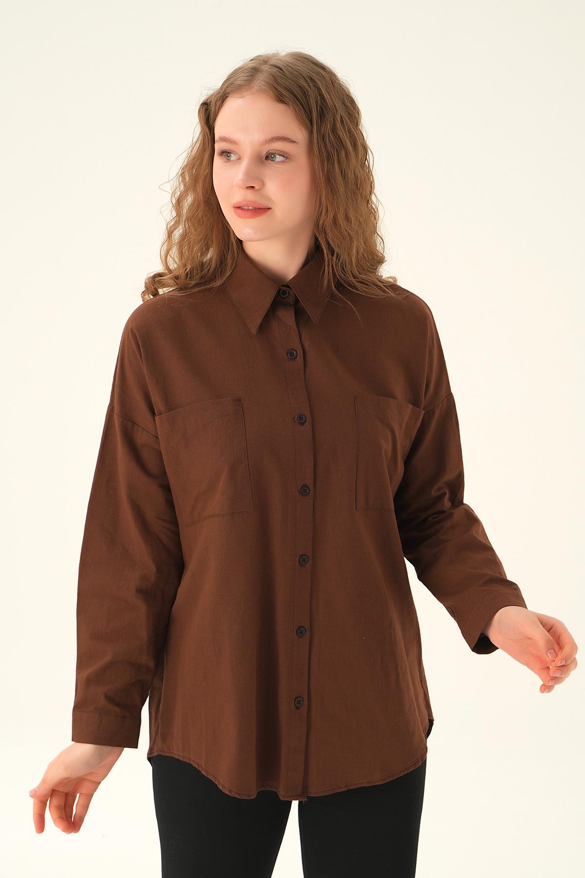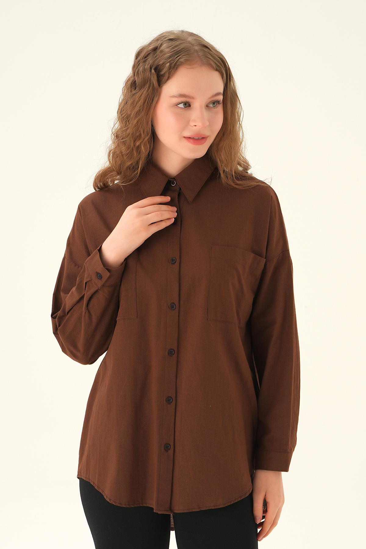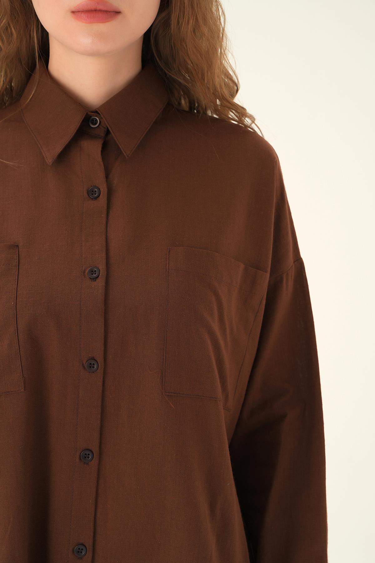 Kahve Çift Cep Gömlek 6891A