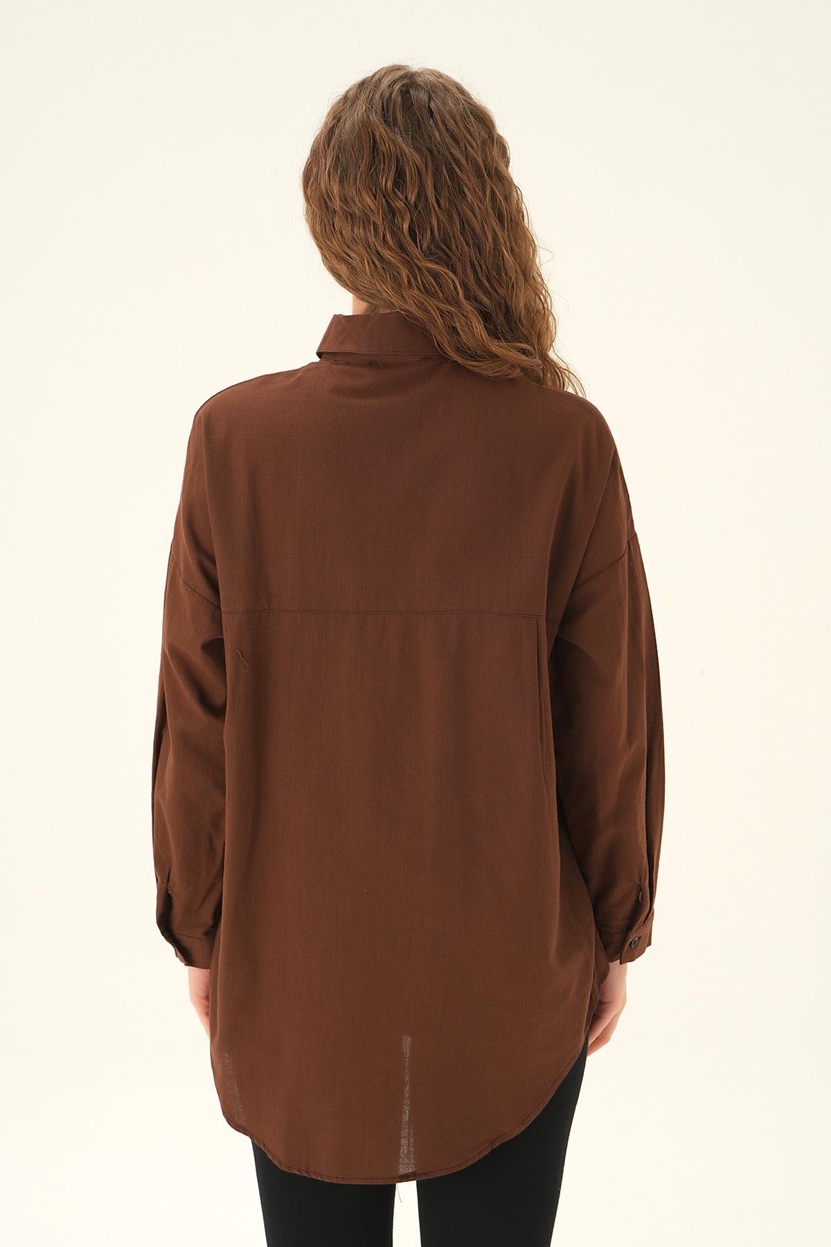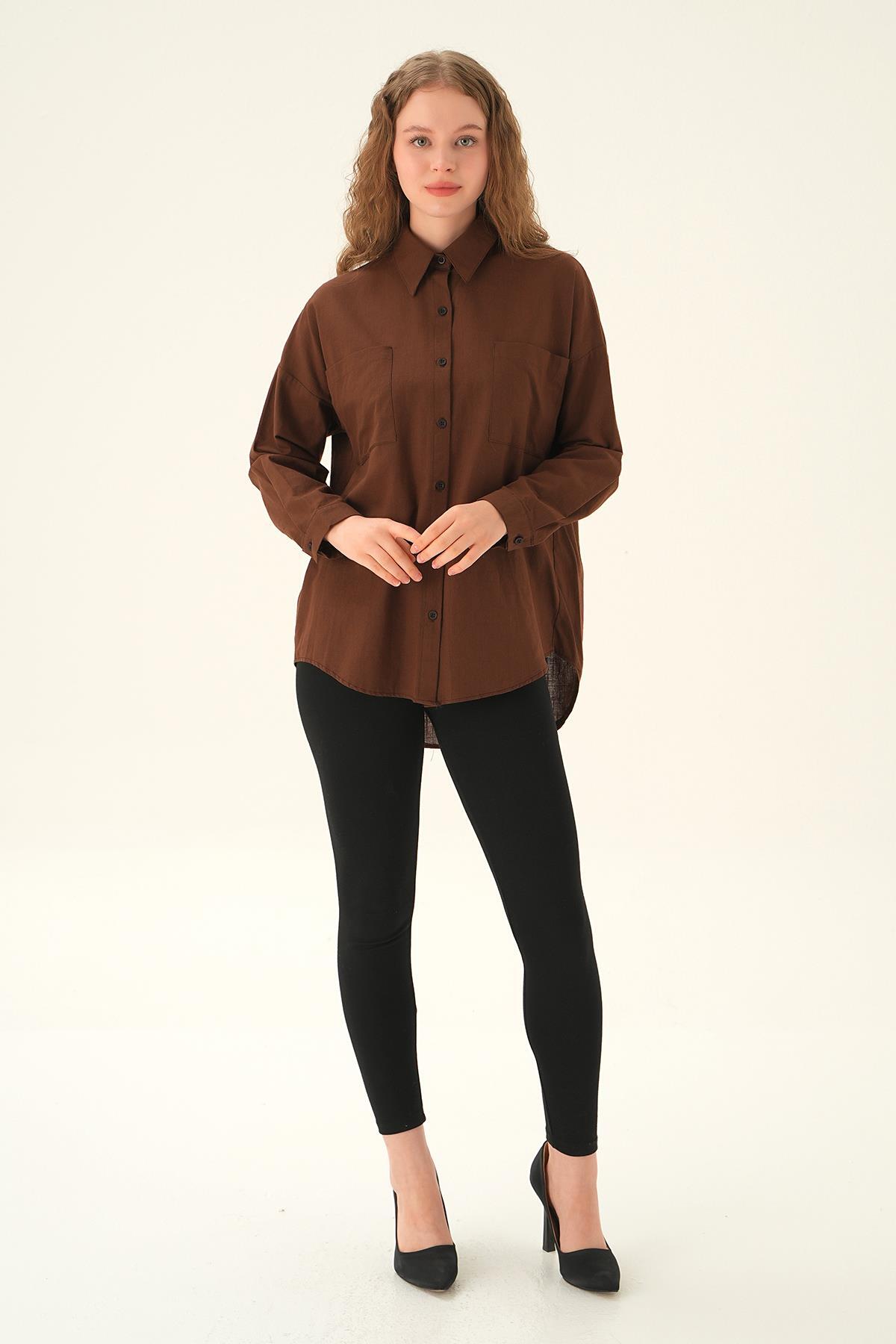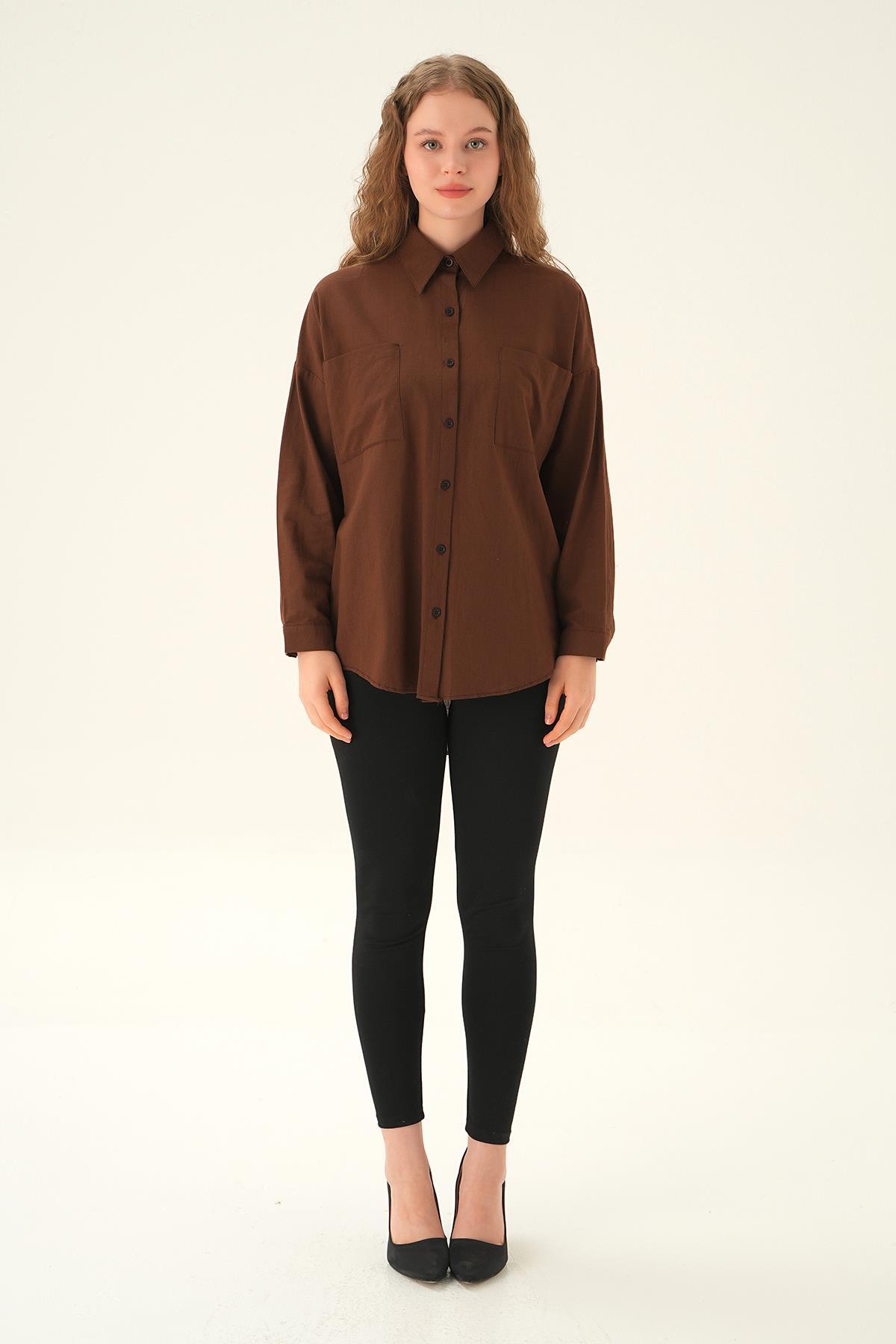 Kahve Çift Cep Gömlek 6891A