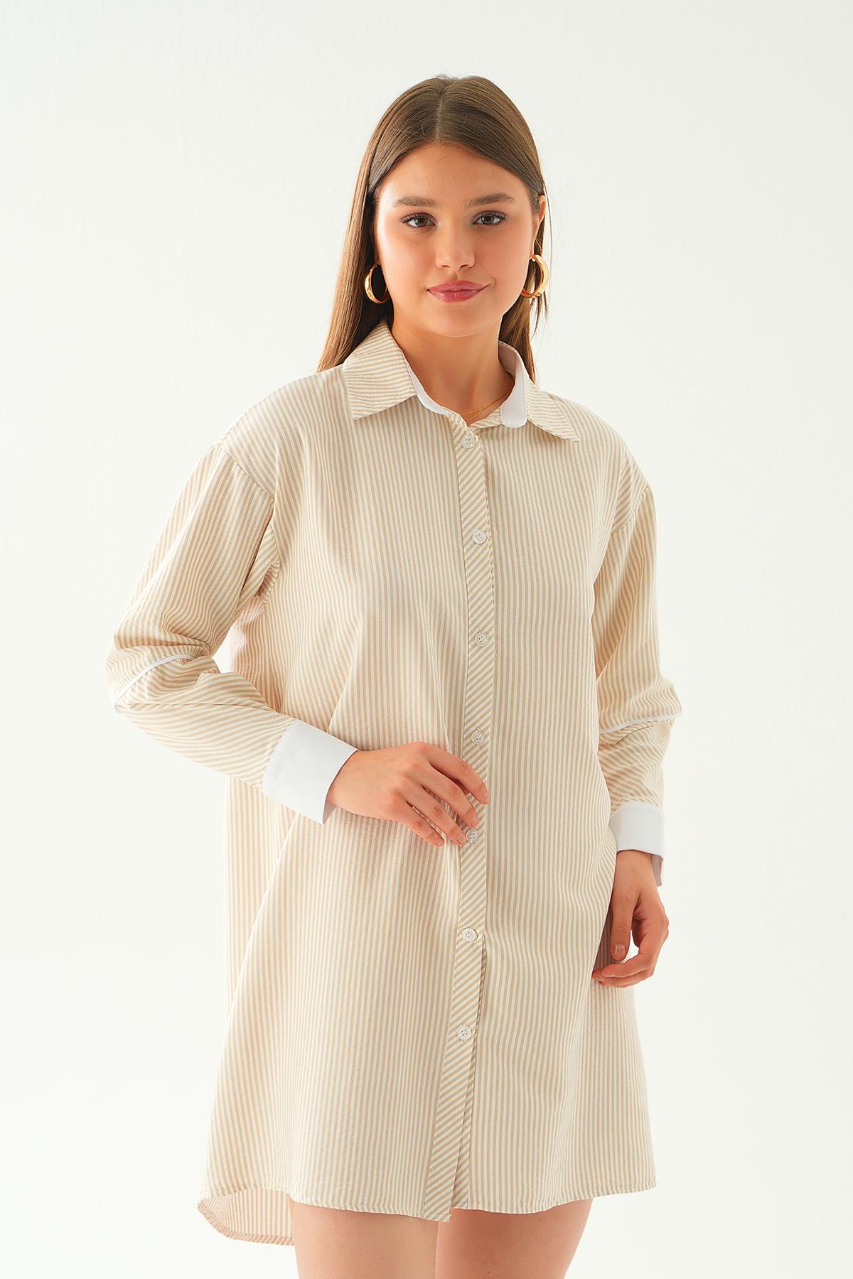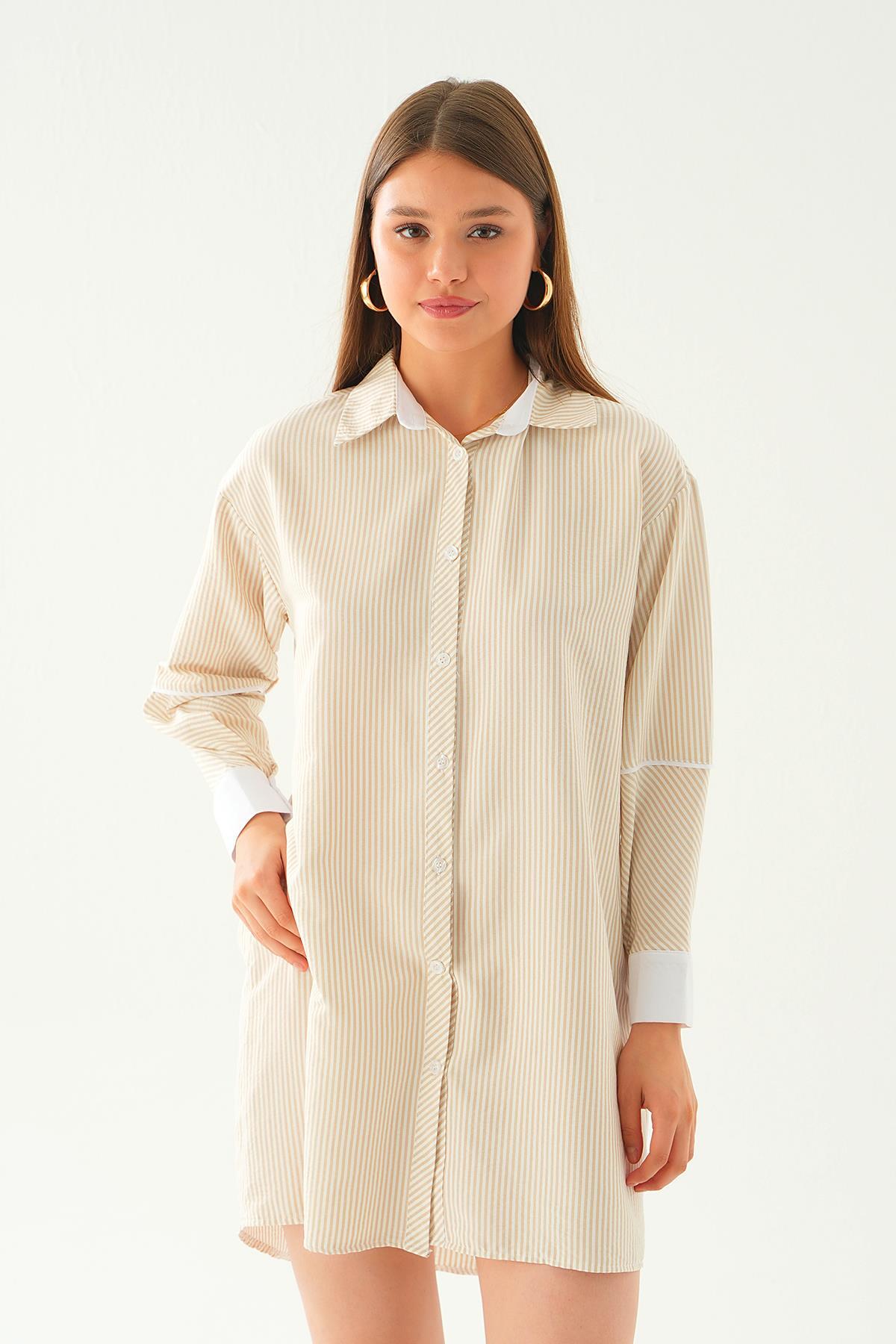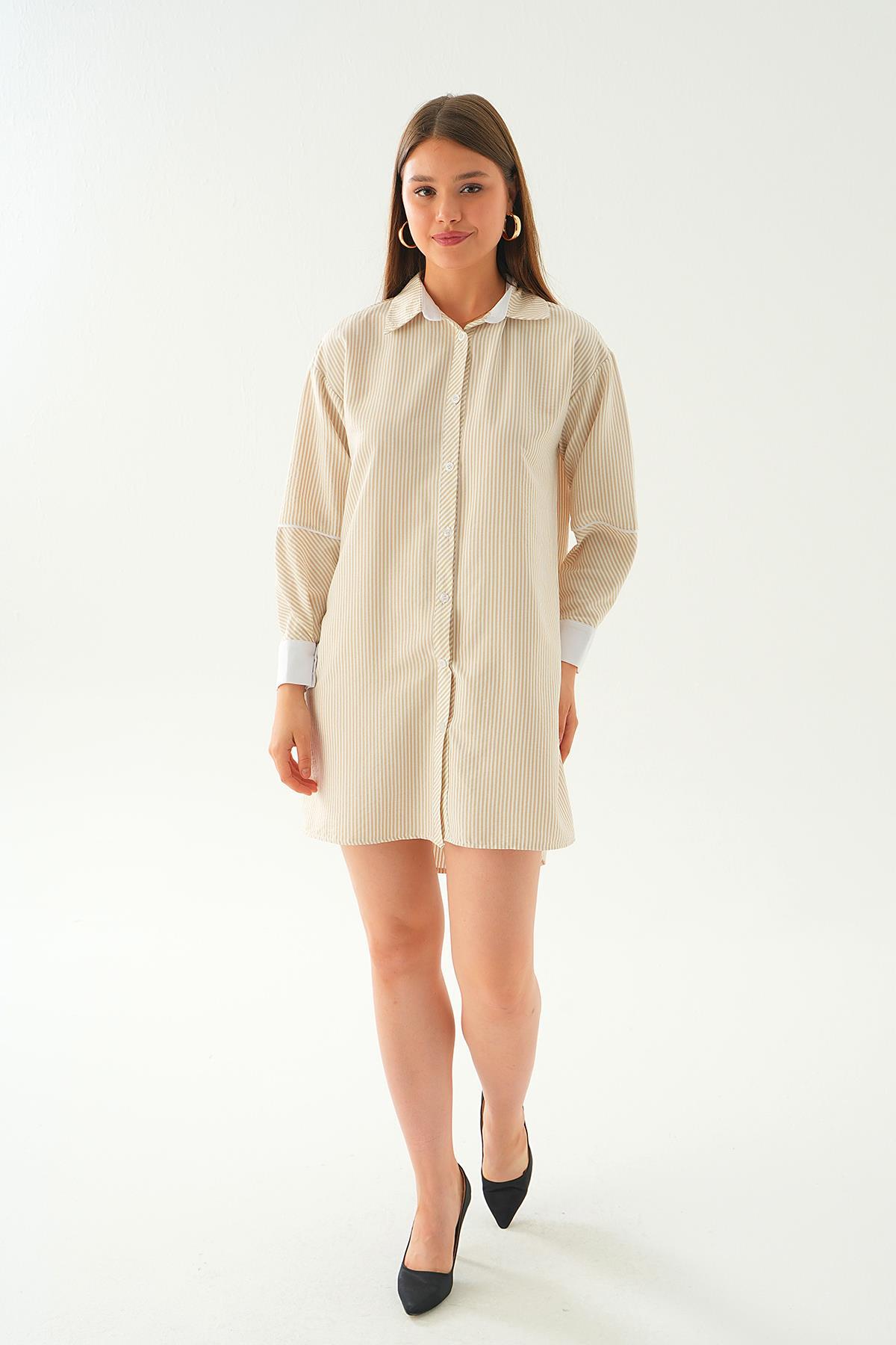 Bej Kol Biyeli Uzun Gömlek 6895A