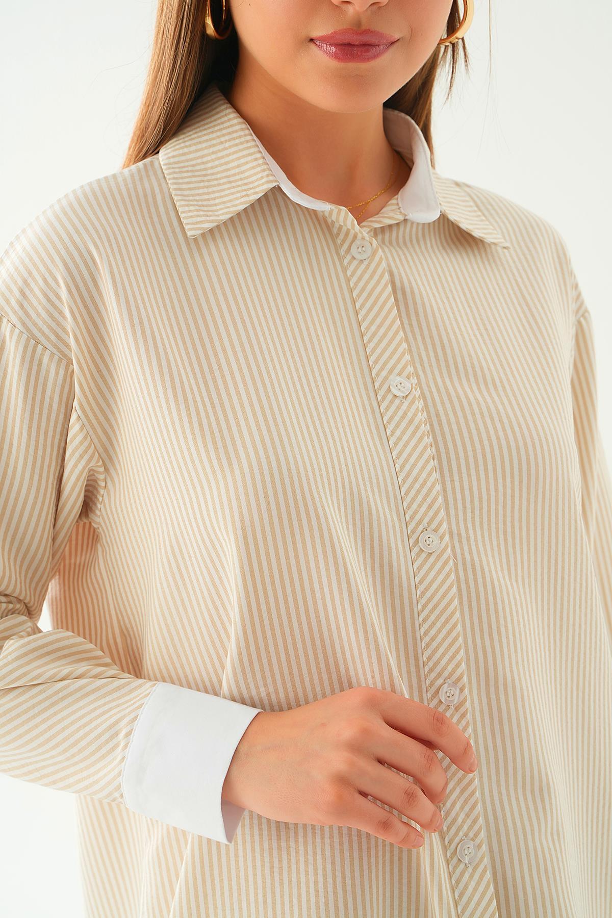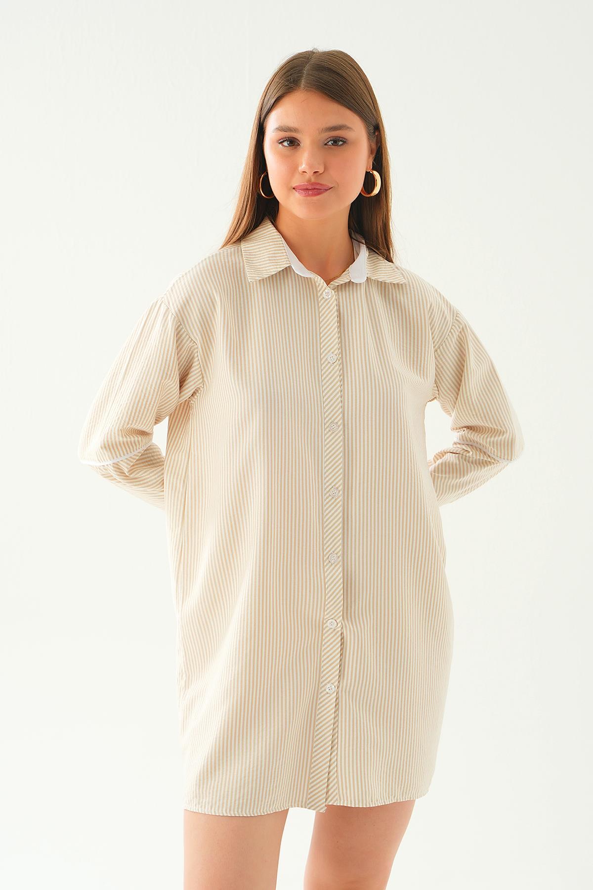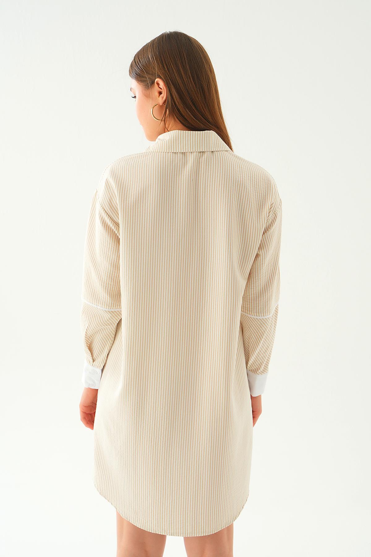Bej Kol Biyeli Uzun Gömlek 6895A
