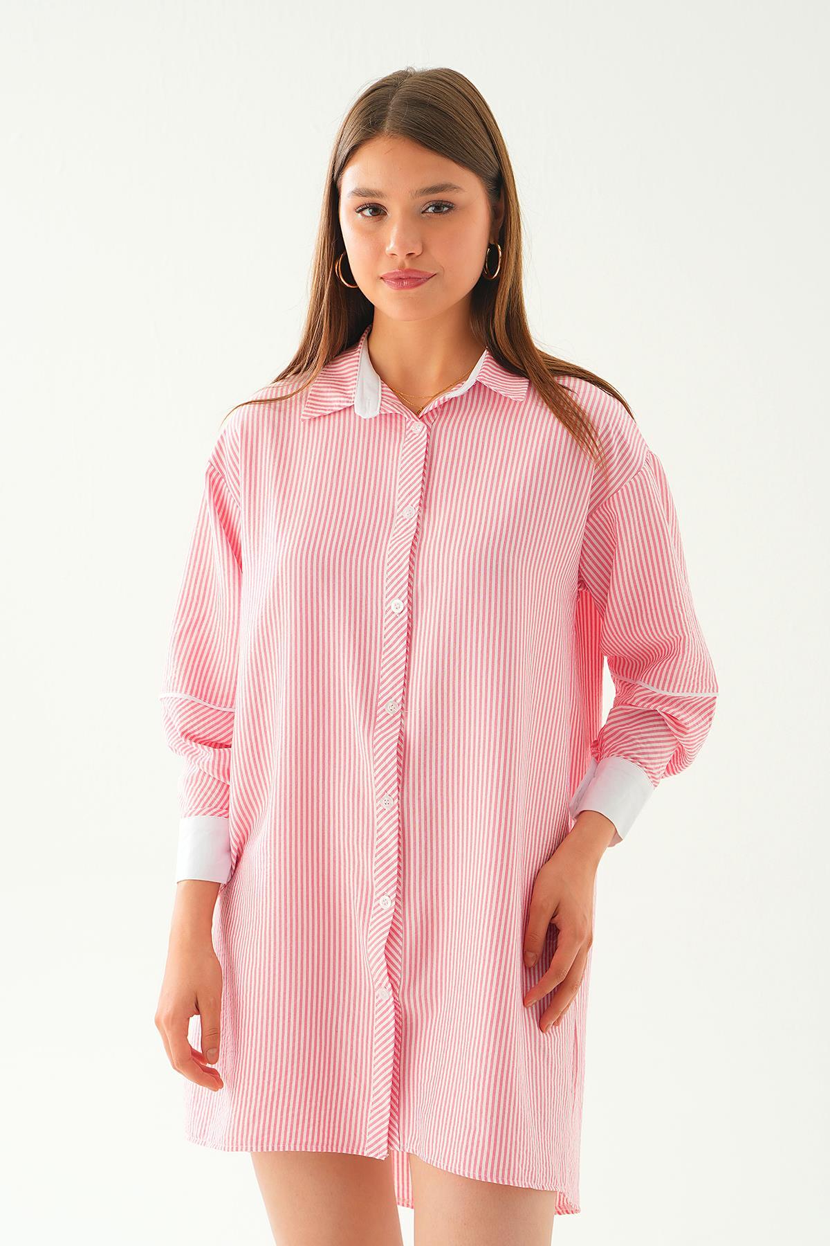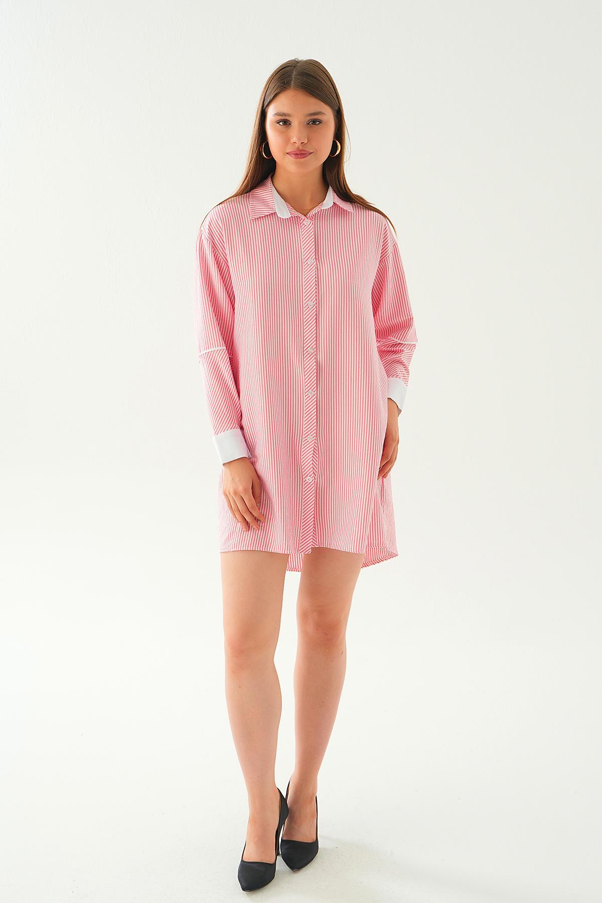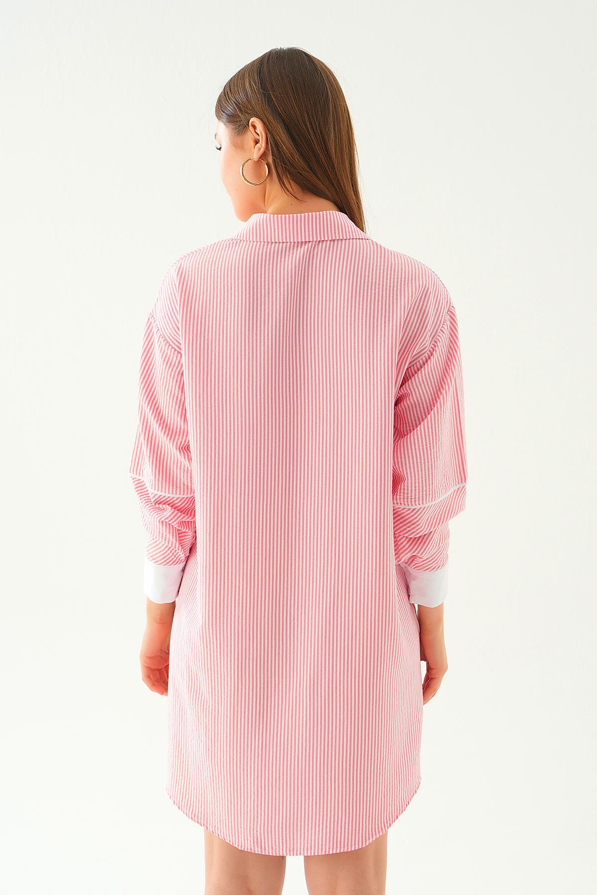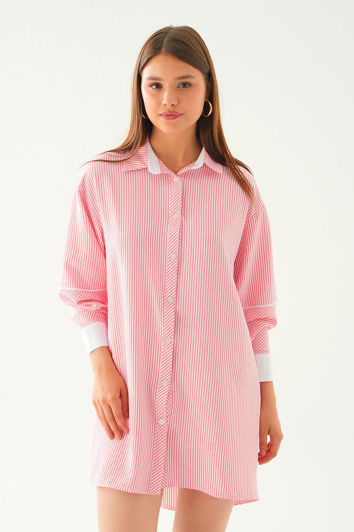 Pembe Çizgili Oversize Gömlek 5460 - RAYS Pembe Çizgili Oversize Gömlek 5460 - RAYS (1)