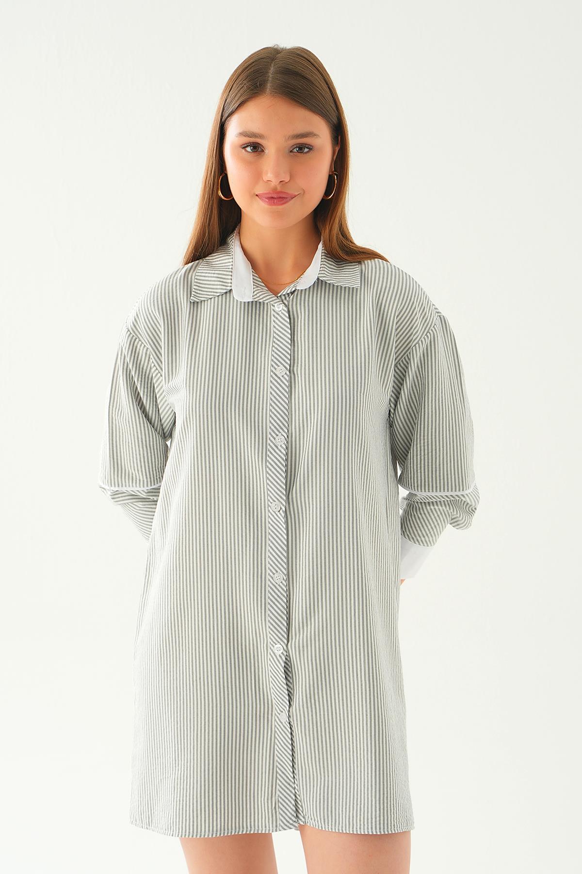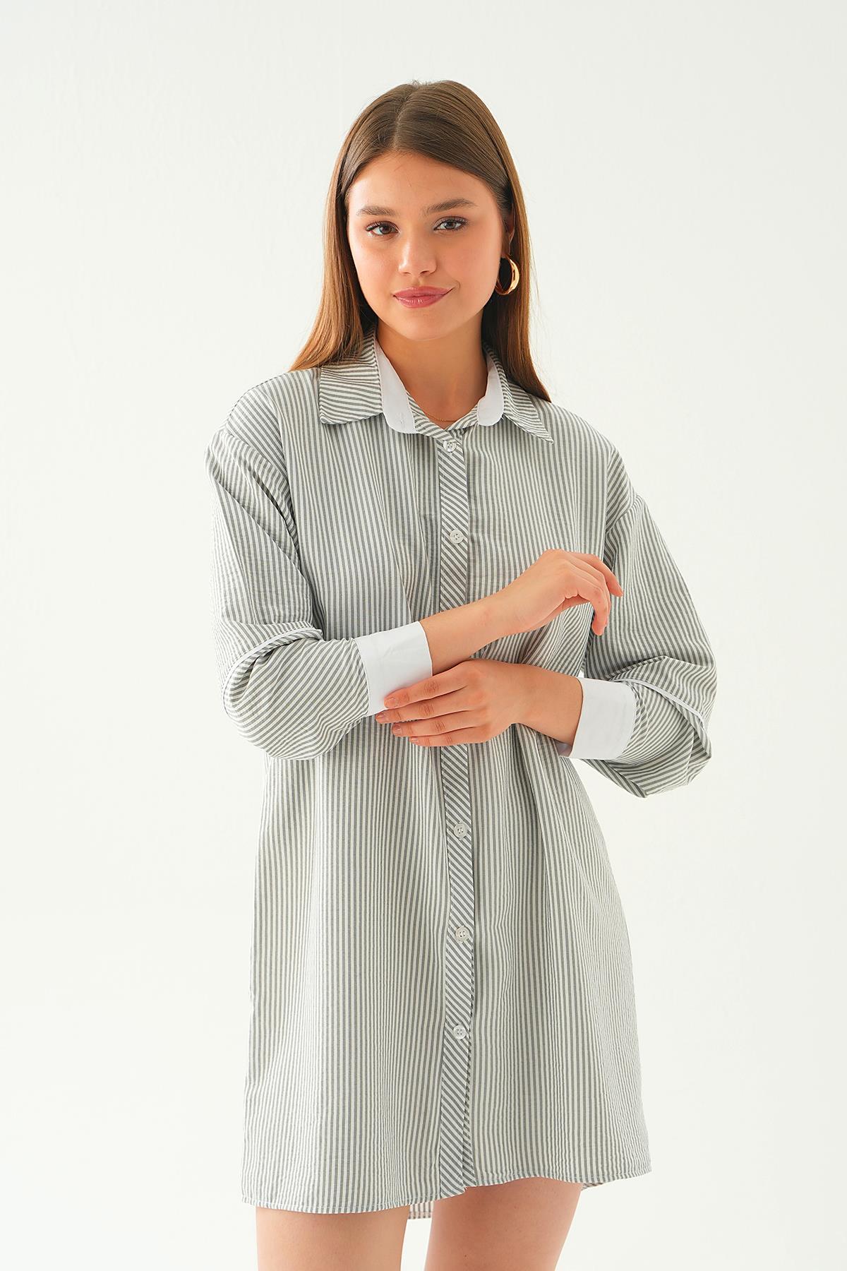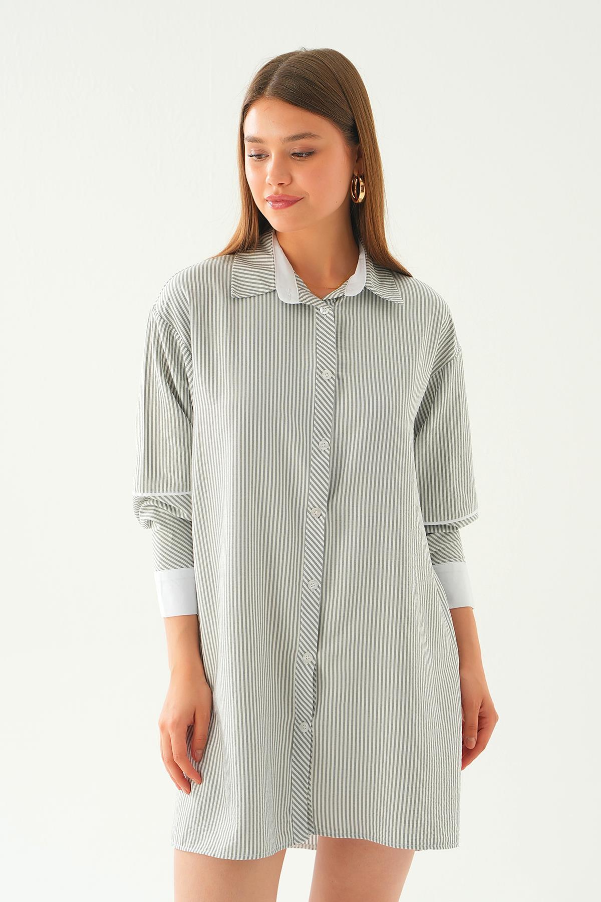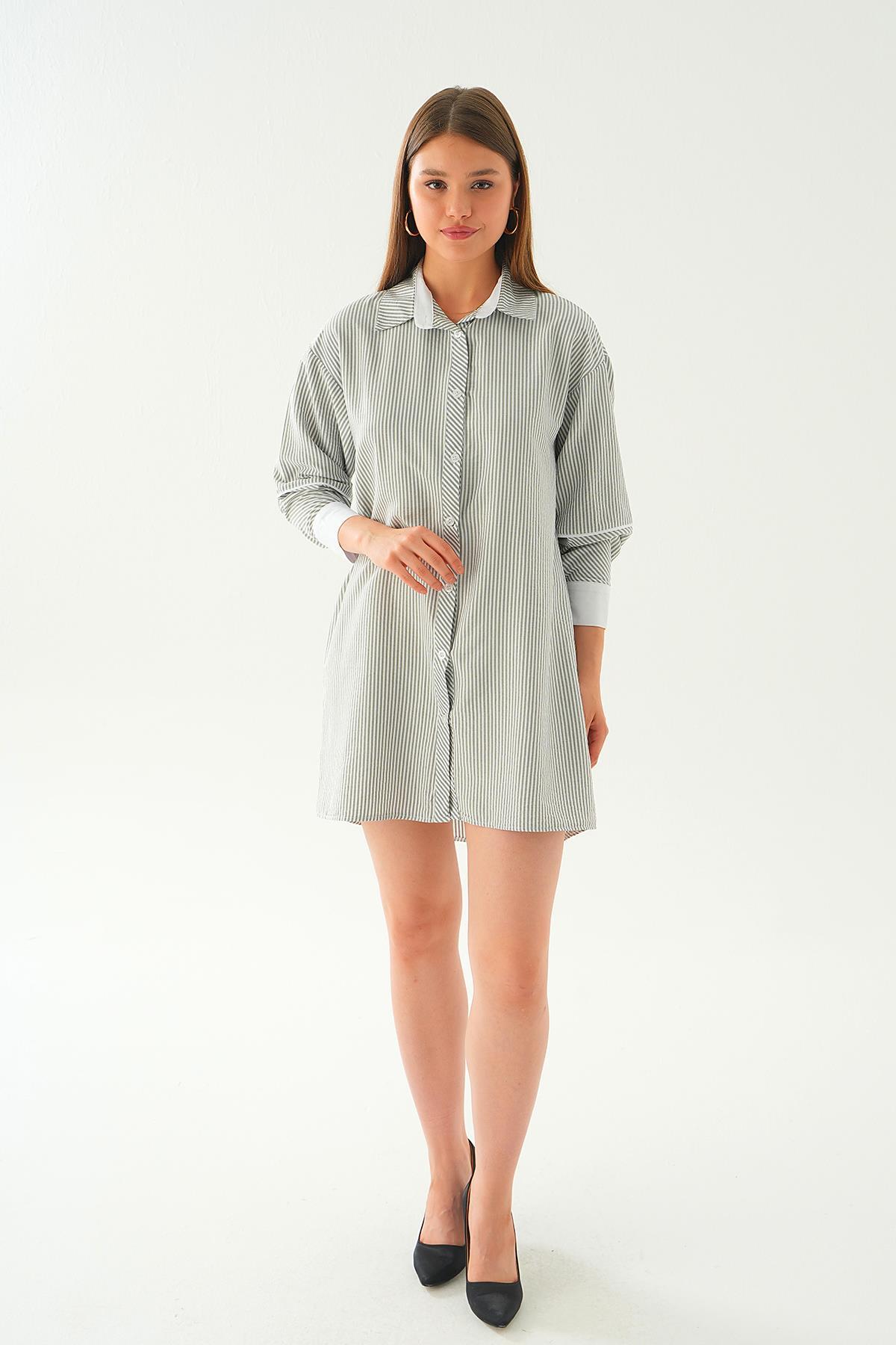 Yeşil Çizgili Salaş Gömlek 5475 - RAYS Yeşil Çizgili Salaş Gömlek 5475 - RAYS (1)