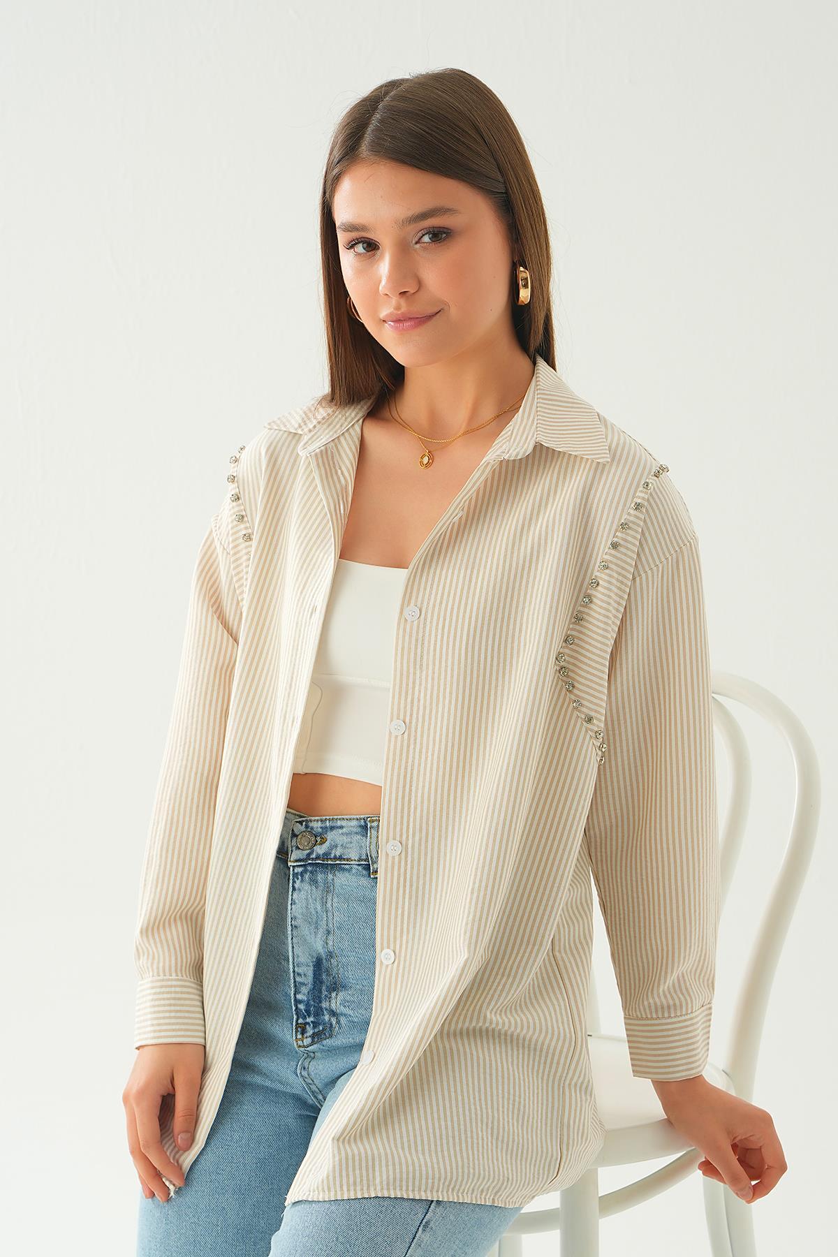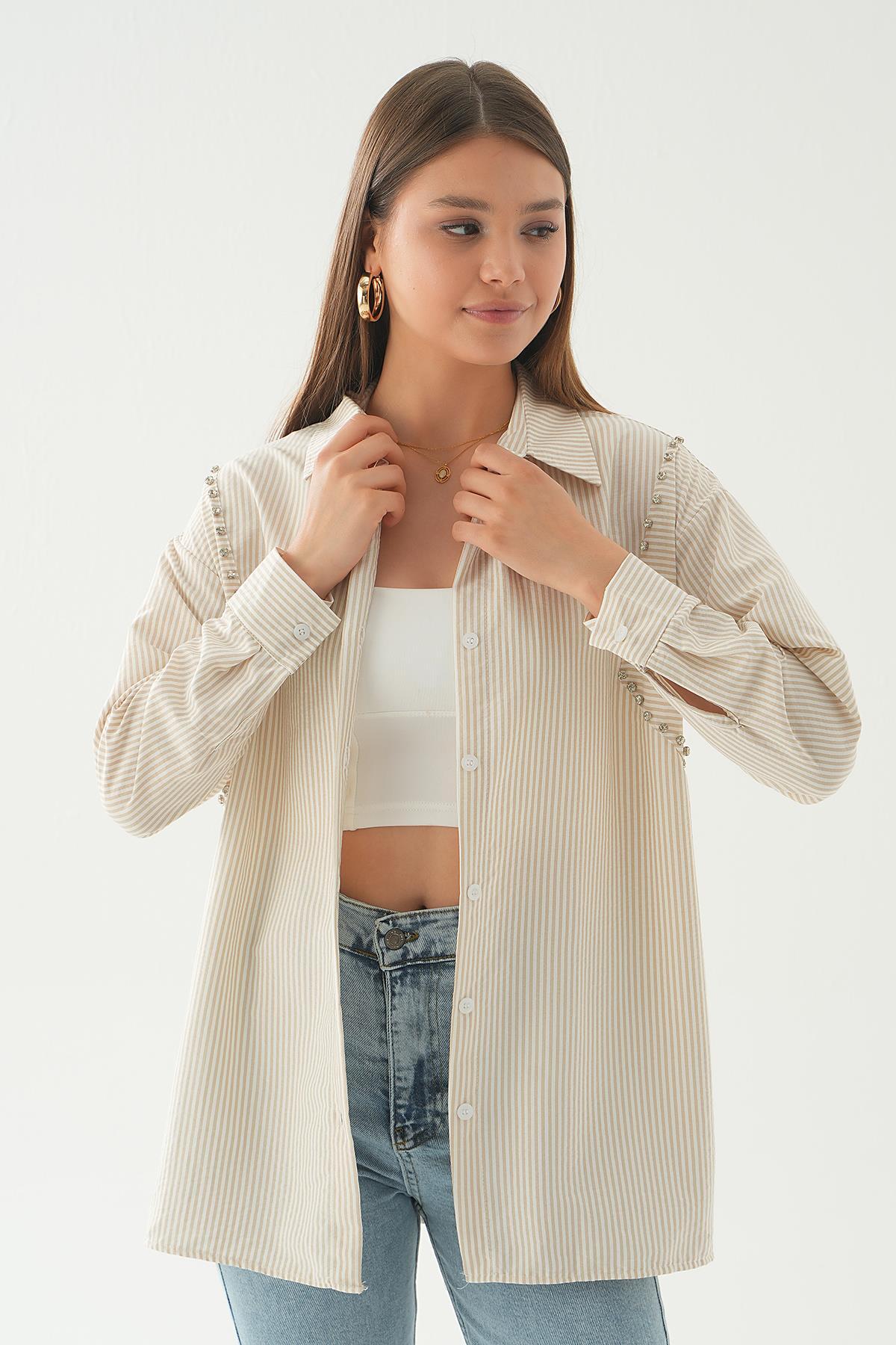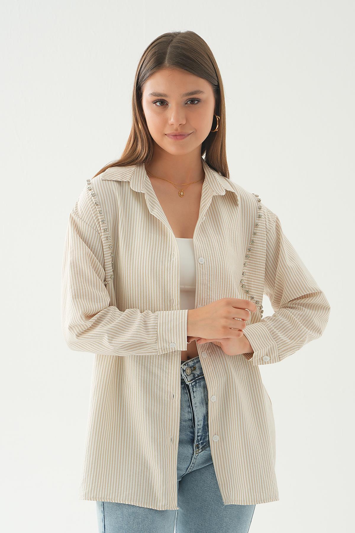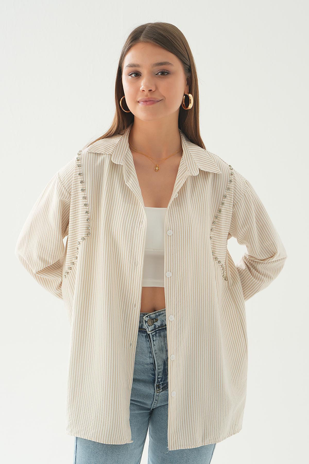 Vizon Çizgili Salaş Gömlek 5475 - RAYS Vizon Çizgili Salaş Gömlek 5475 - RAYS (1)