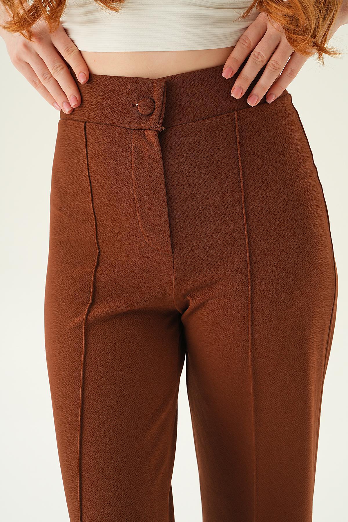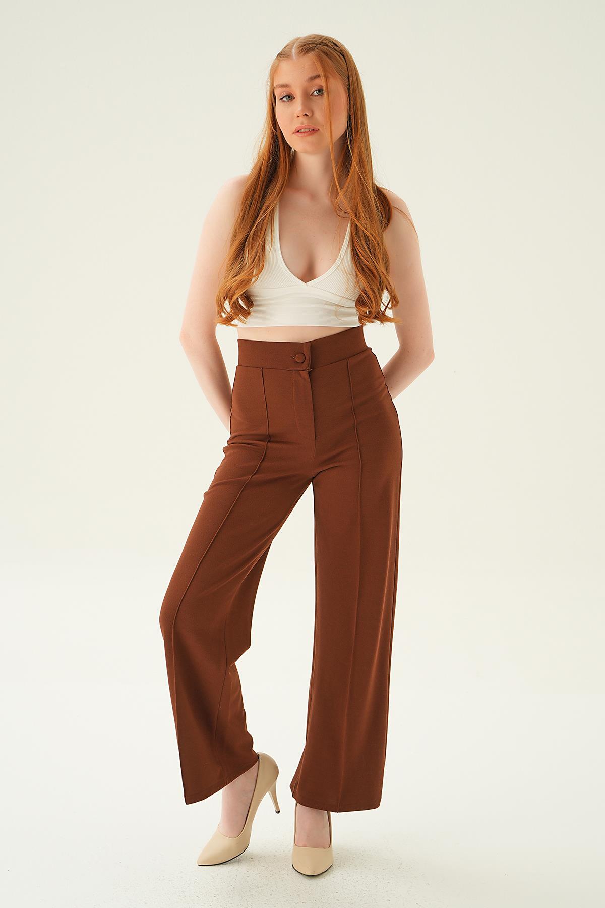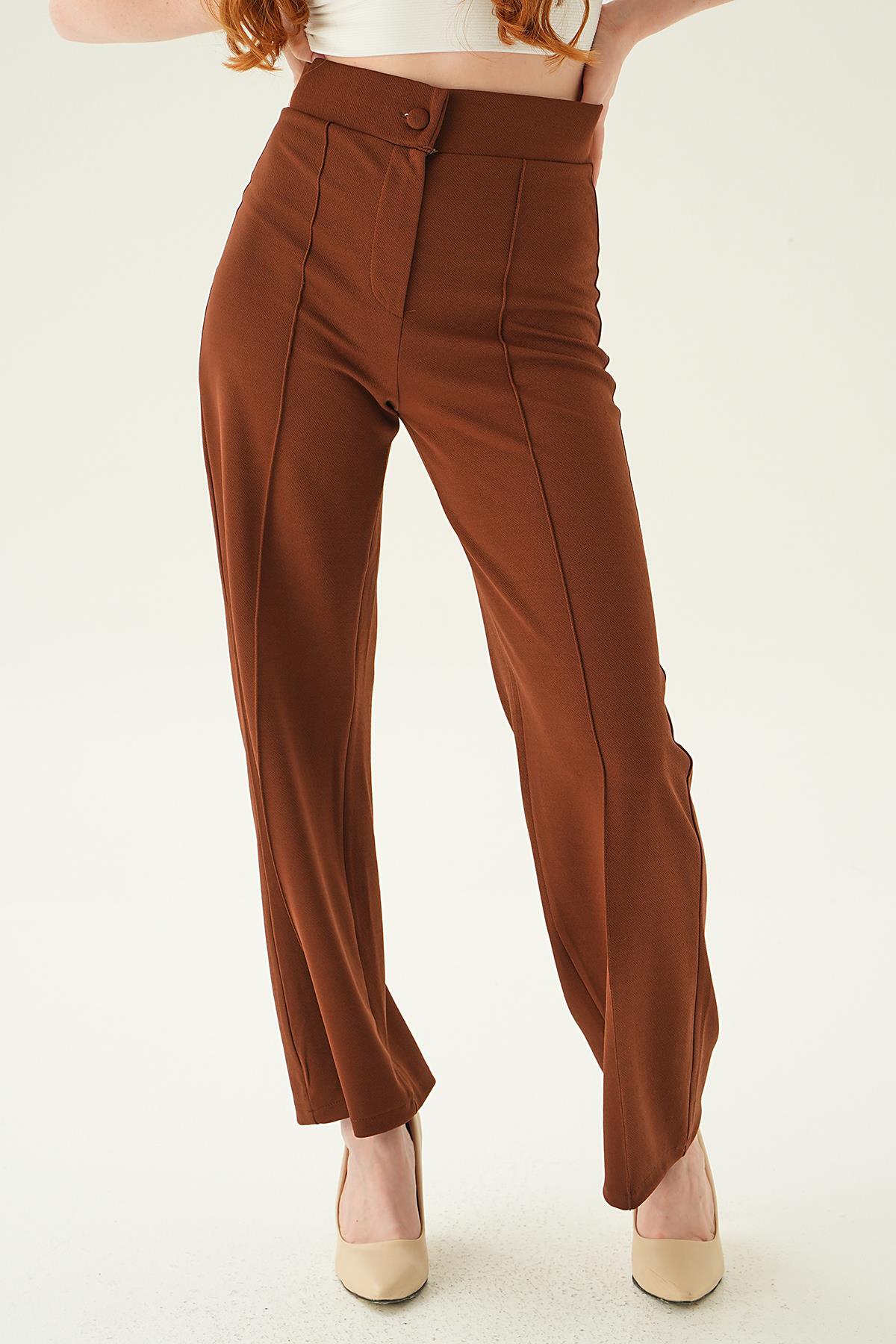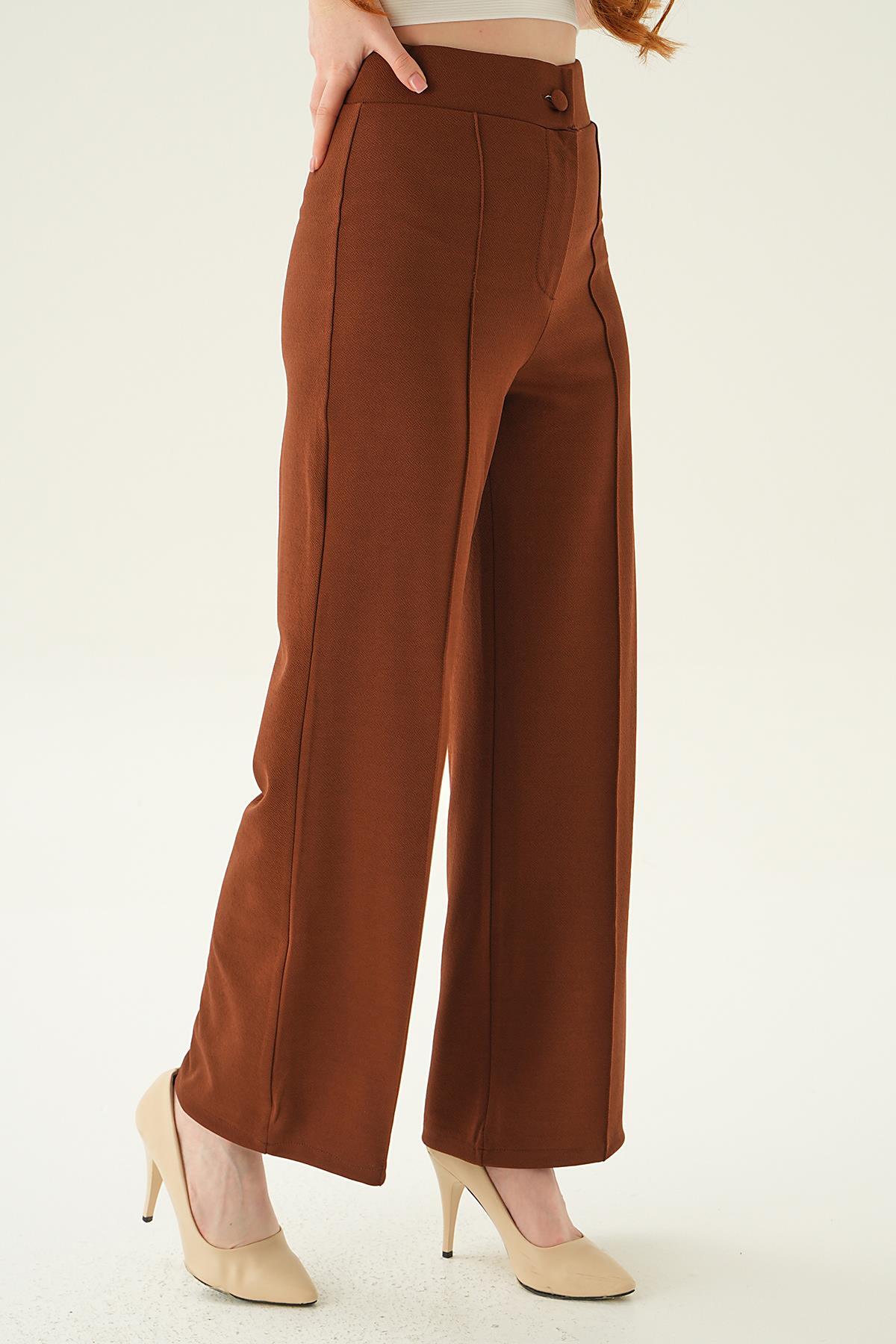 Acı Kahve Çıma Detay Geniş Pantolon 6897A
