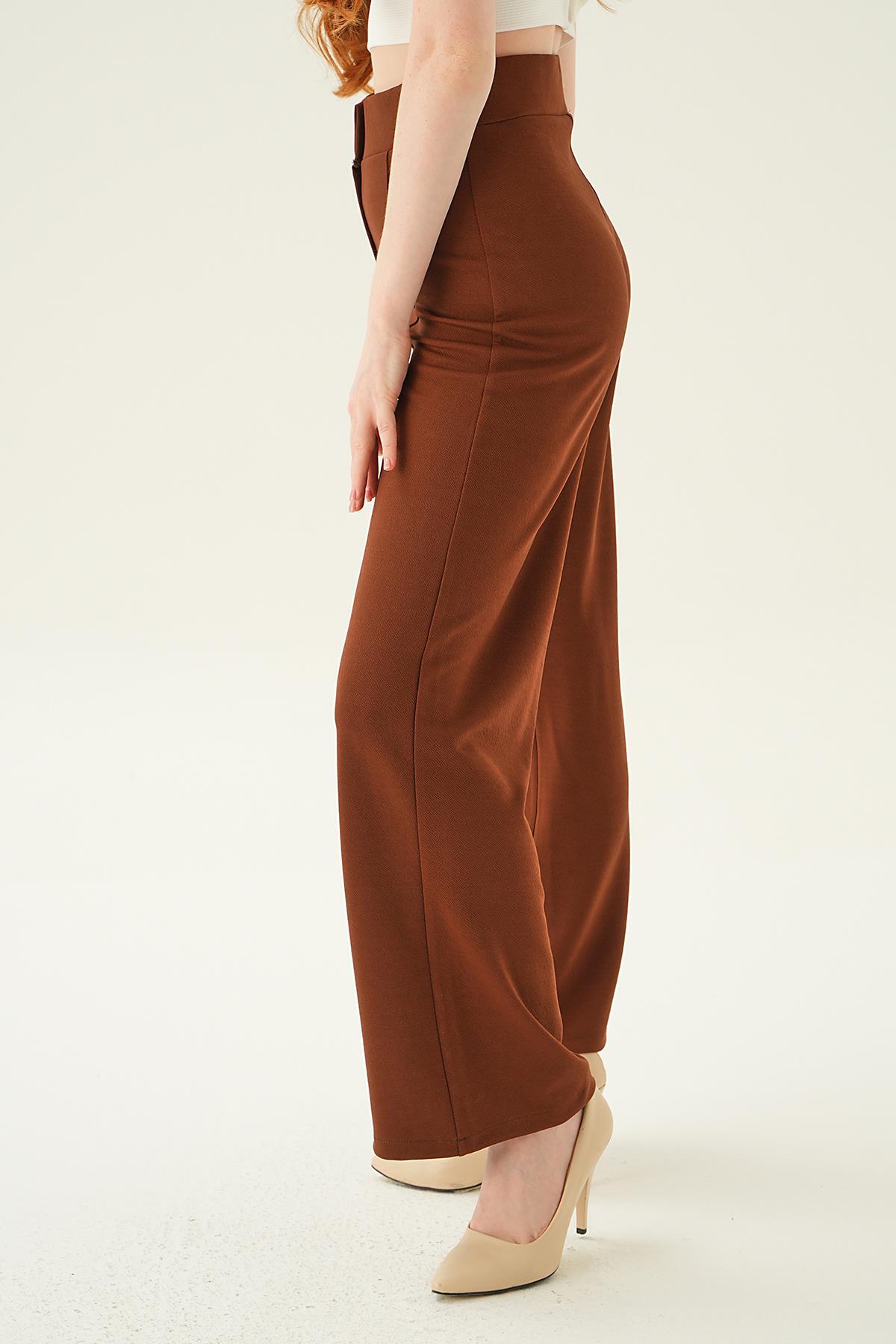 Kahve Pileli Geniş Paça Pantolon 3867 - RAYS Kahve Pileli Geniş Paça Pantolon 3867 - RAYS (1)