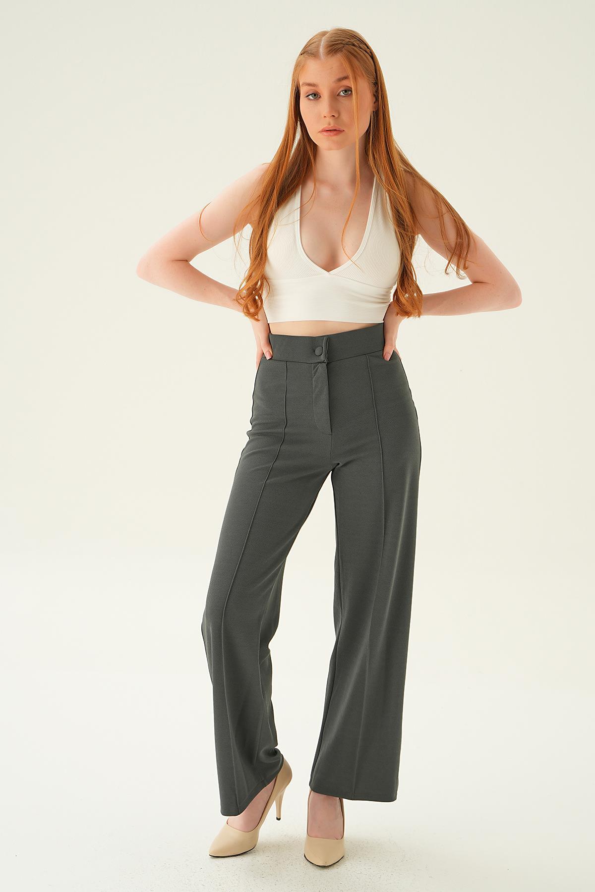 Haki Pileli Palazzo Pantolon 3871 - RAYS Haki Pileli Palazzo Pantolon 3871 - RAYS (1)