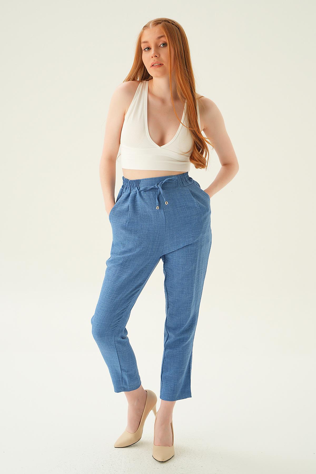 İndigo Bel Lastik Havuç Pantolon 6904A