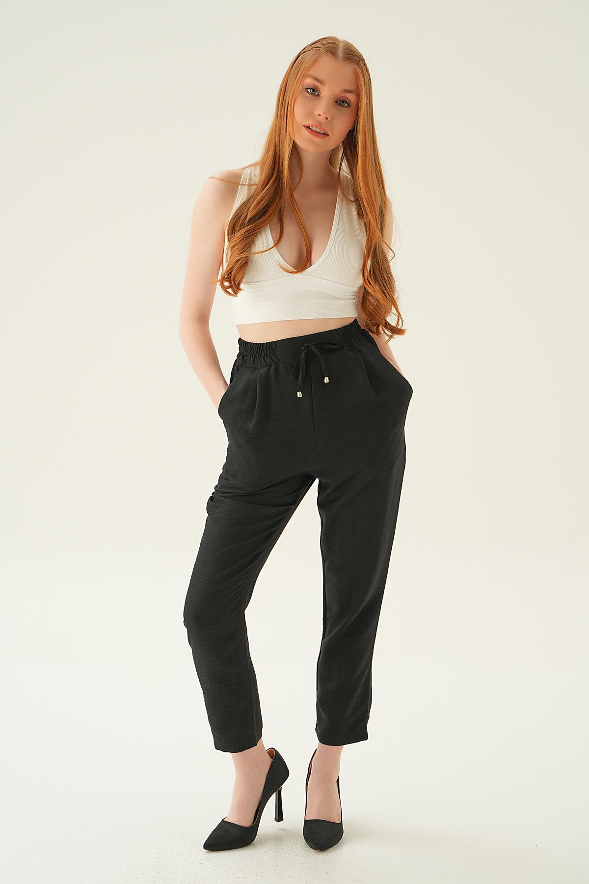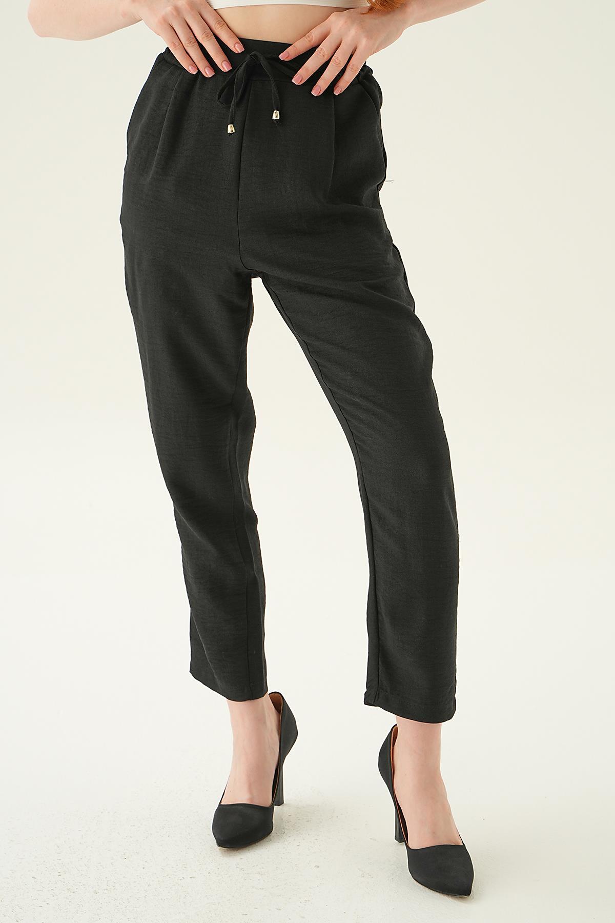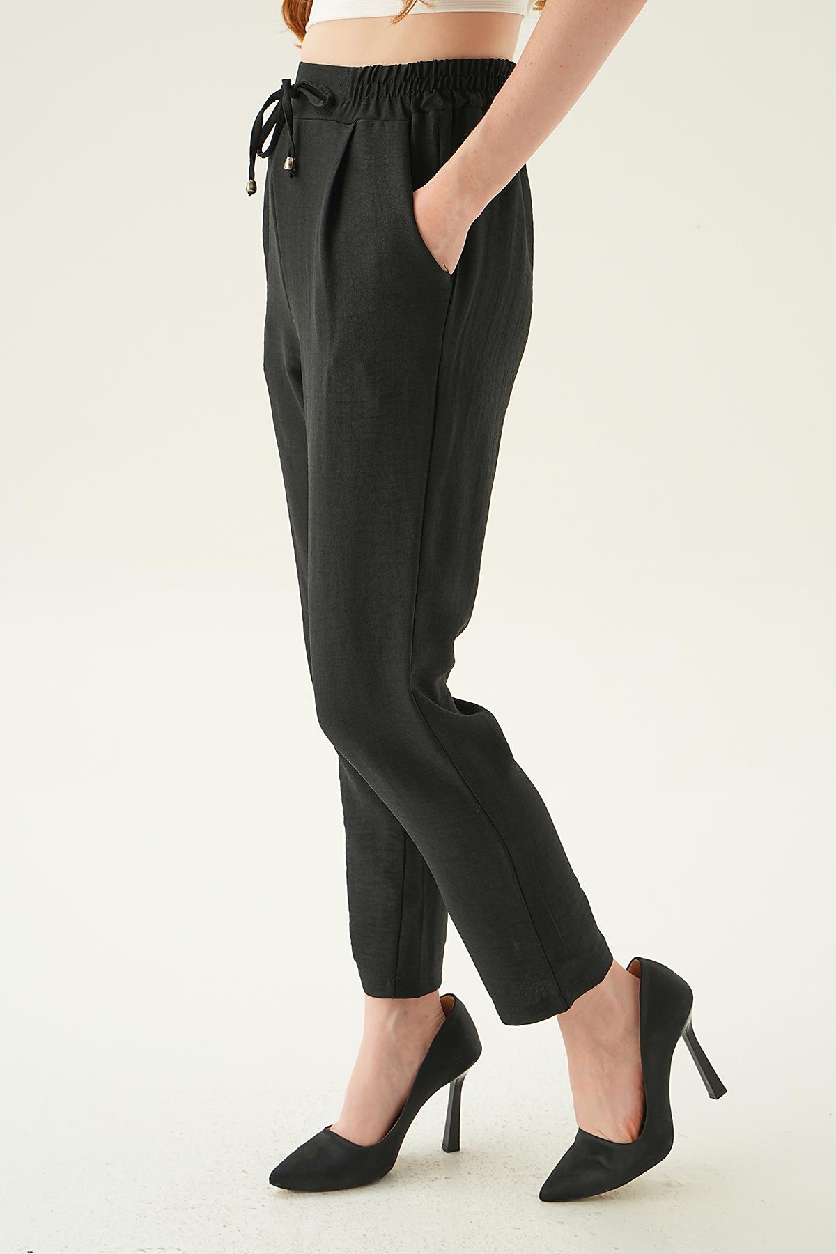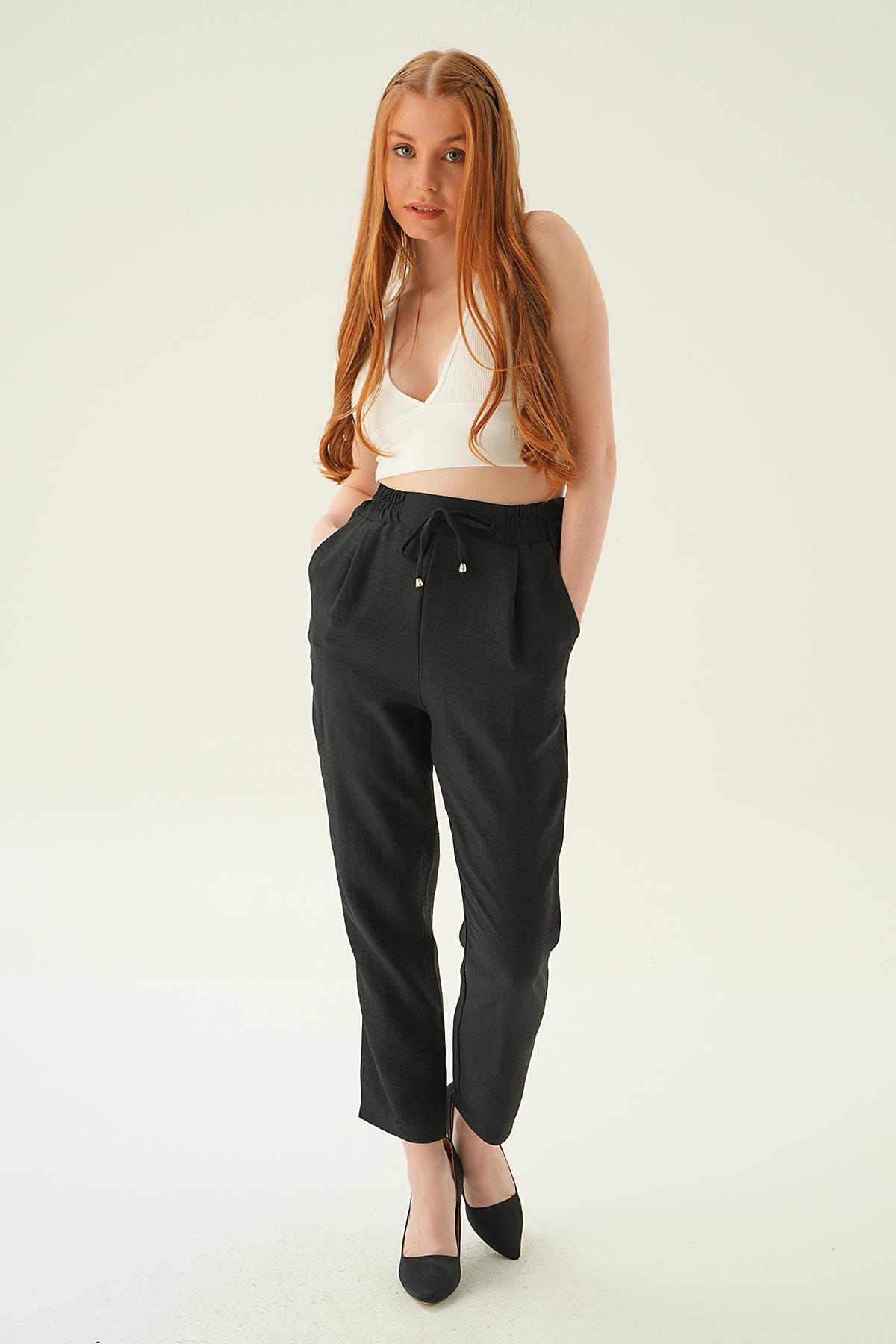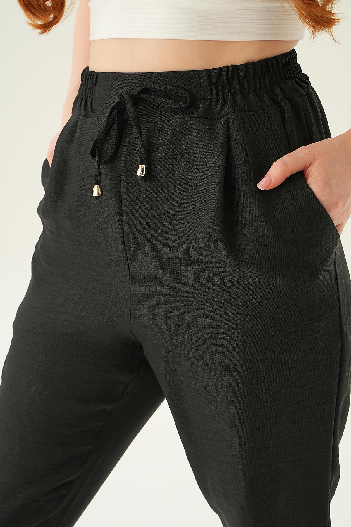 Siyah Bel Lastik Havuç Pantolon 6904A