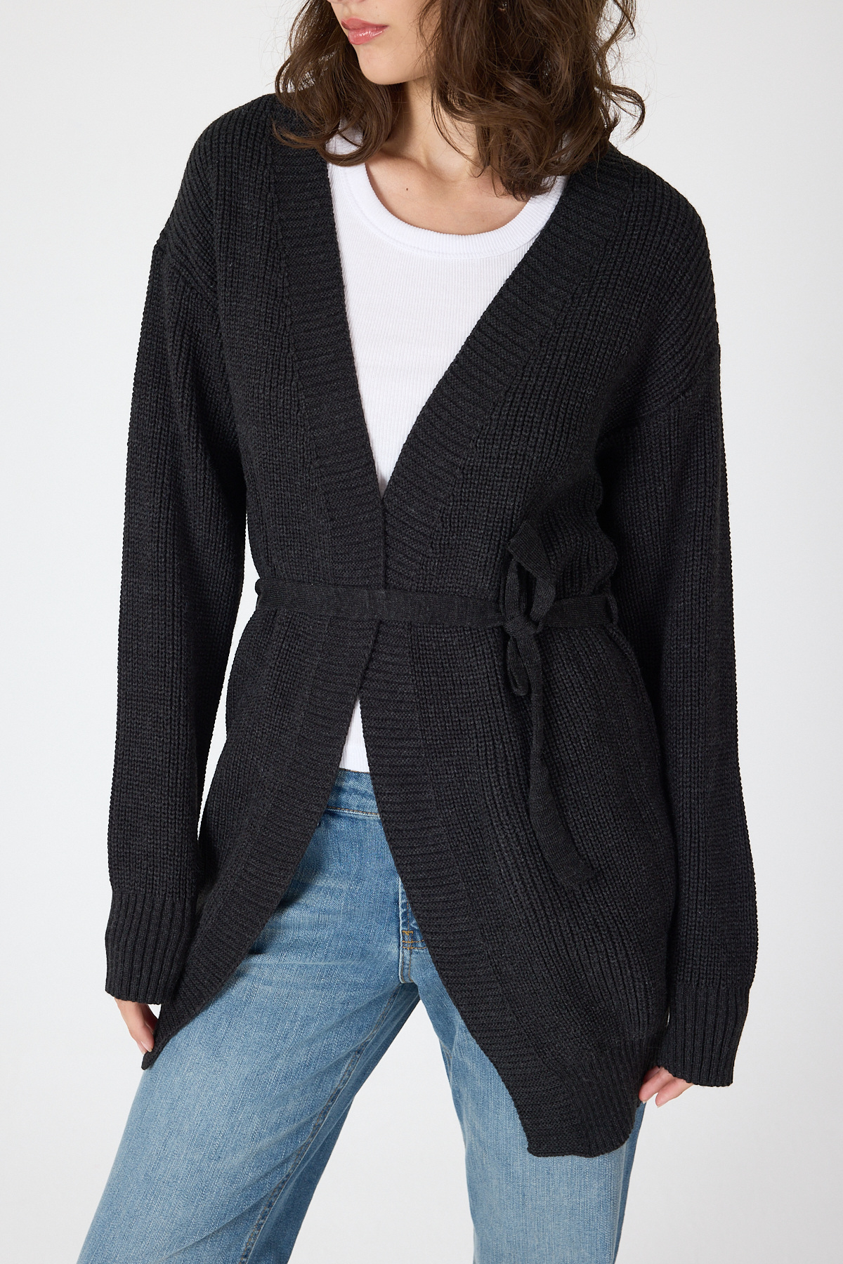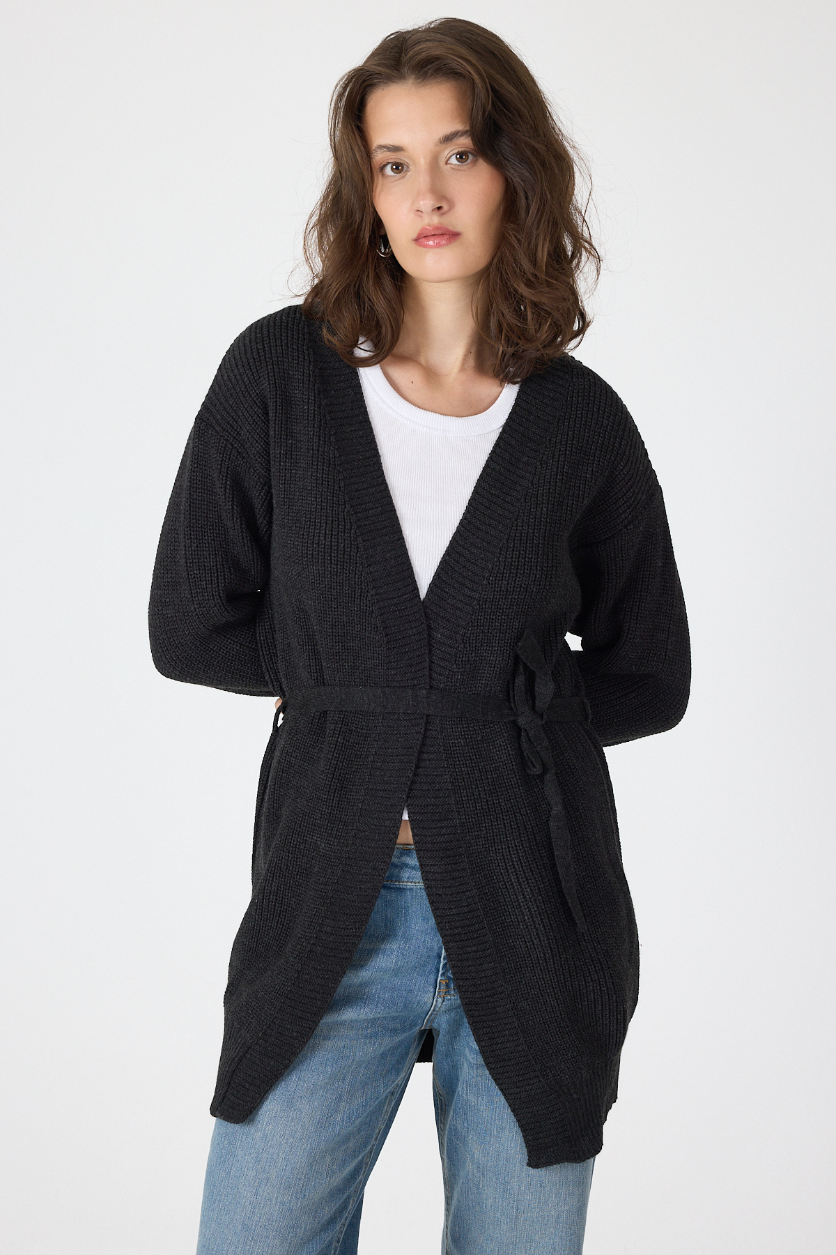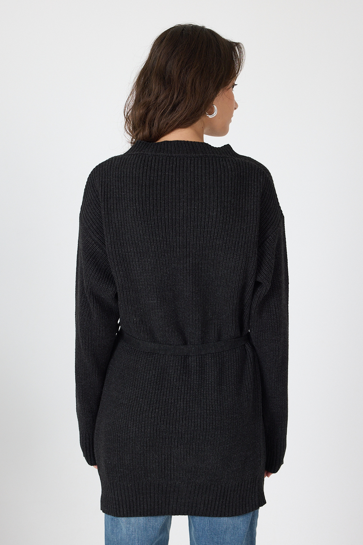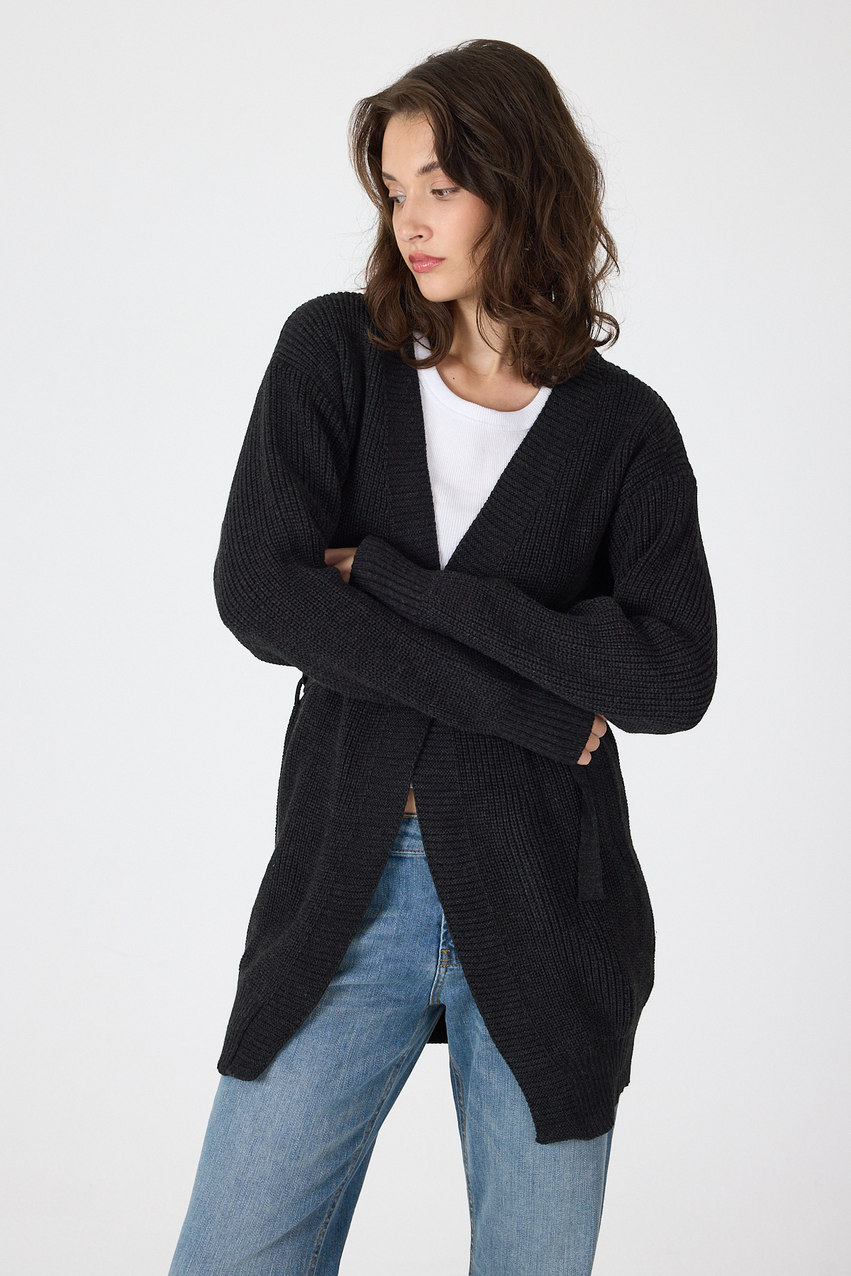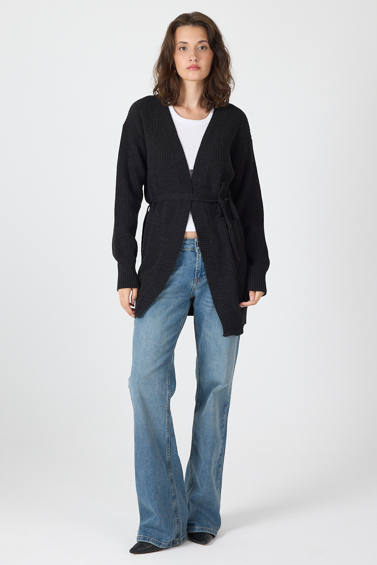 Siyah Kuşaklı Örme Kadın Hırka 6905