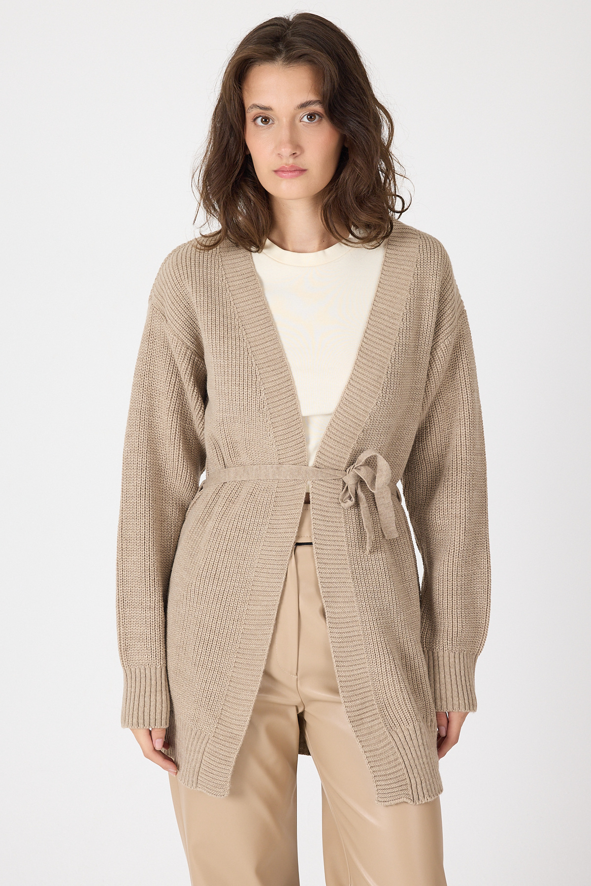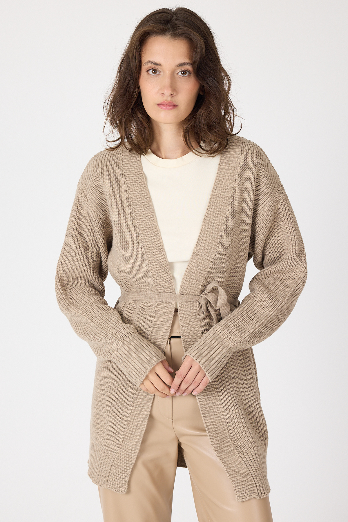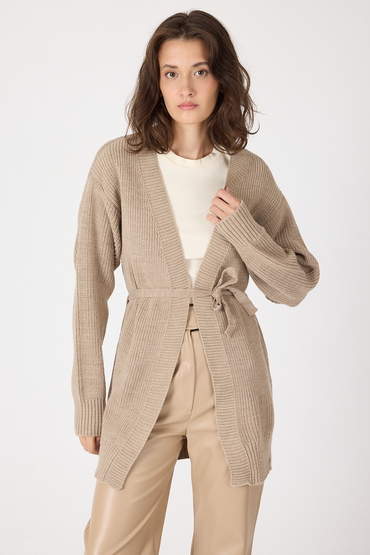 Vizon Kuşaklı Örme Kadın Hırka 6905