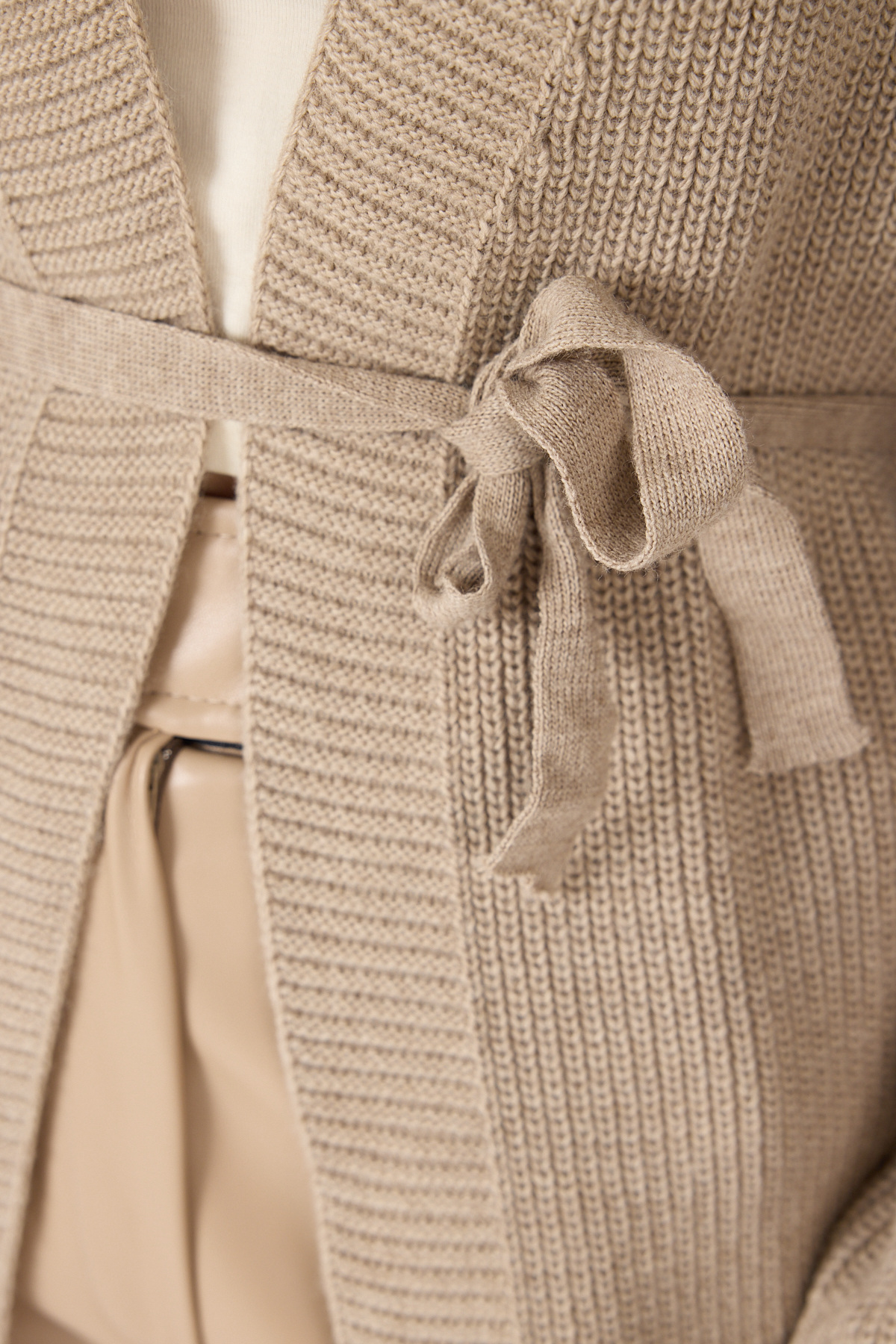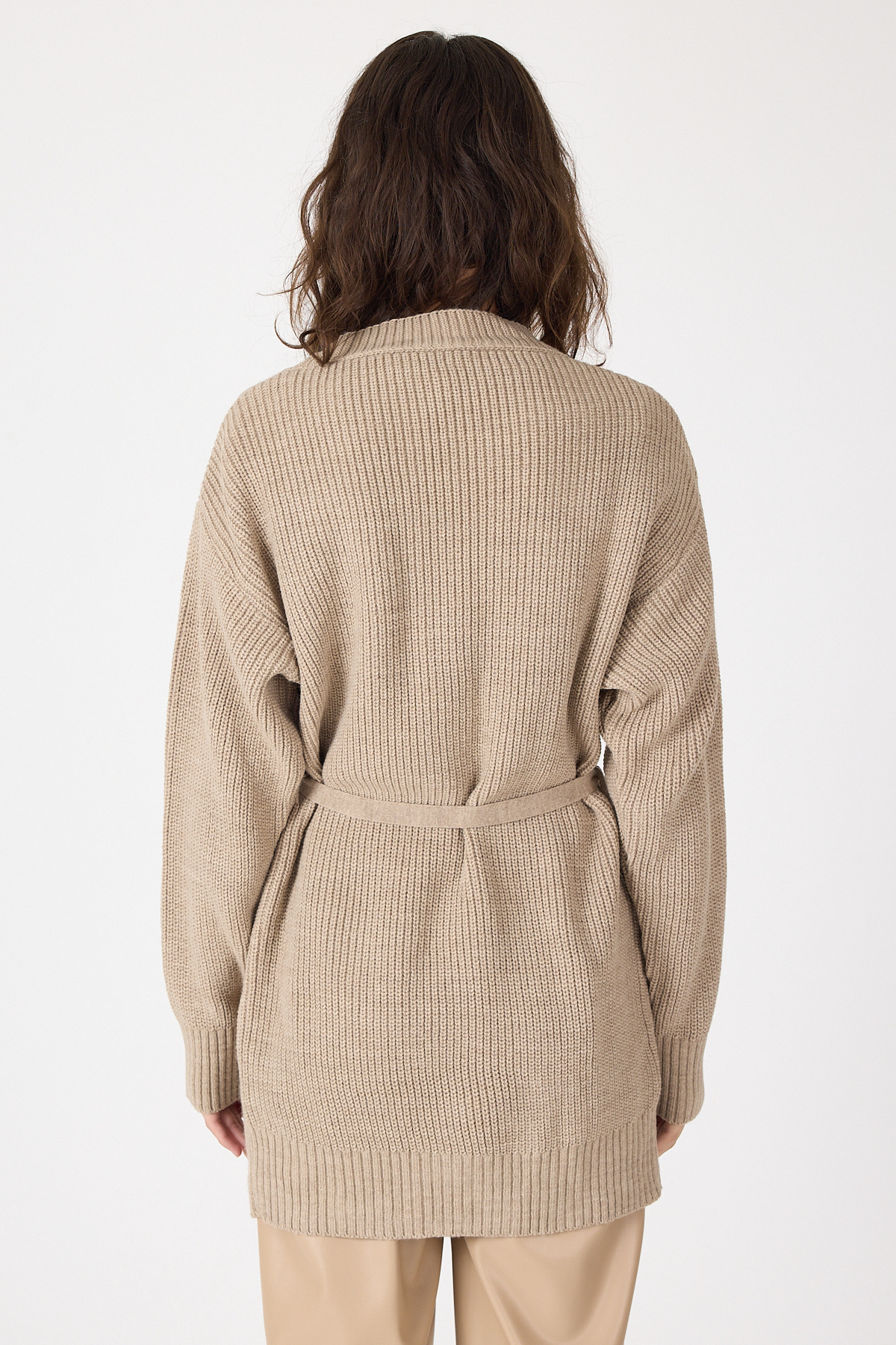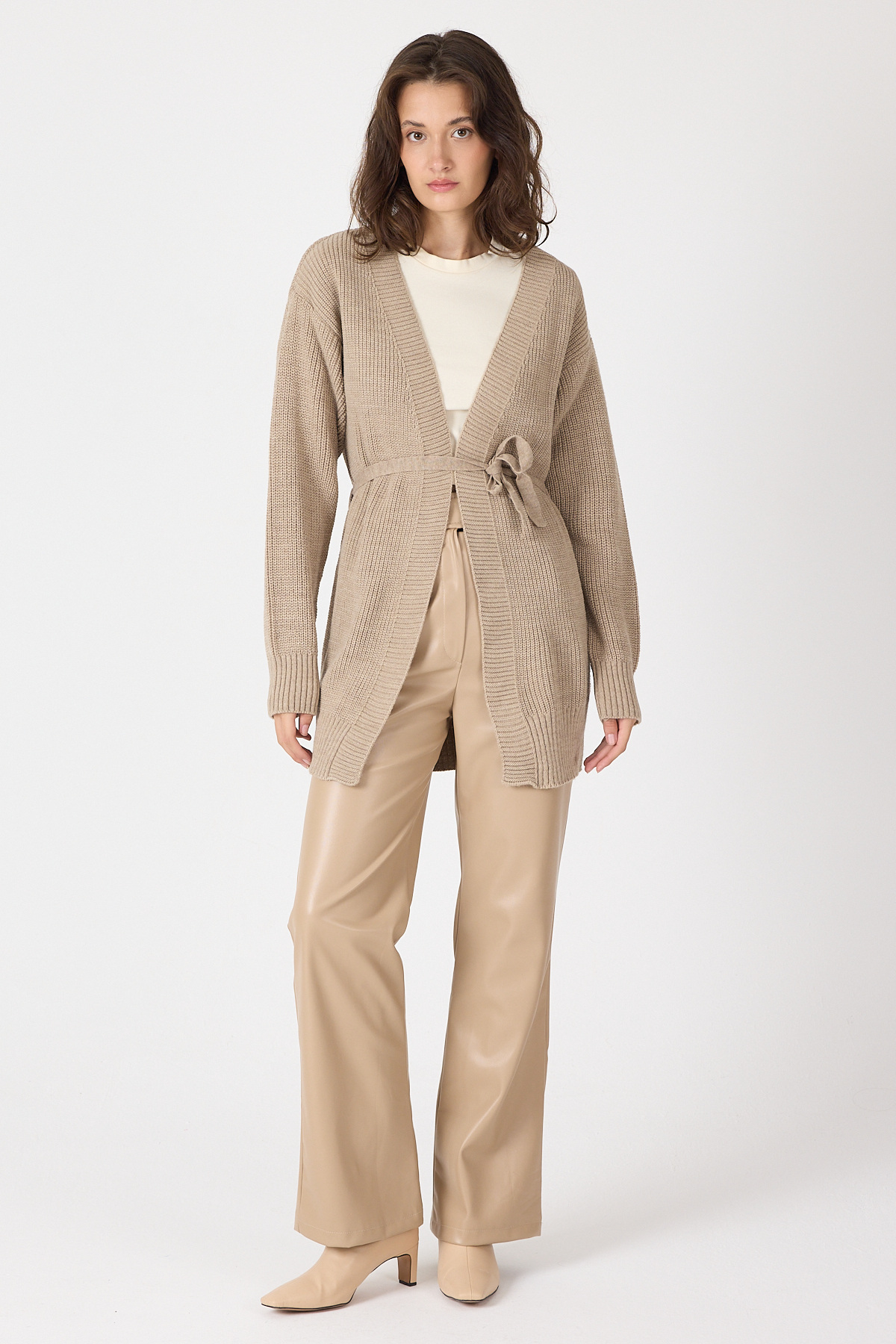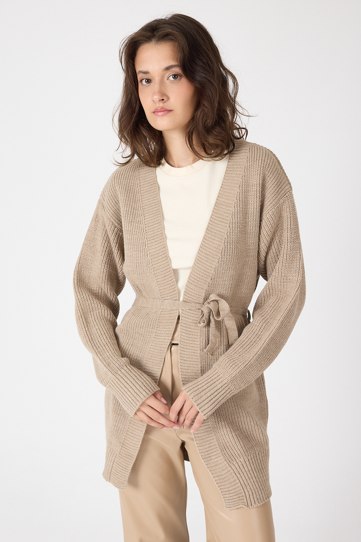 Vizon Kuşaklı Örme Kadın Hırka 6905