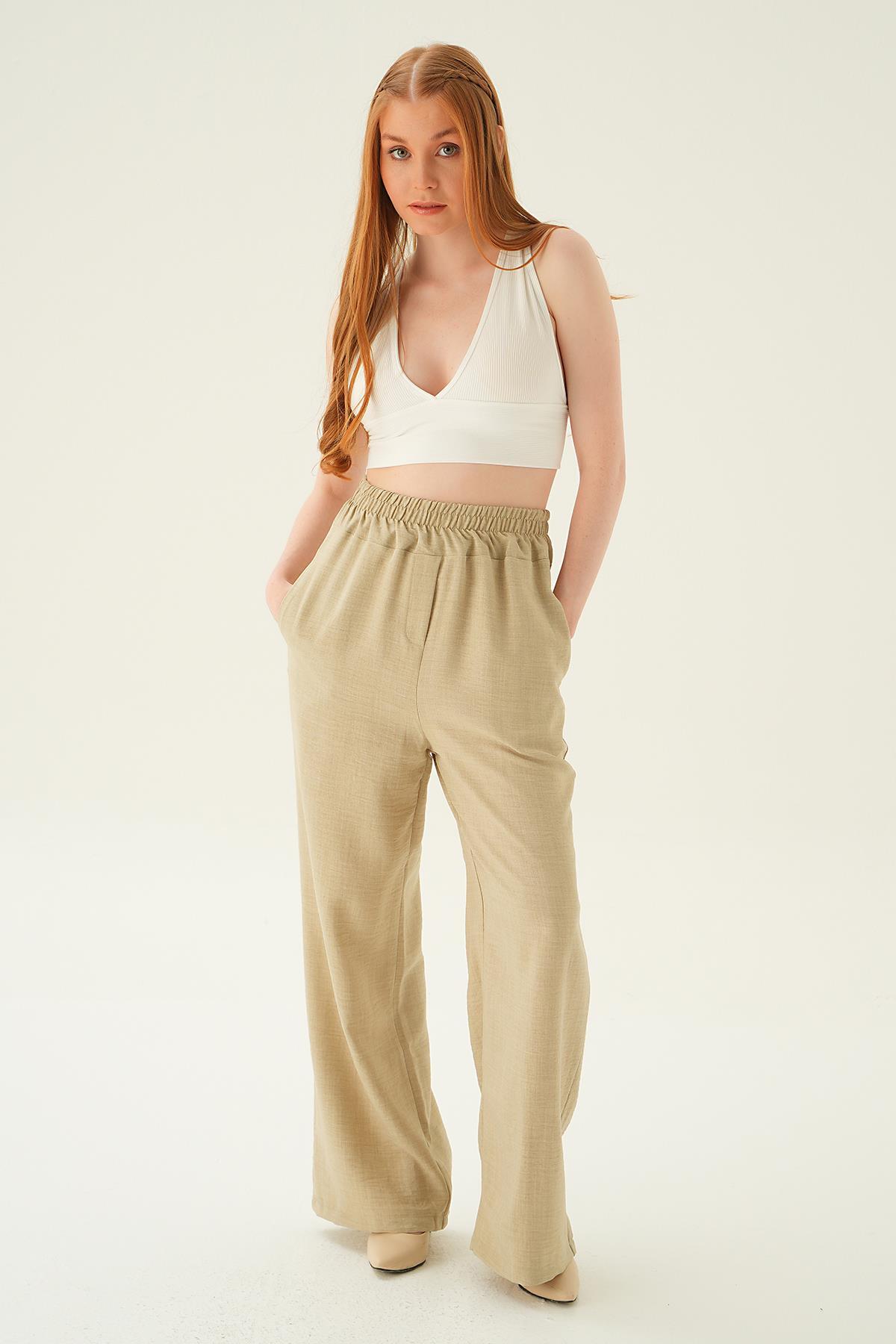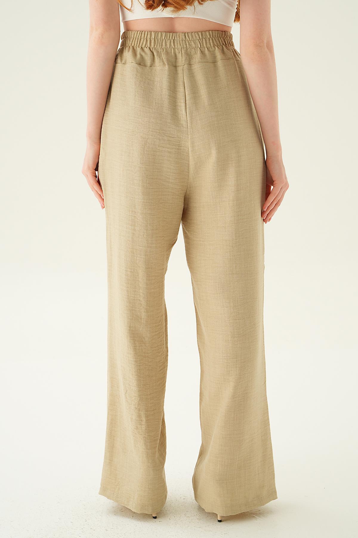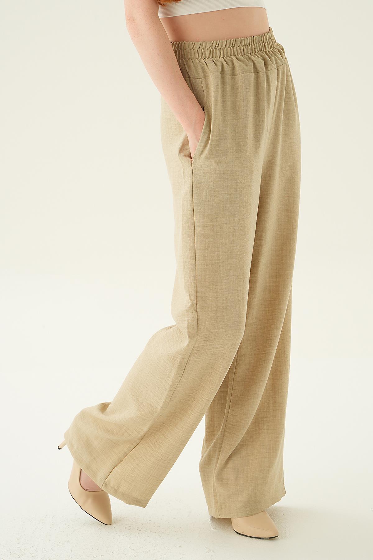 Bej Geniş Kemerli Bol Pantolon 6905A
