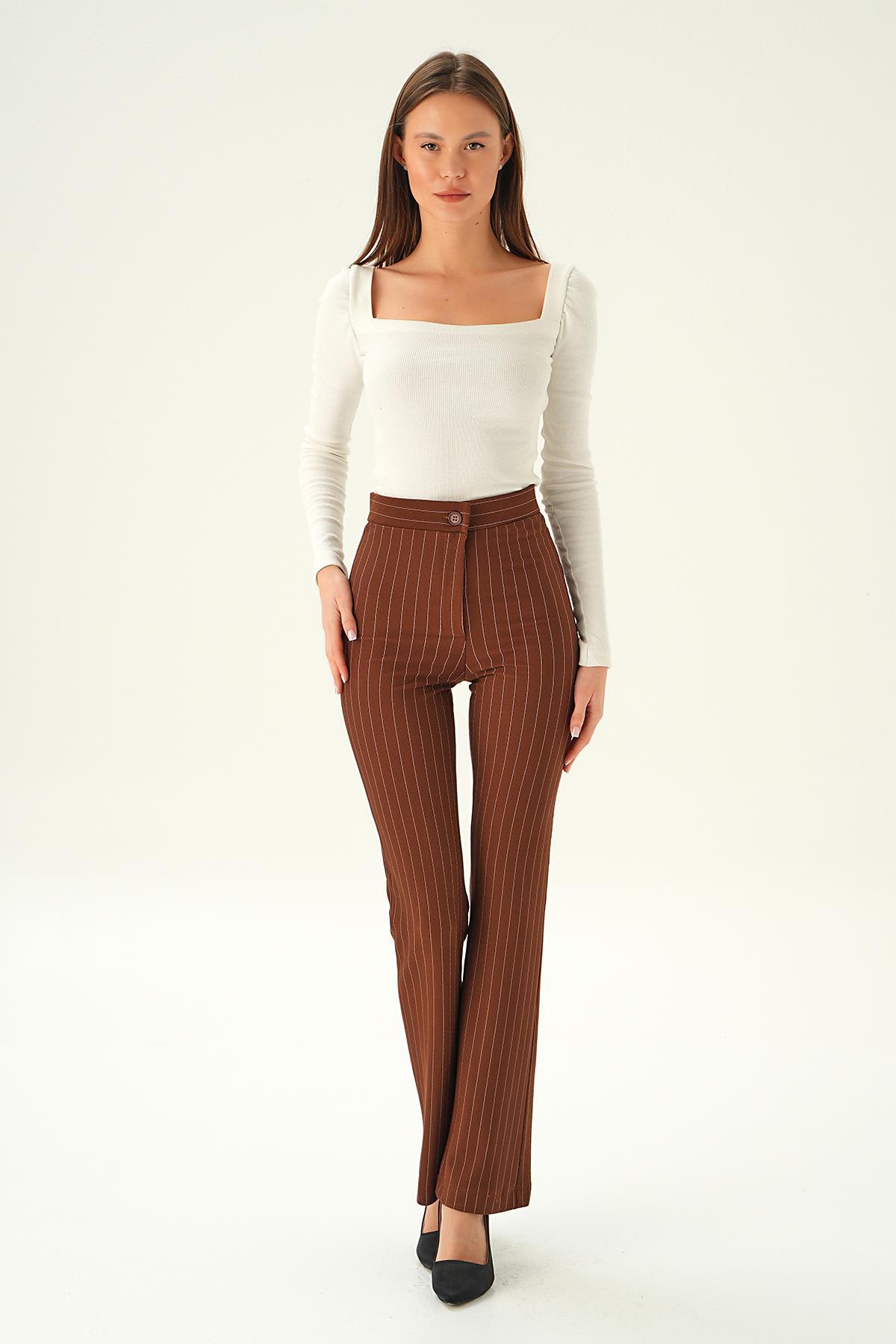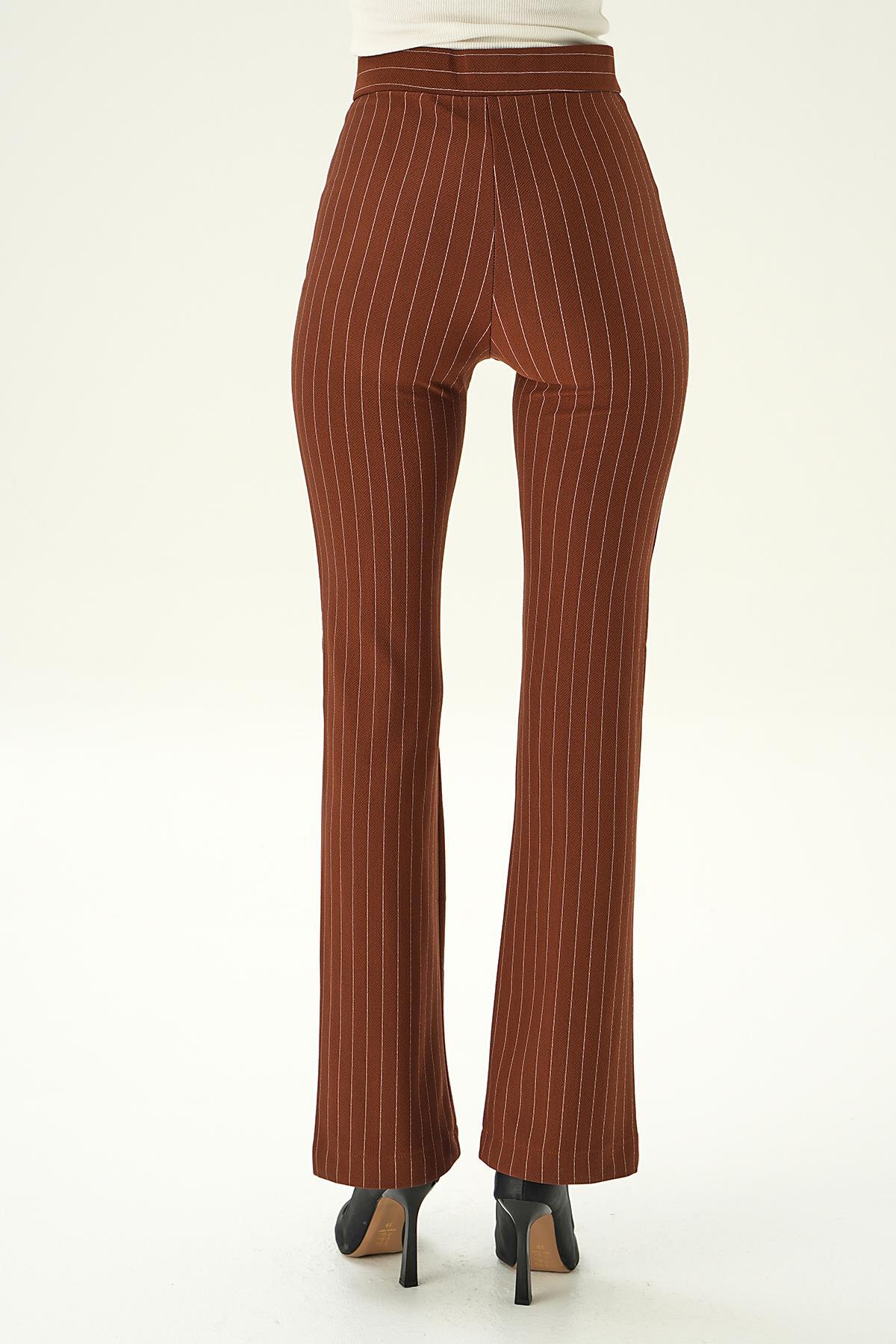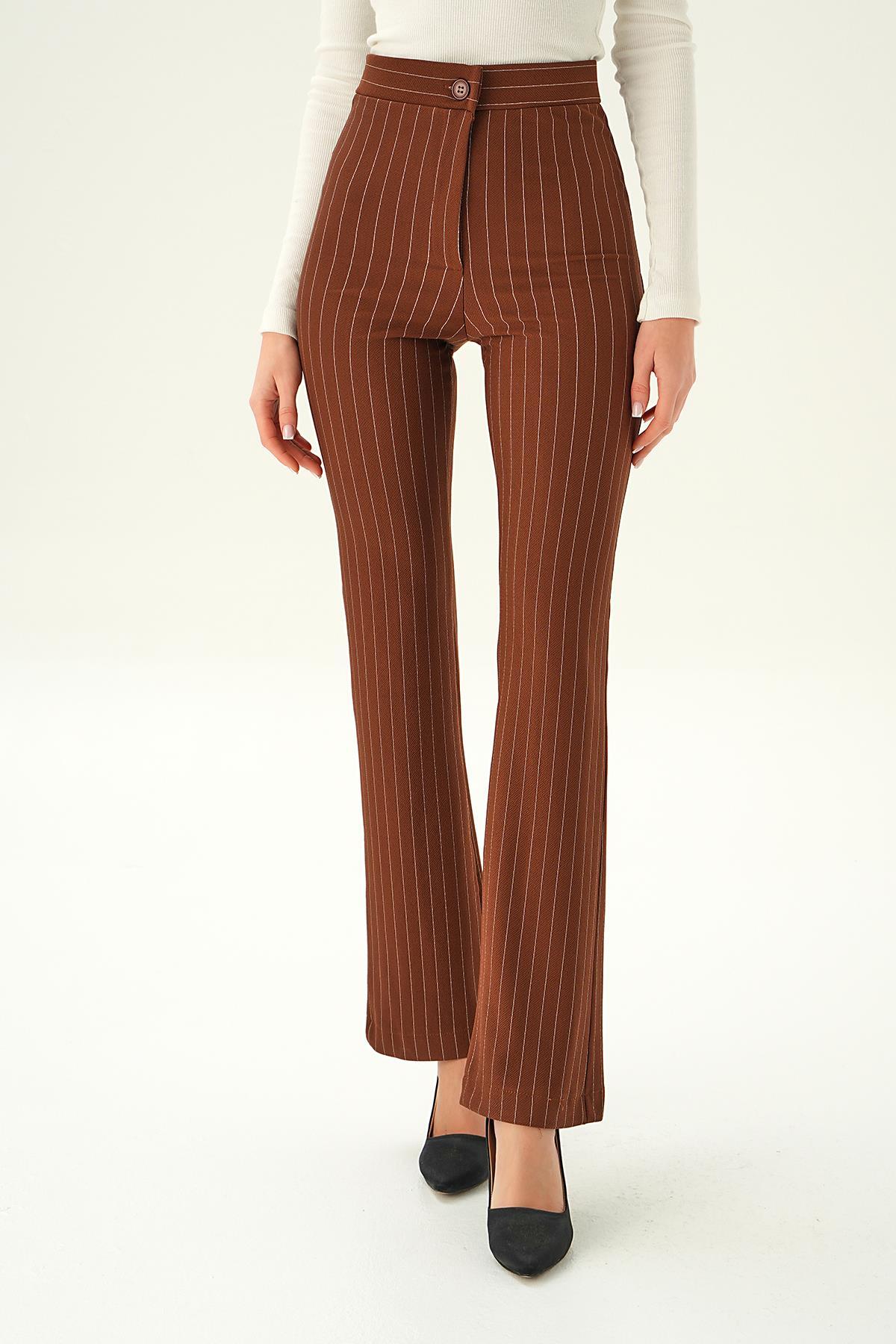 Acı Kahve Geniş Paça Çizgili Pantolon 6912A
