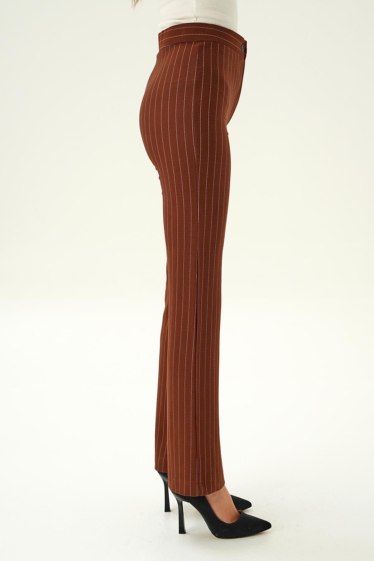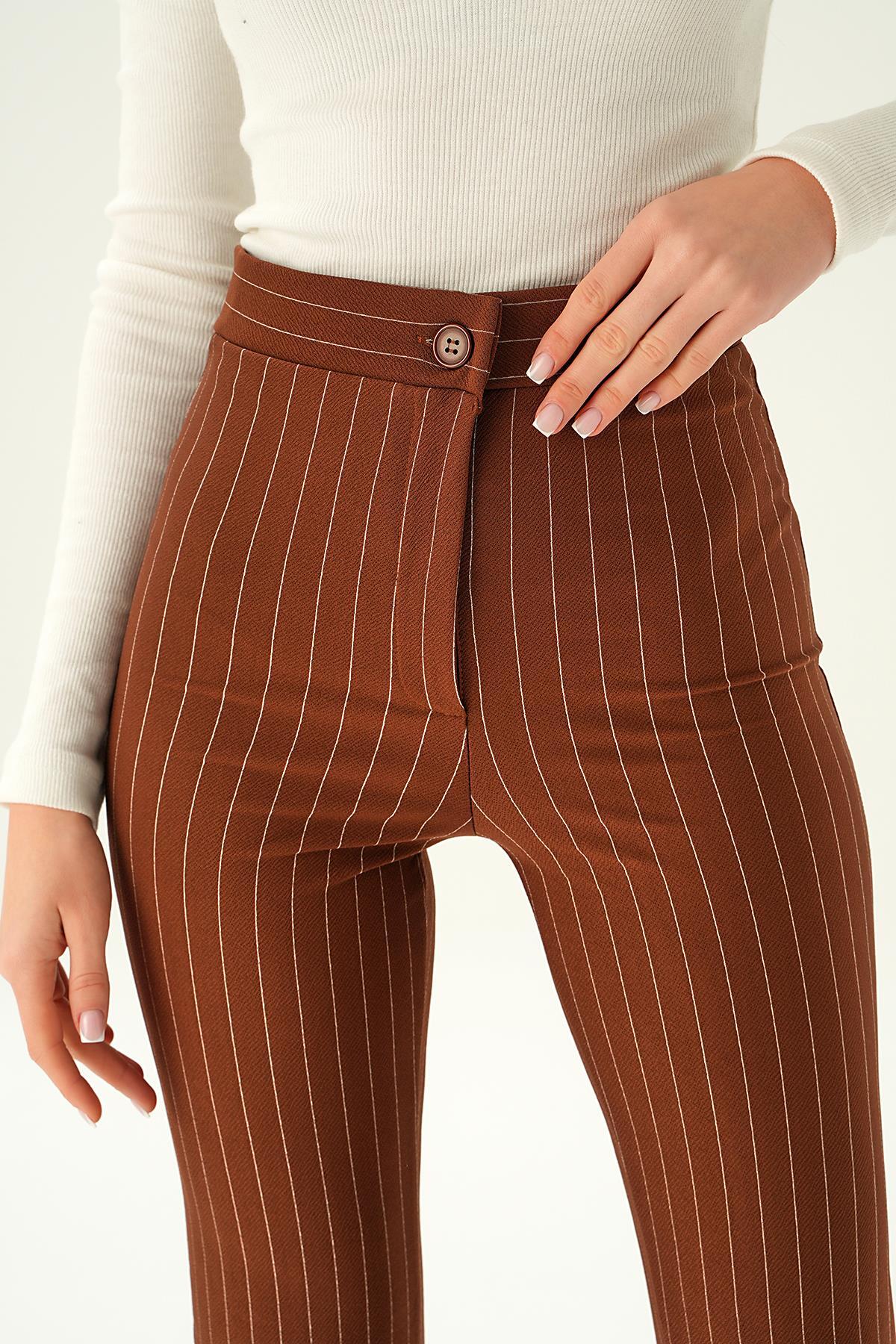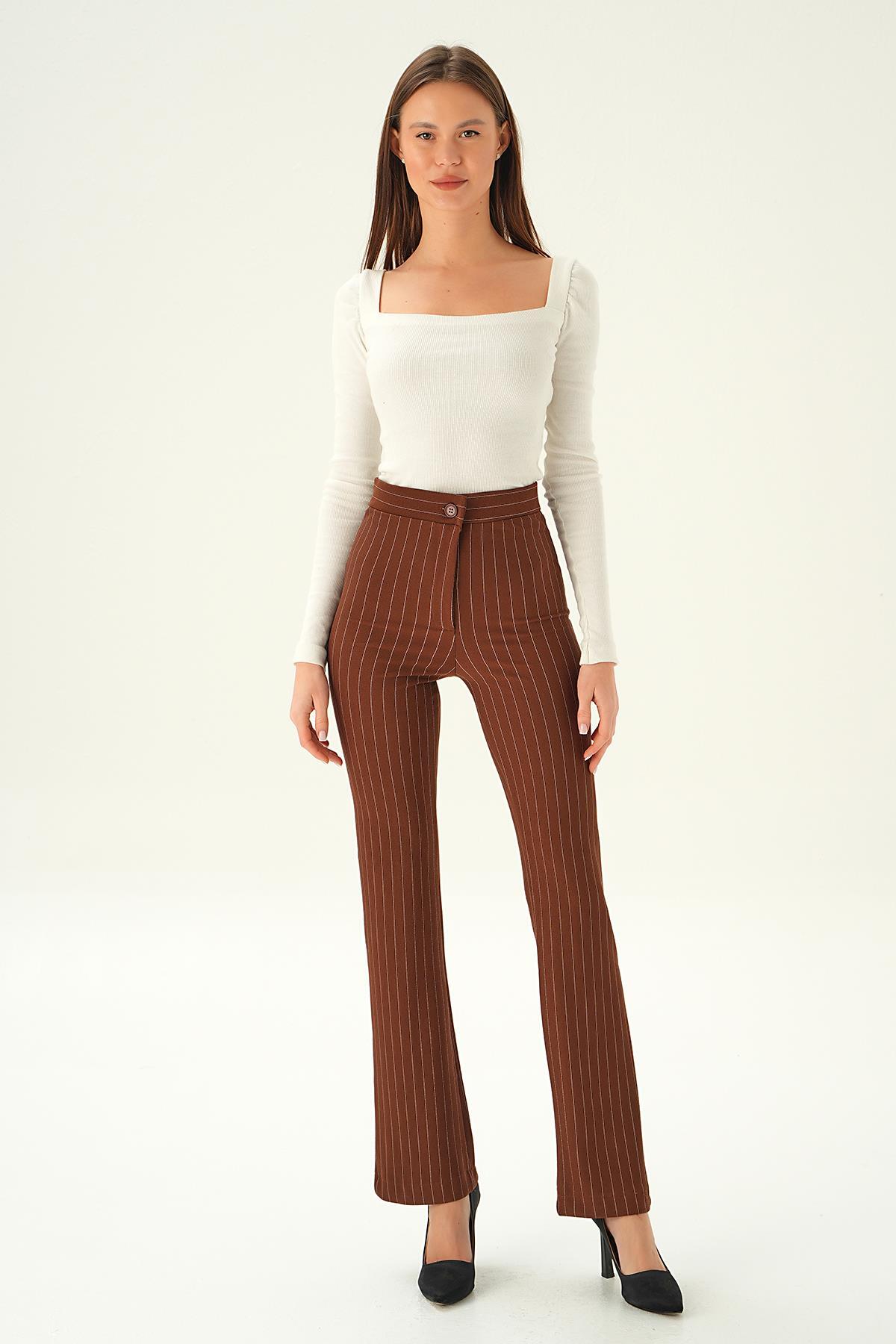 Acı Kahve Geniş Paça Çizgili Pantolon 6912A