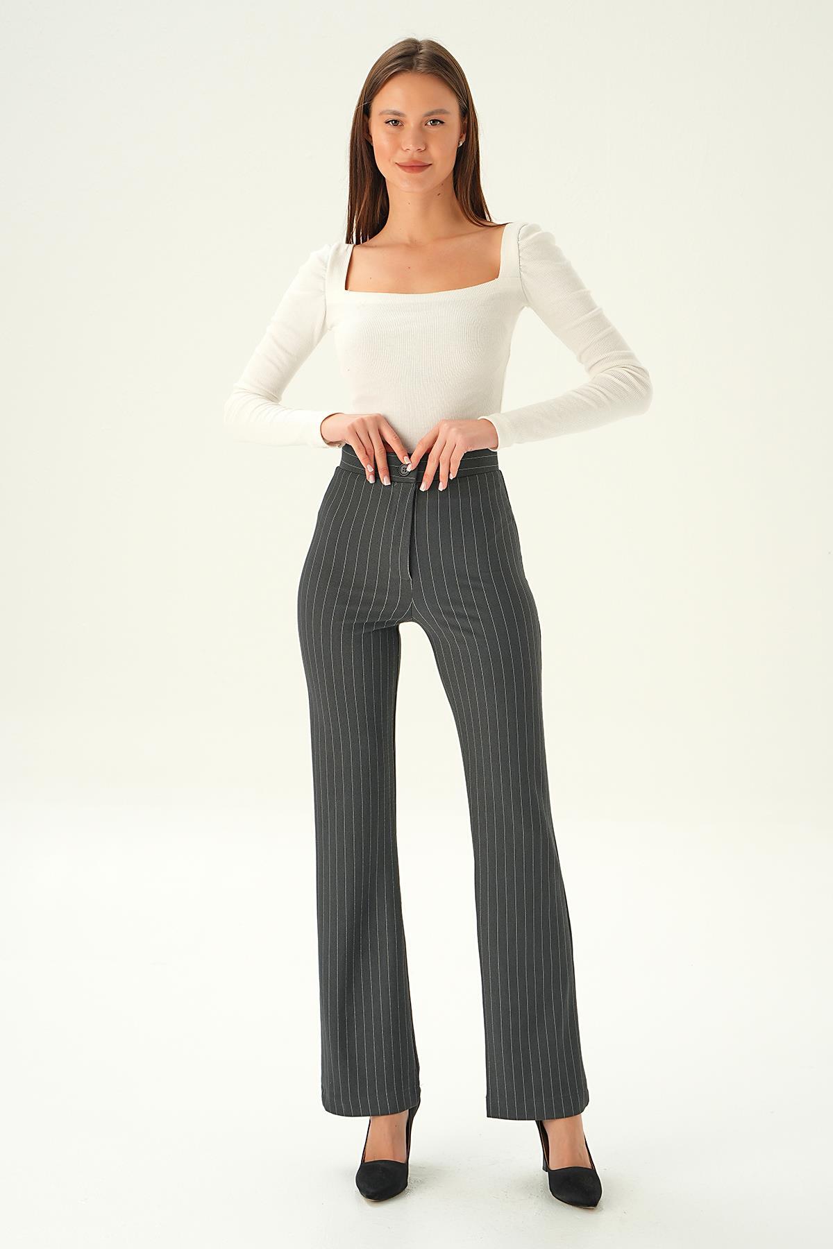 Füme Geniş Paça Çizgili Pantolon 6912A