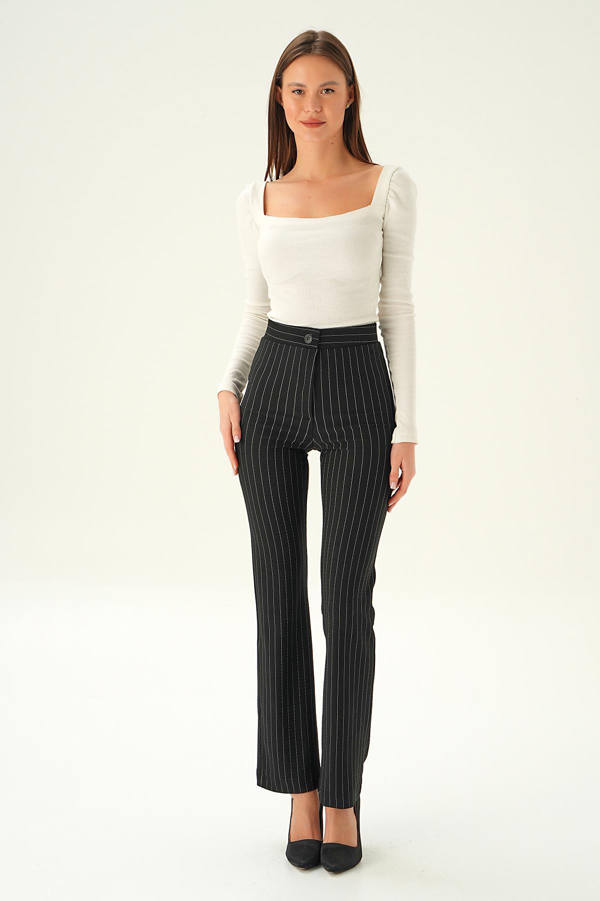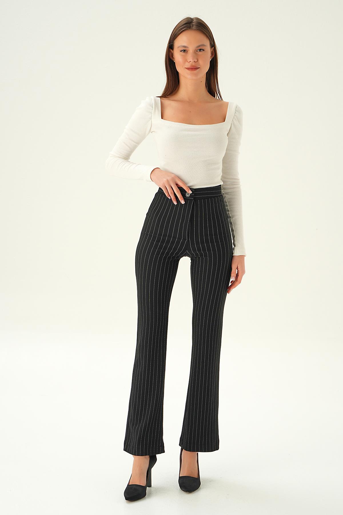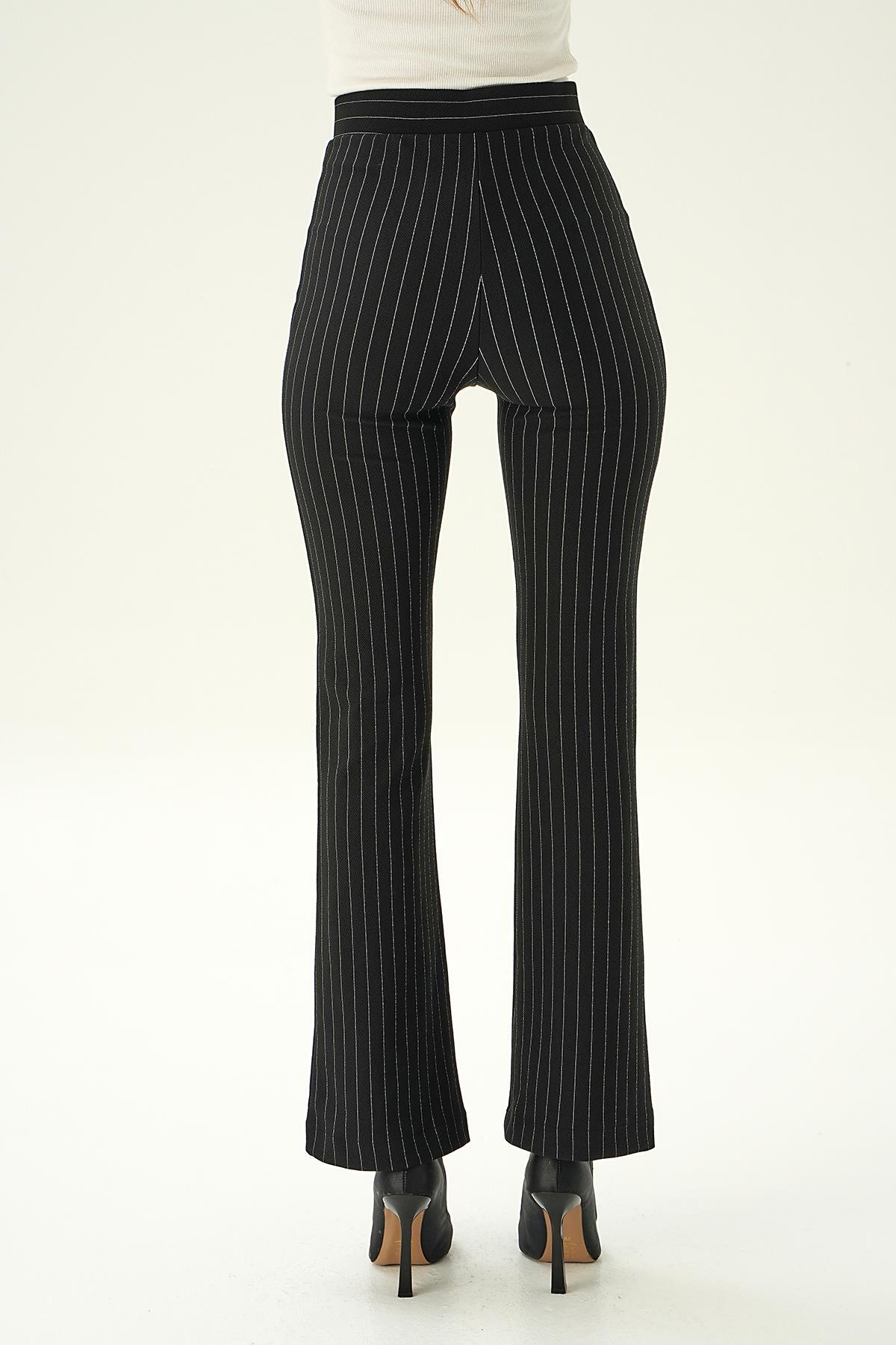 Siyah Geniş Paça Çizgili Pantolon 6912A