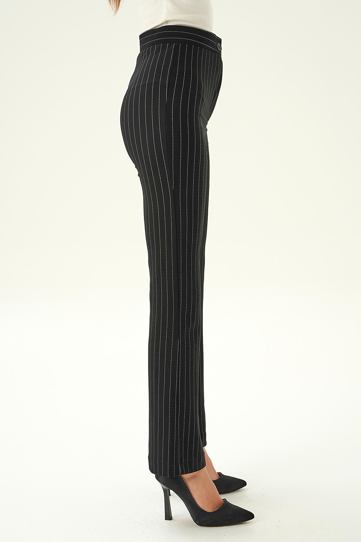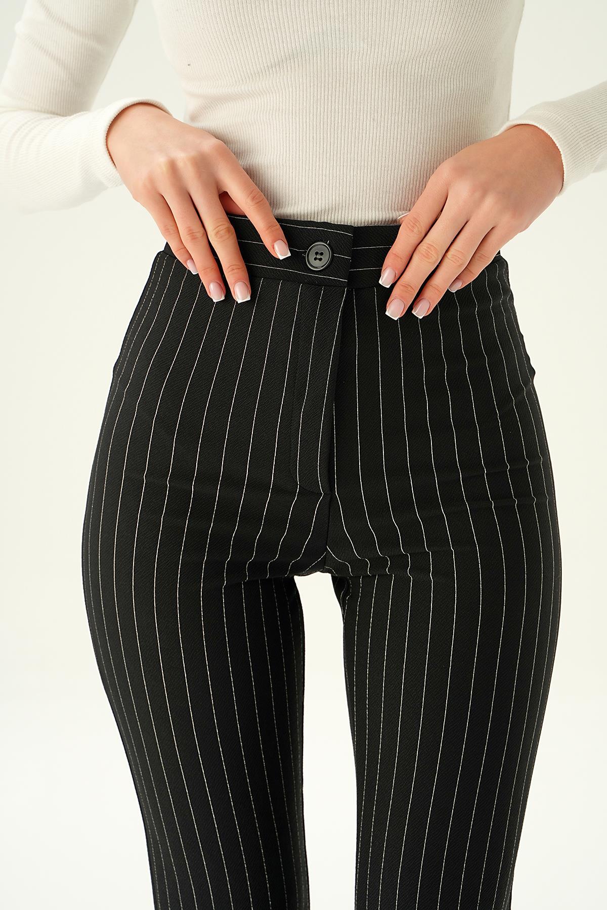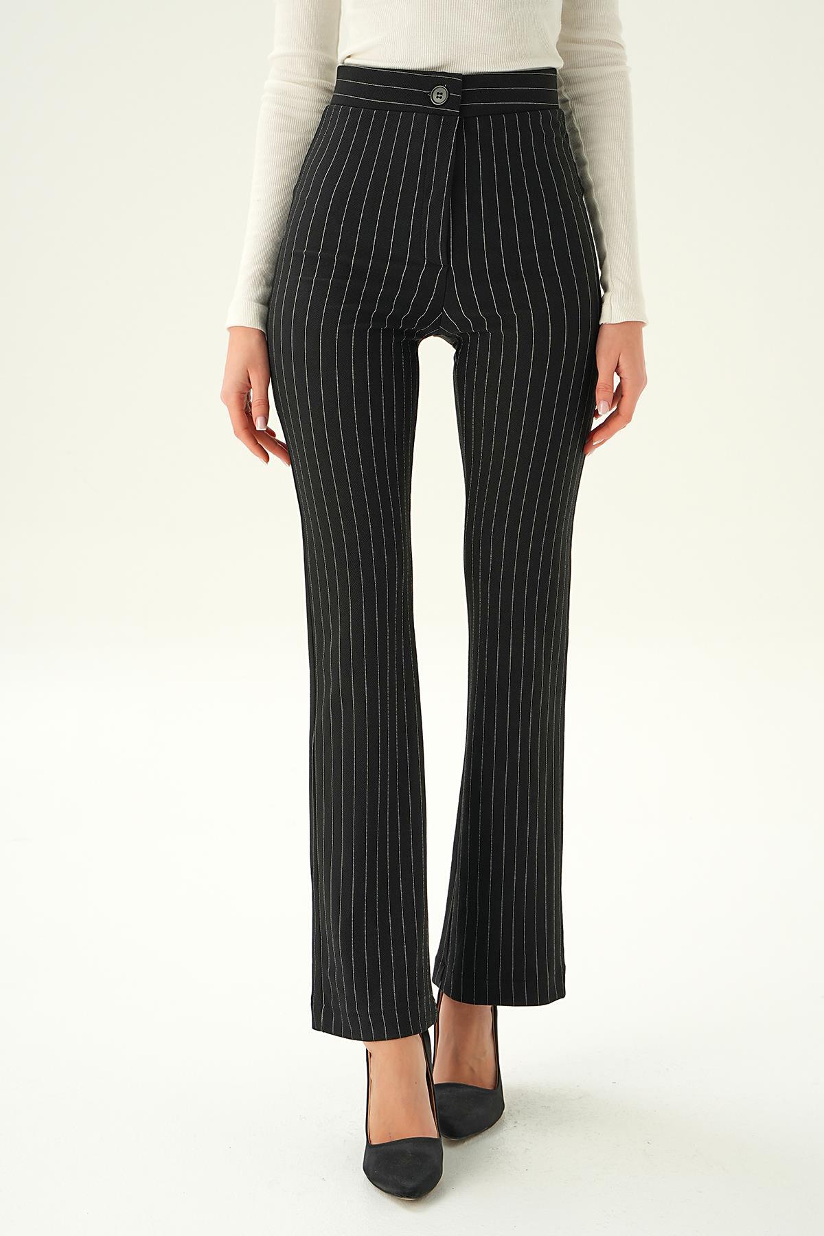 Siyah Geniş Paça Çizgili Pantolon 6912A