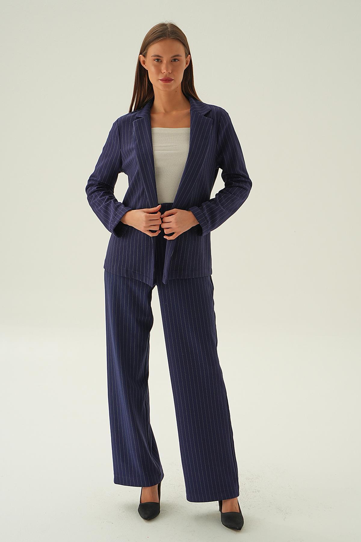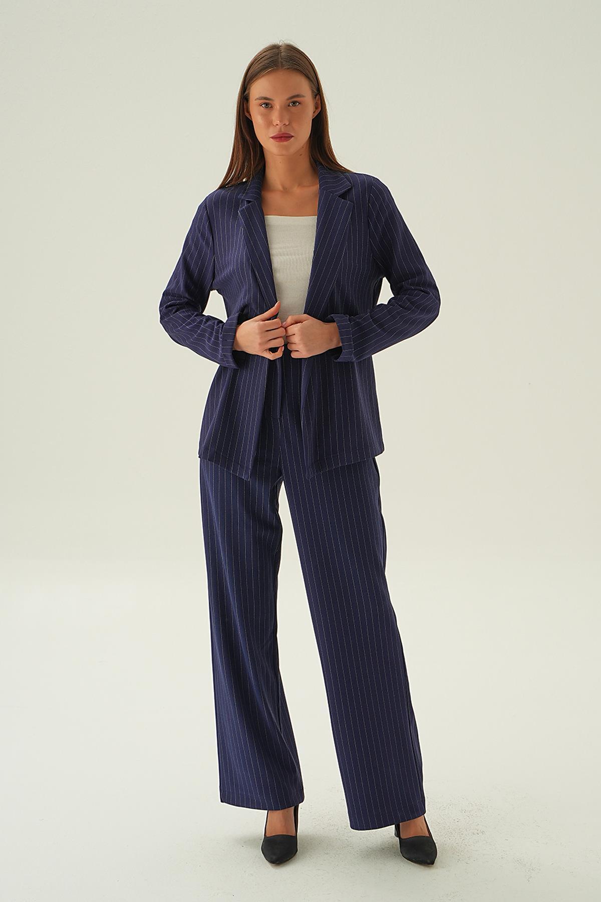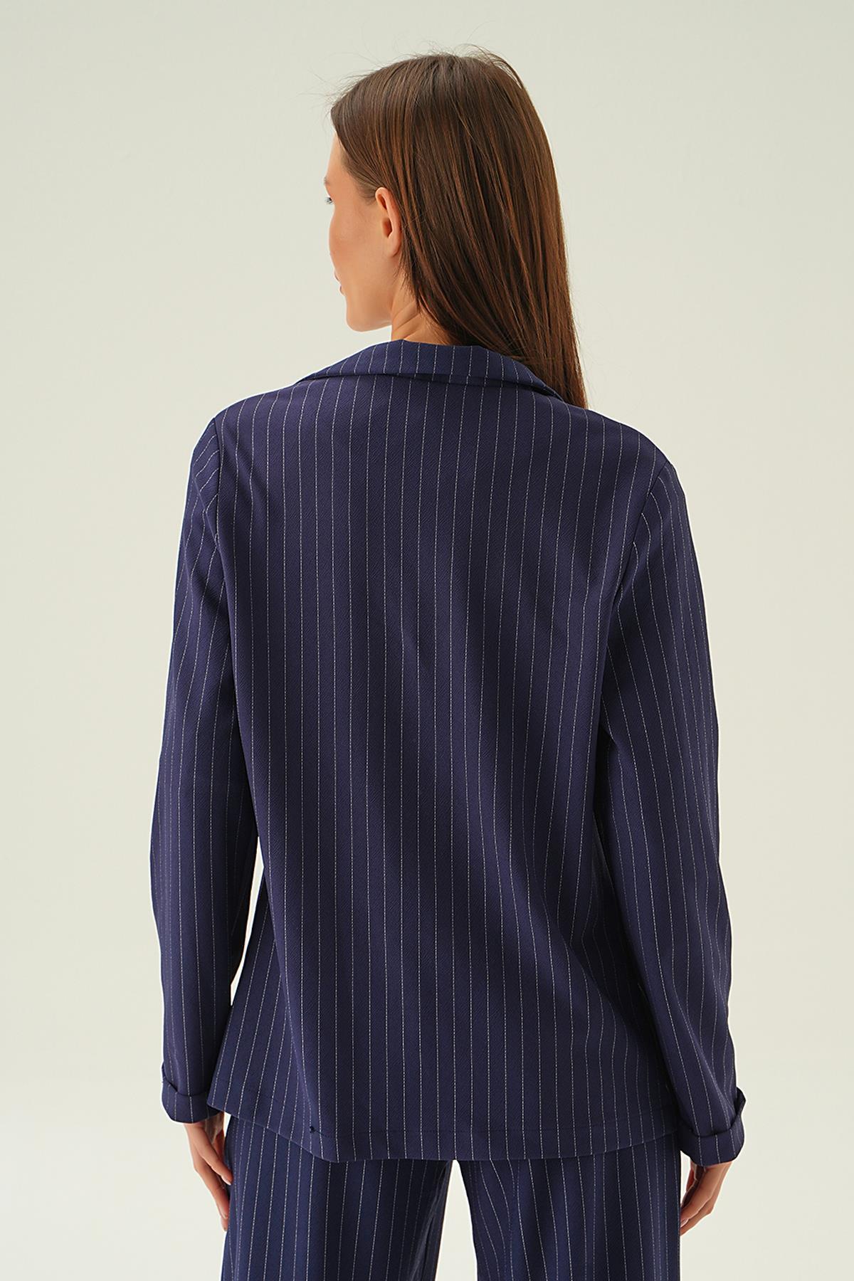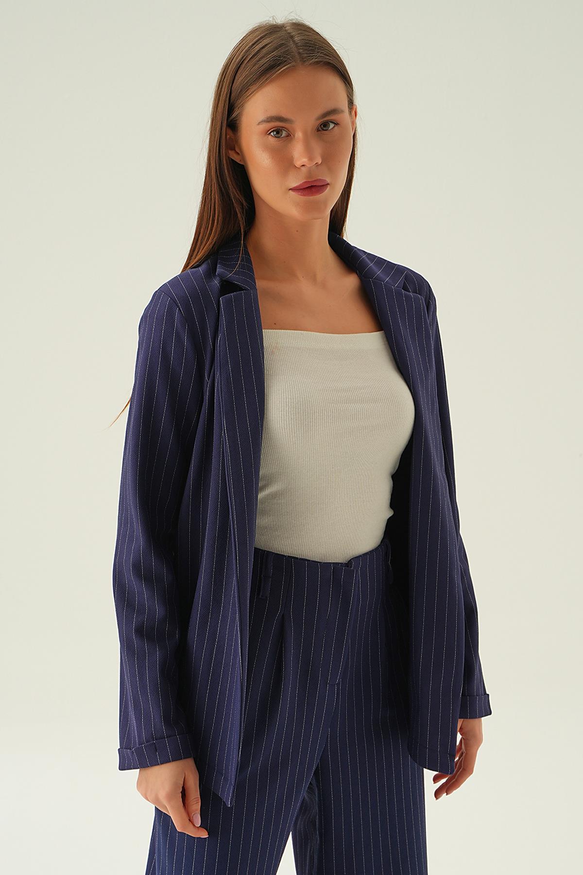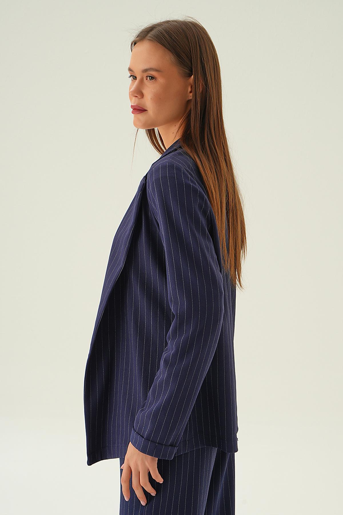 Laci Kol Katlamalı Çizgili Ceket 6914A
