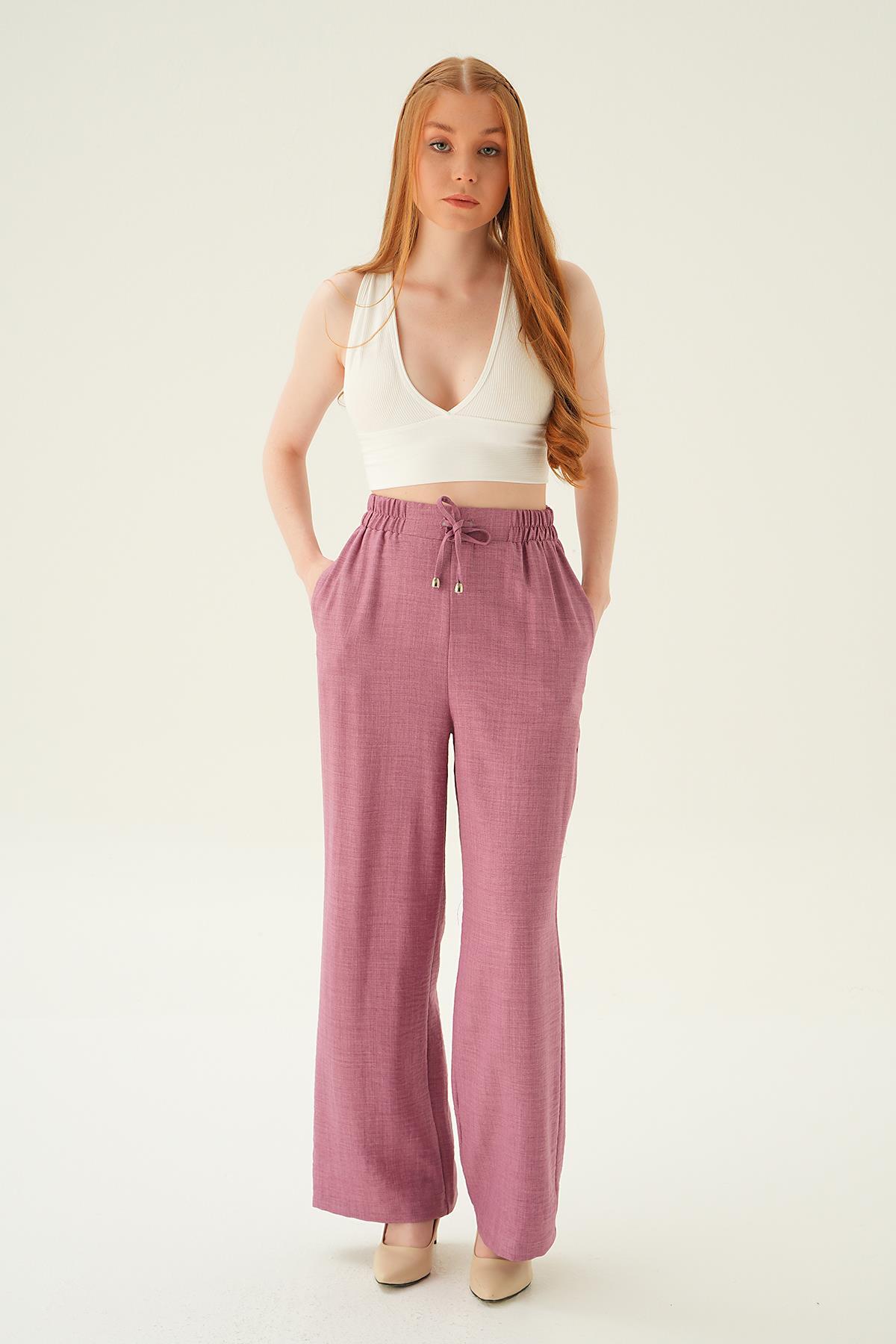 Gül Bağcıklı Geniş Pantolon 6917A