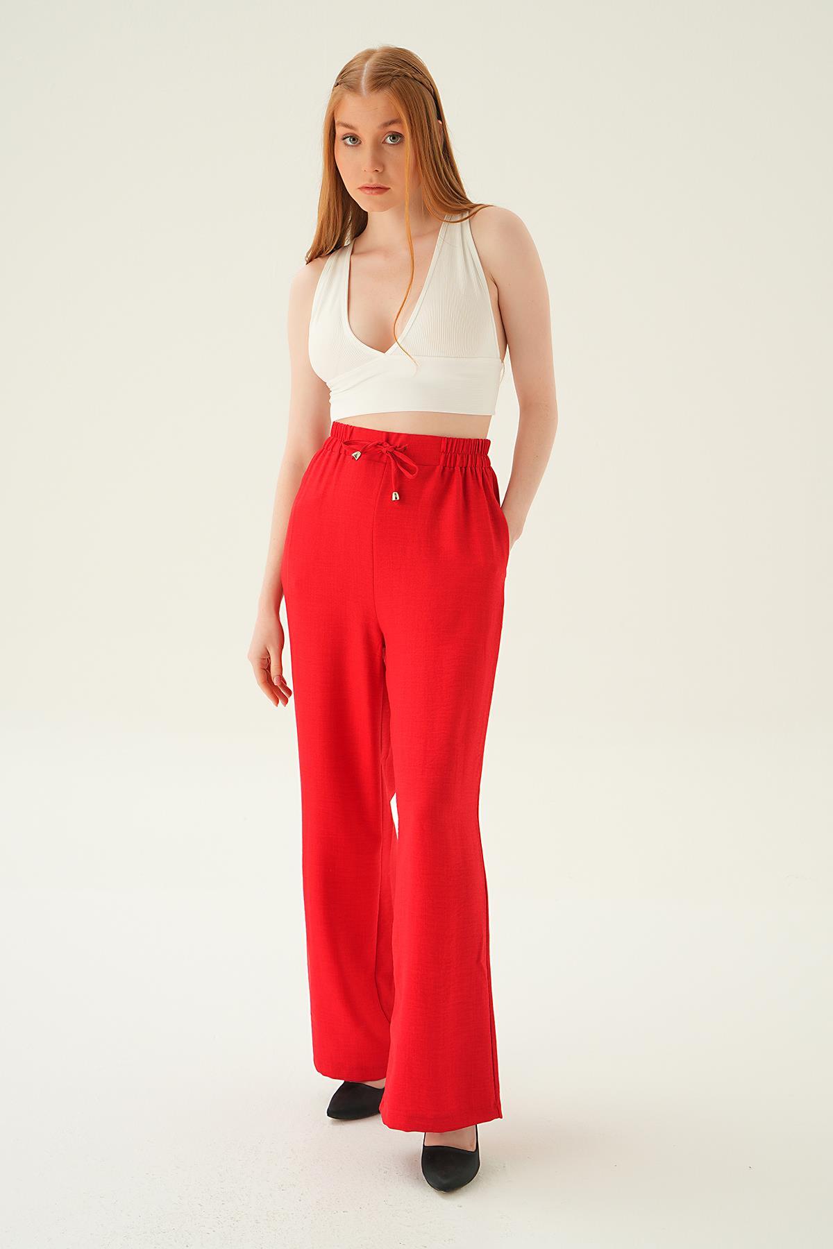 6917A Bağcıklı Geniş Pantolon Kırmızı