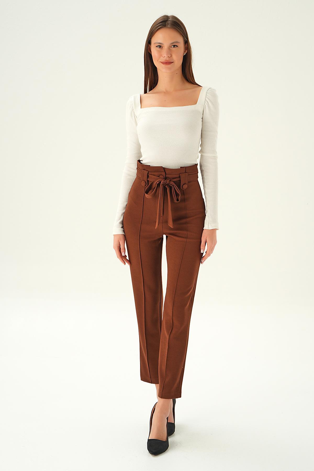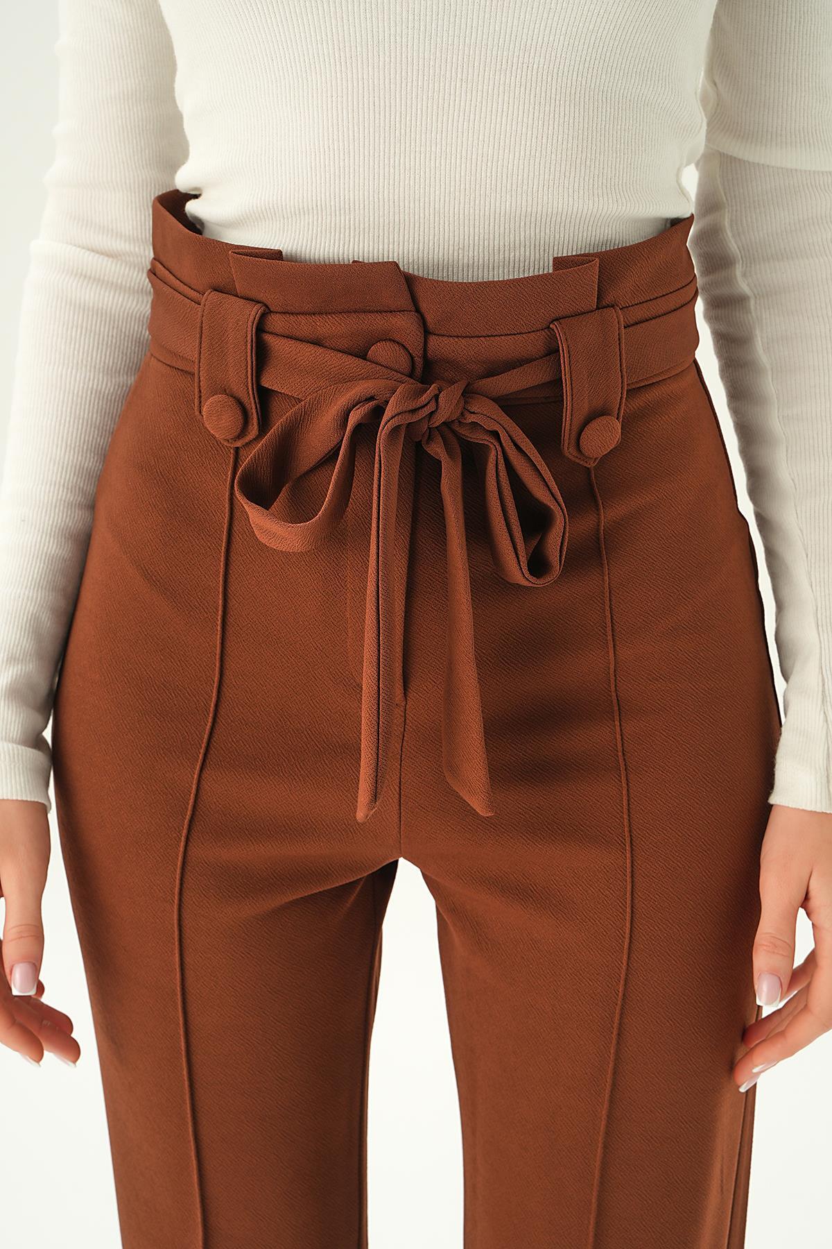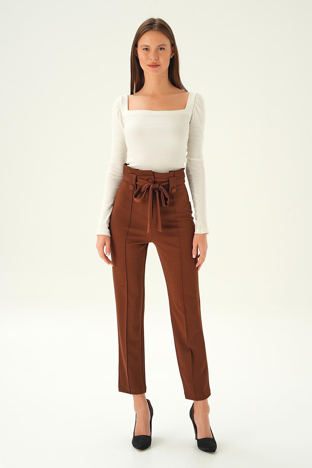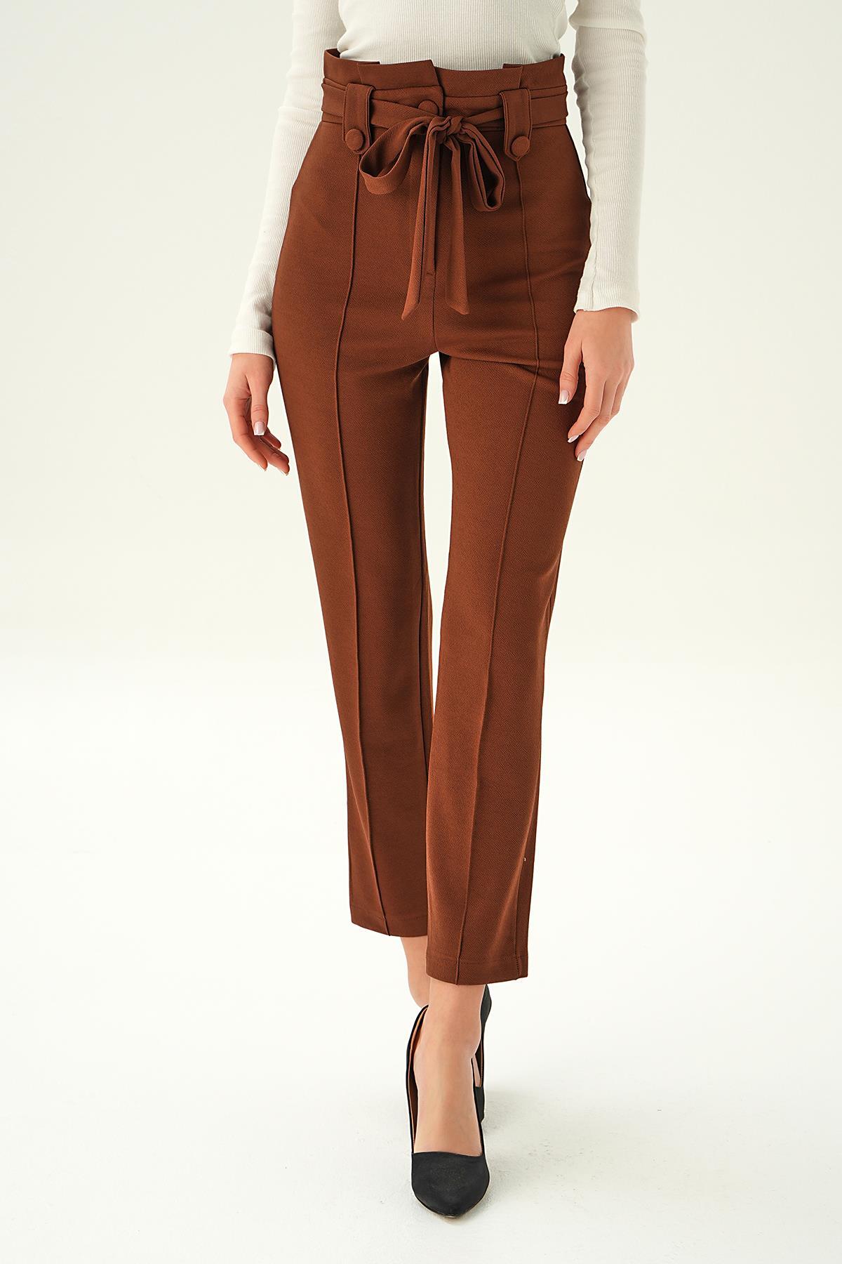 Acı Kahve Düğme Detay Havuç Pantolon 6921A