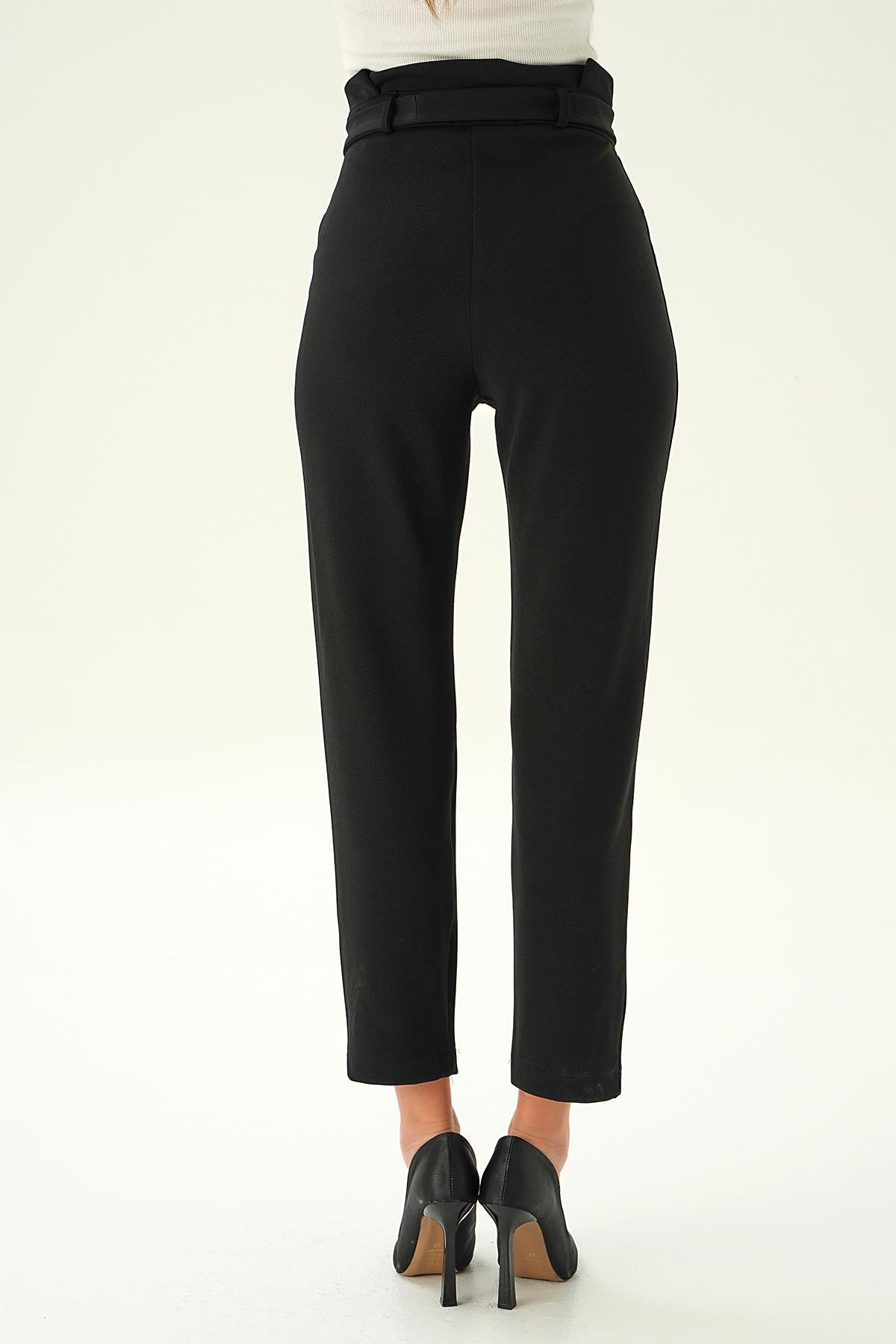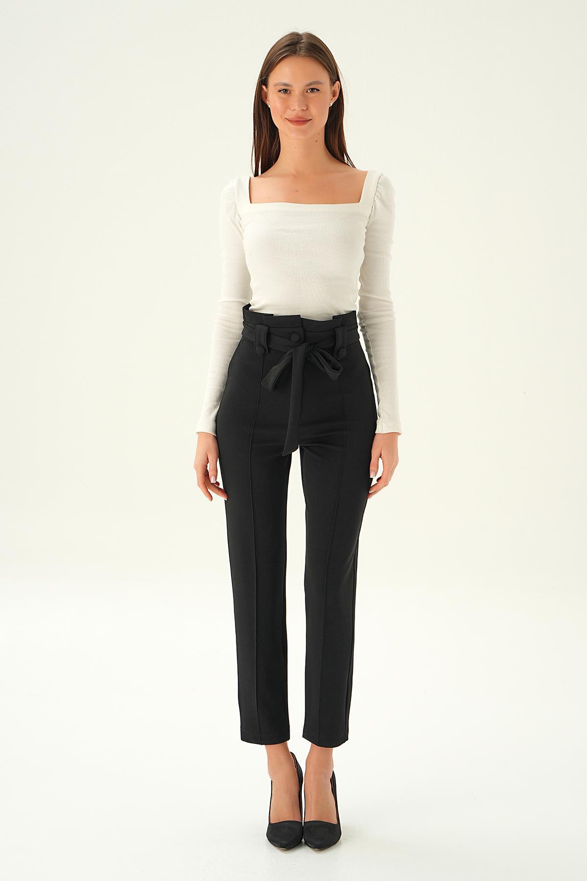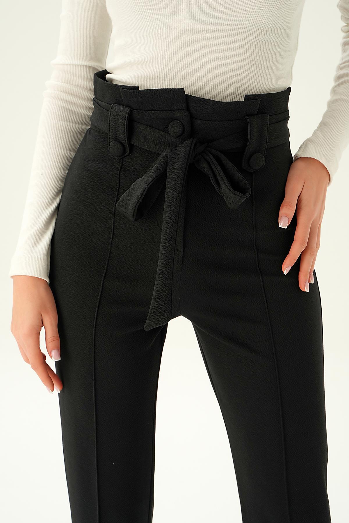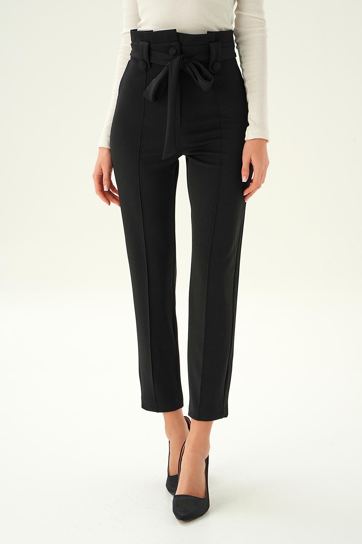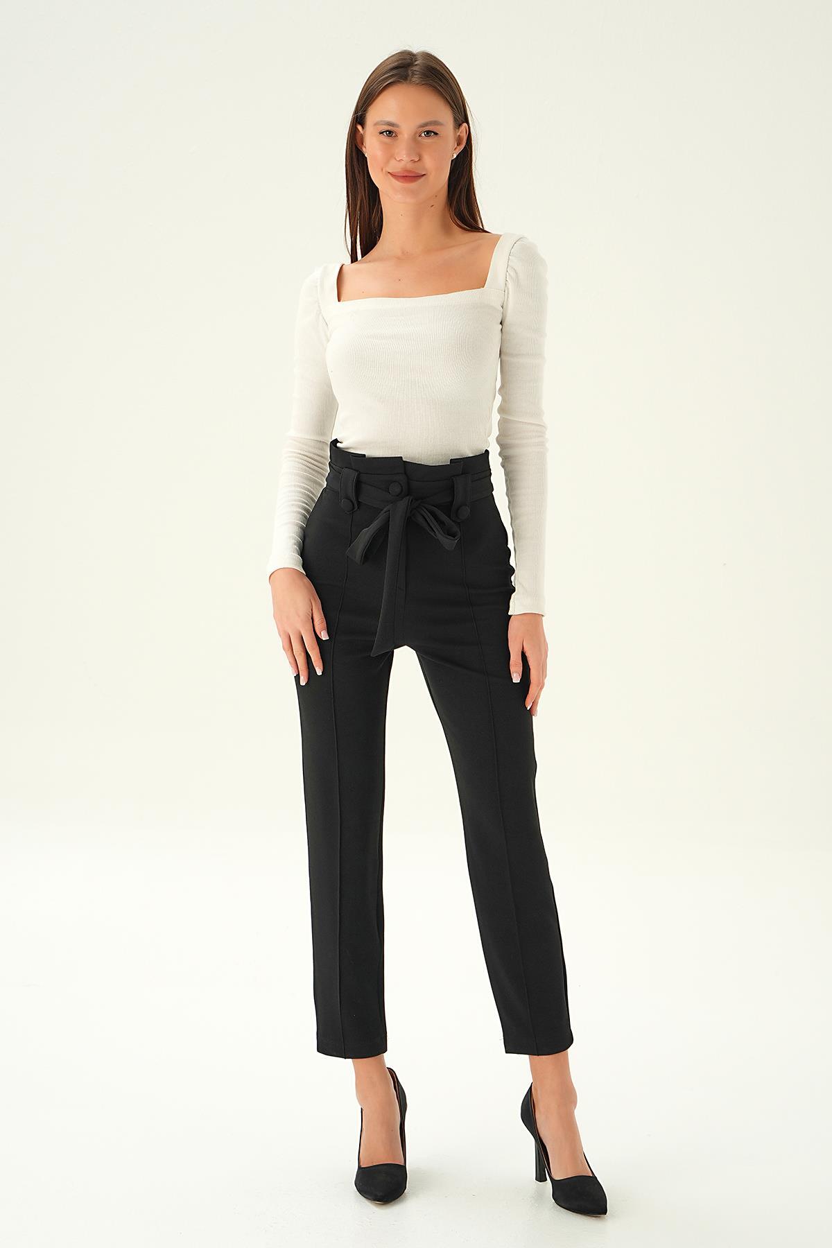 Siyah Düğme Detay Havuç Pantolon 6921A