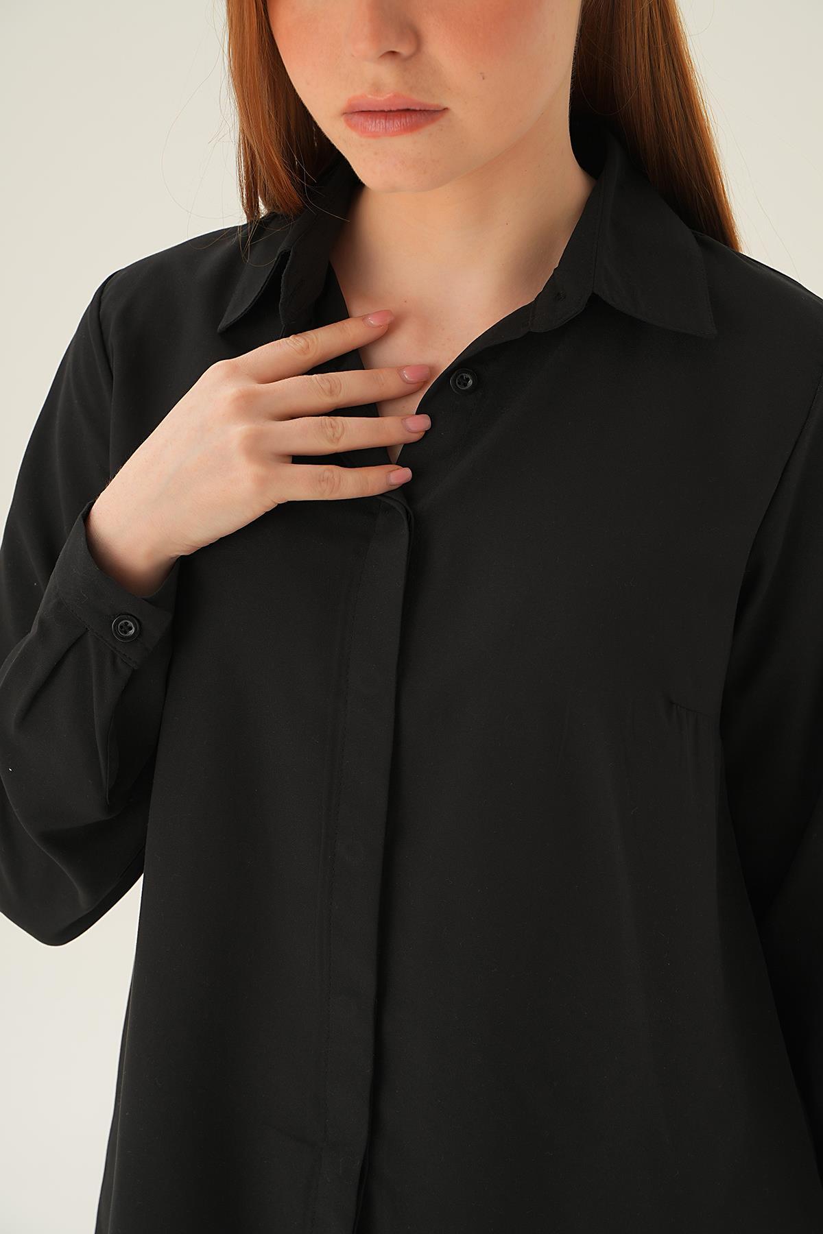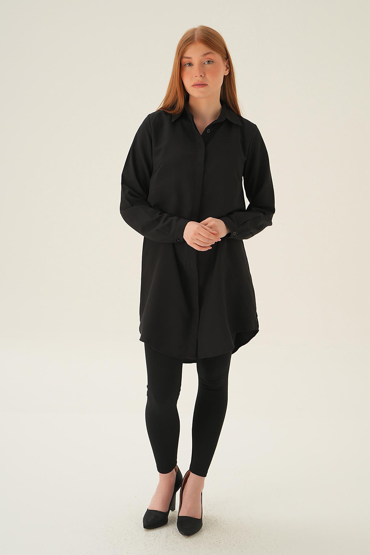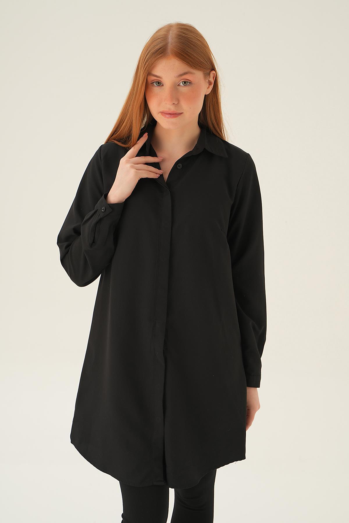 Siyah Gizli Düğme Uzun Gömlek 6929A