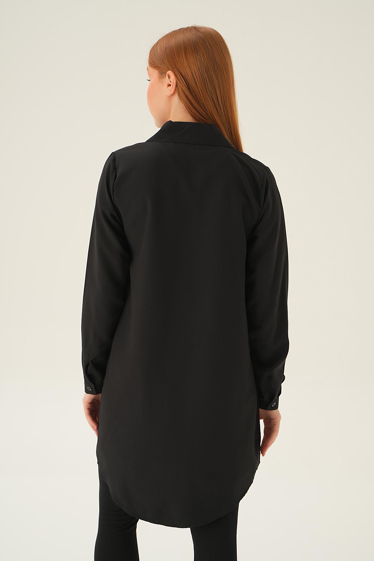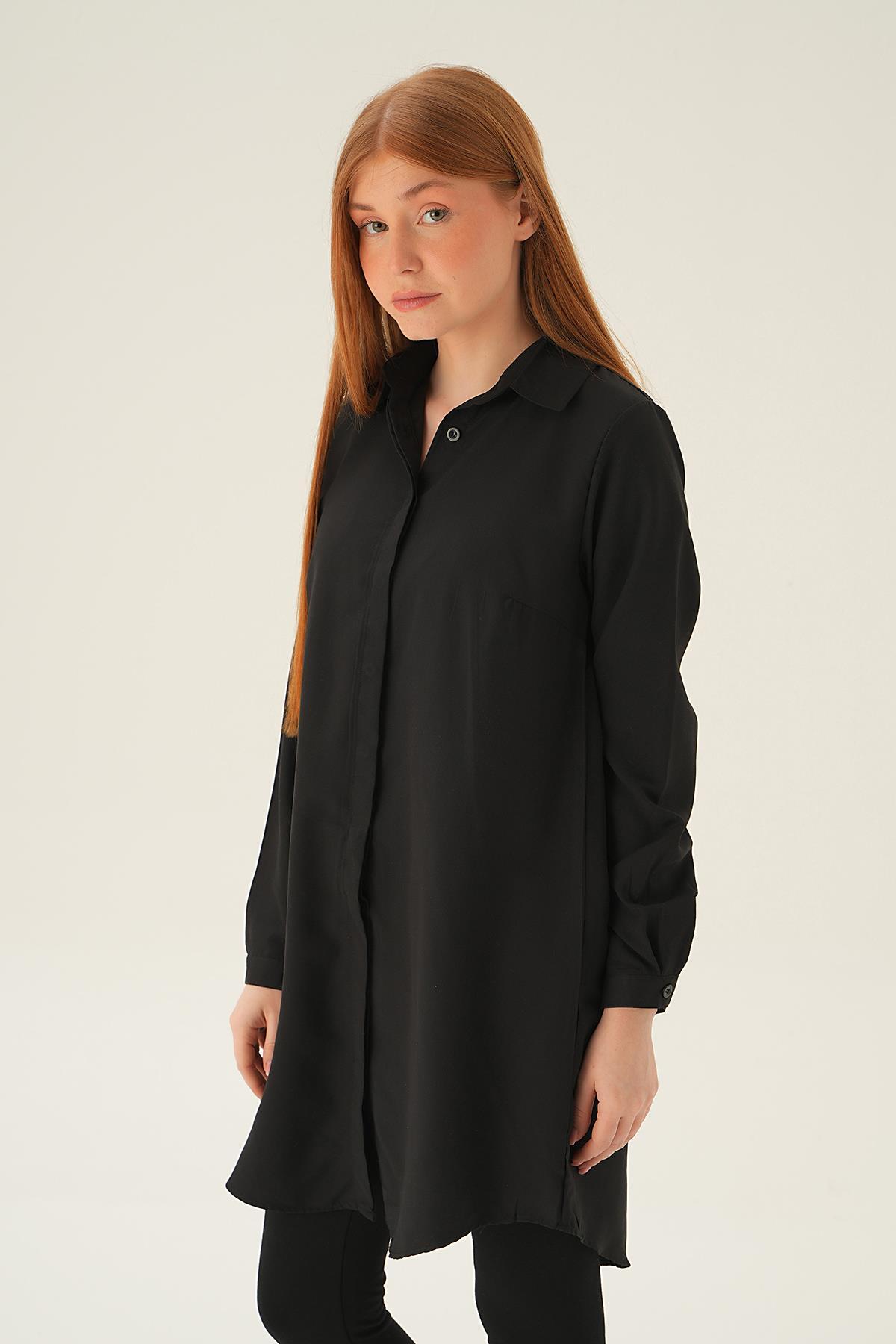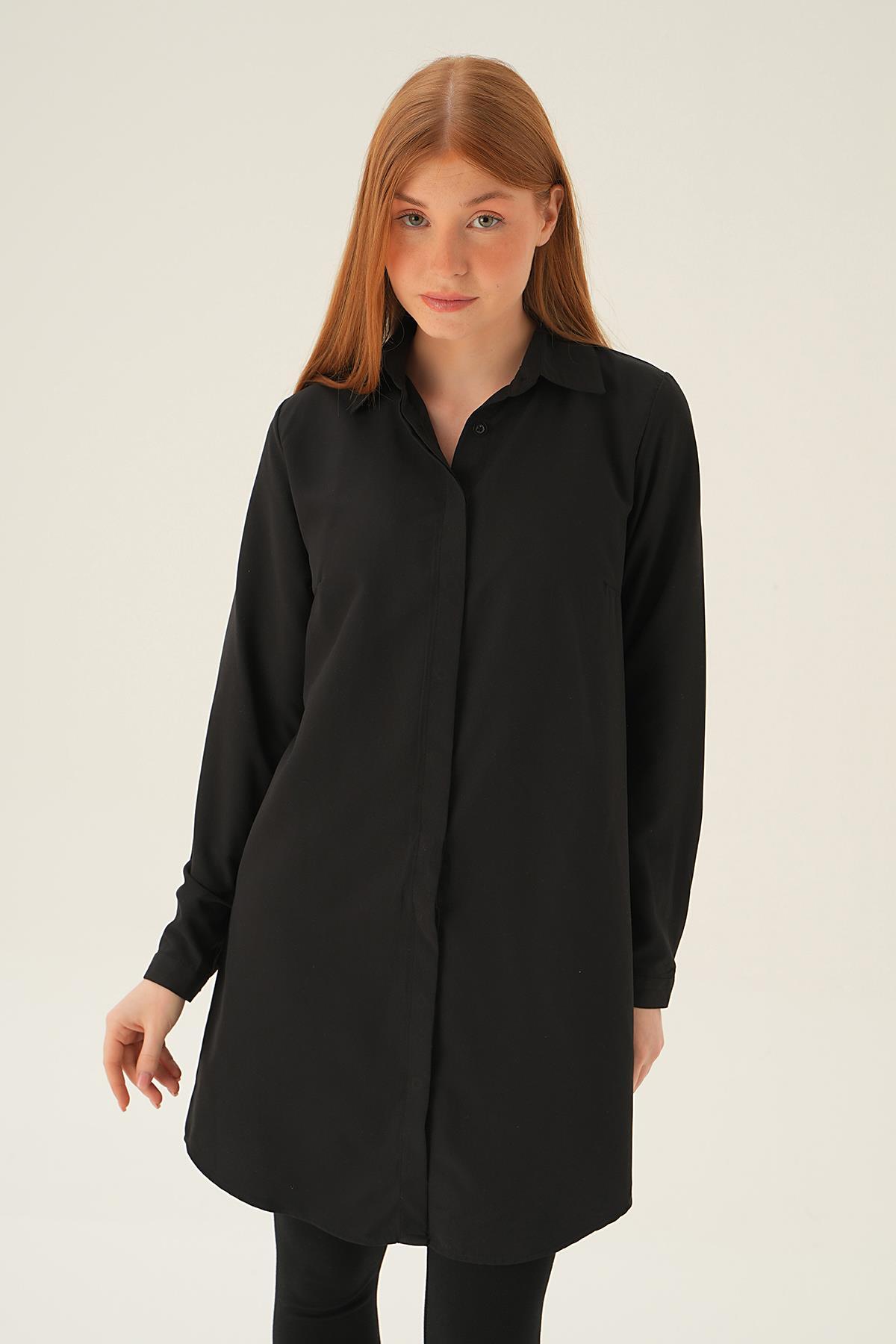 Siyah Gizli Düğme Uzun Gömlek 6929A