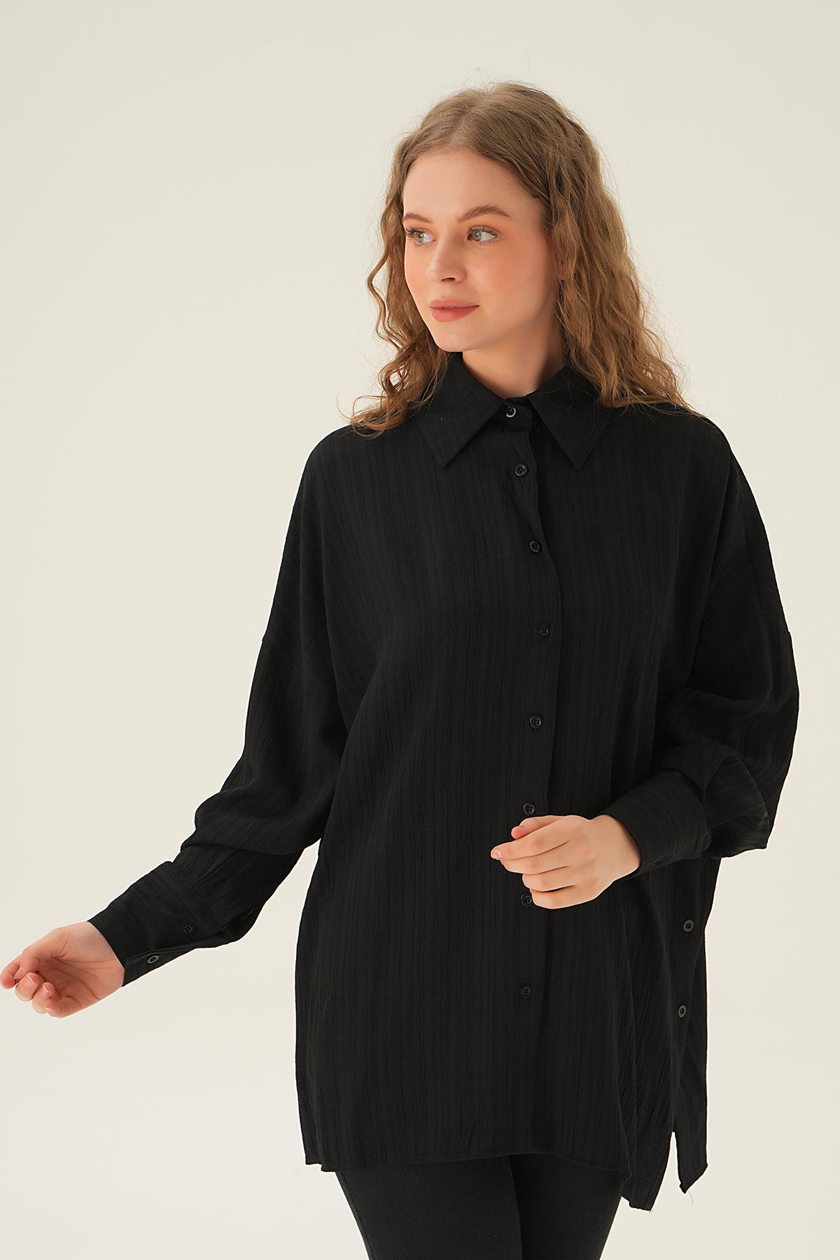 Siyah Çizgili Salaş Gömlek 5475 - RAYS Siyah Çizgili Salaş Gömlek 5475 - RAYS (1)