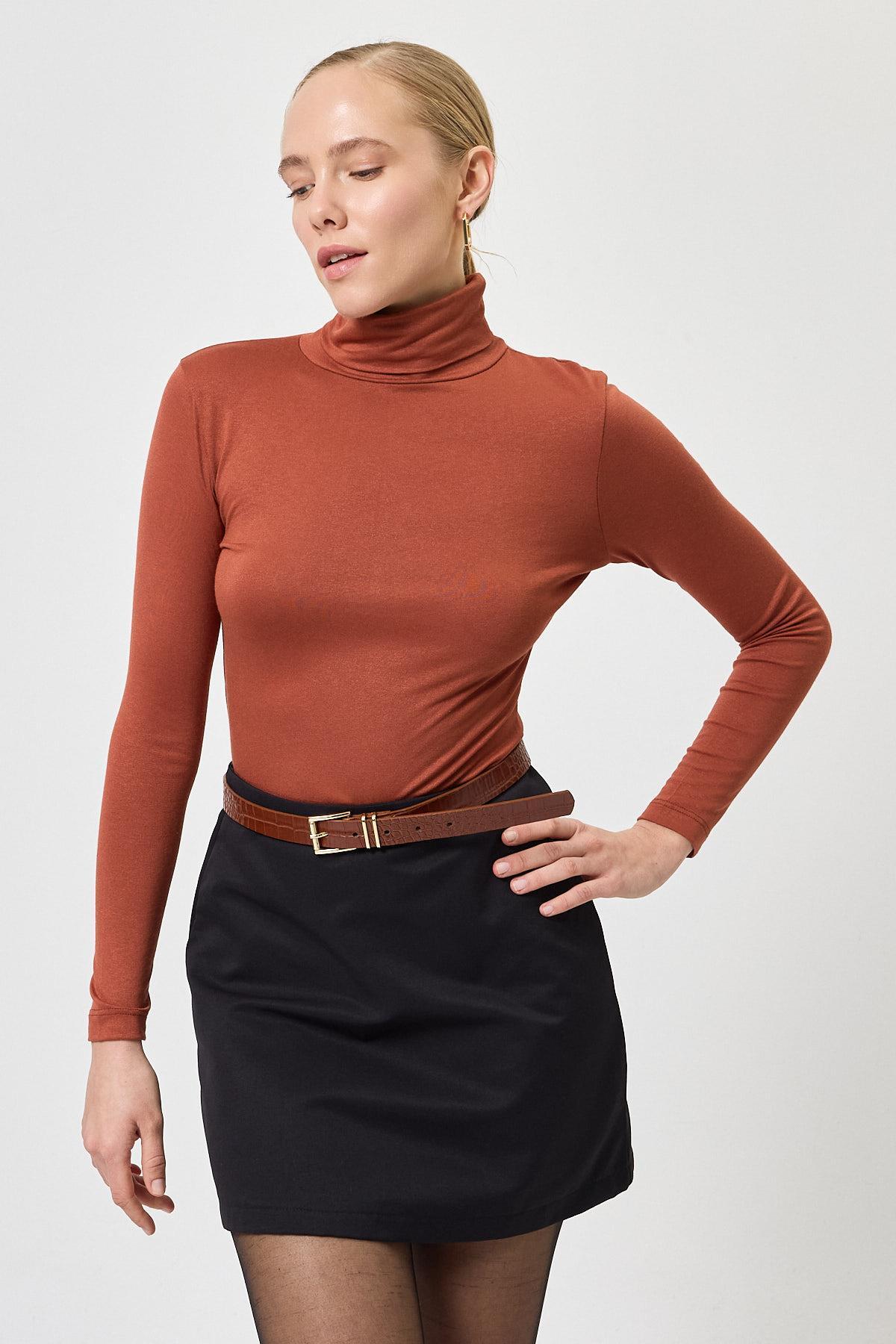 Siyah-Beyaz-Laci-Kiremit-Haki-Kırmızı Balıkçı Yaka Bluz 2504