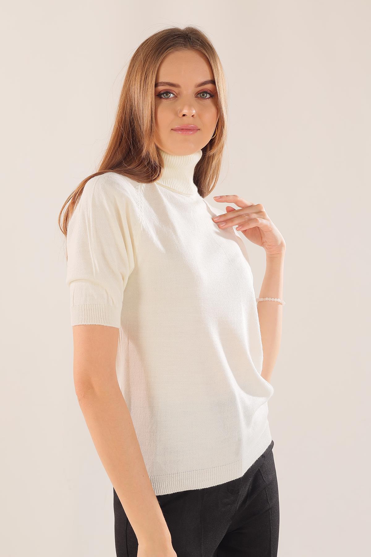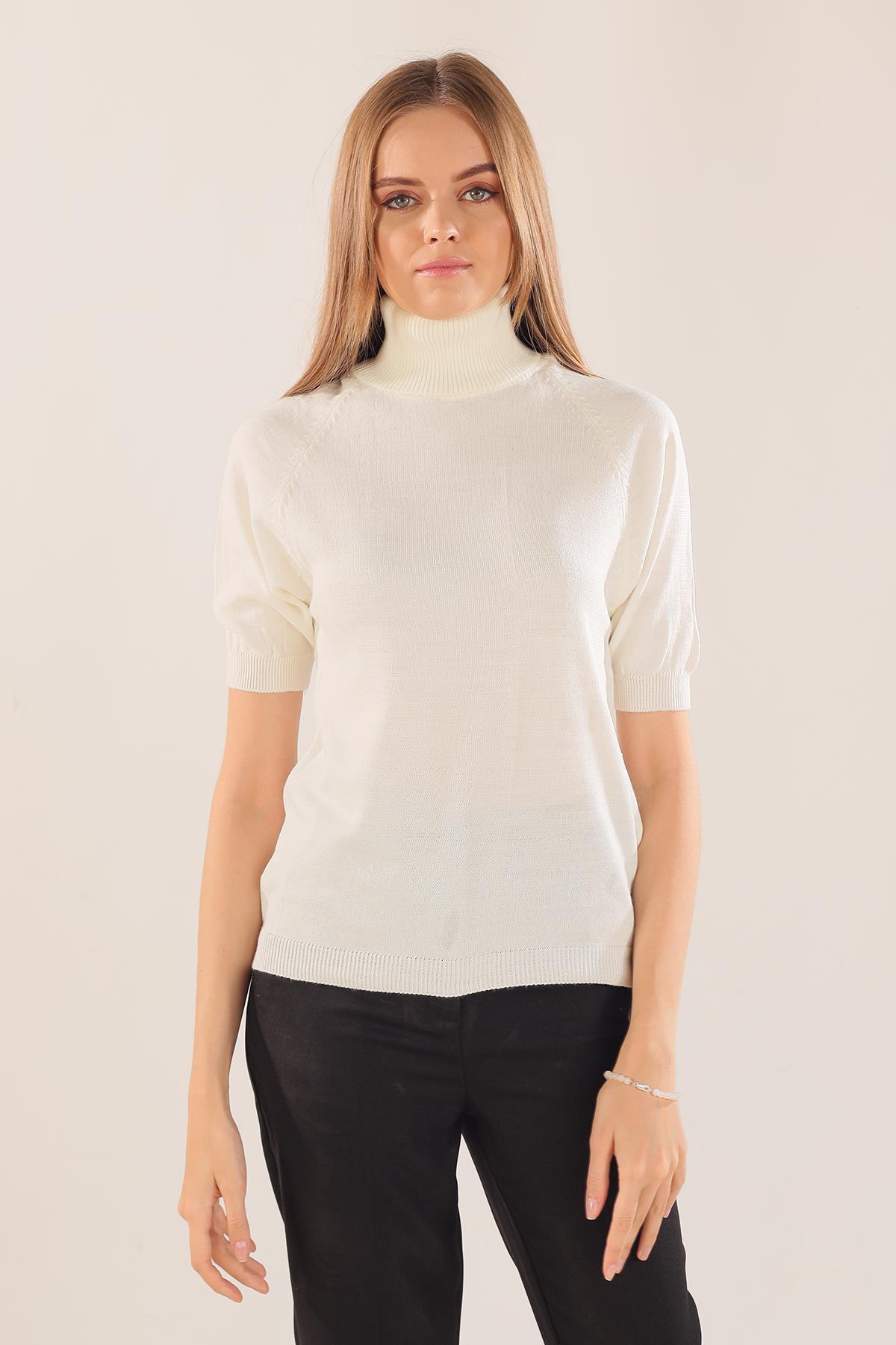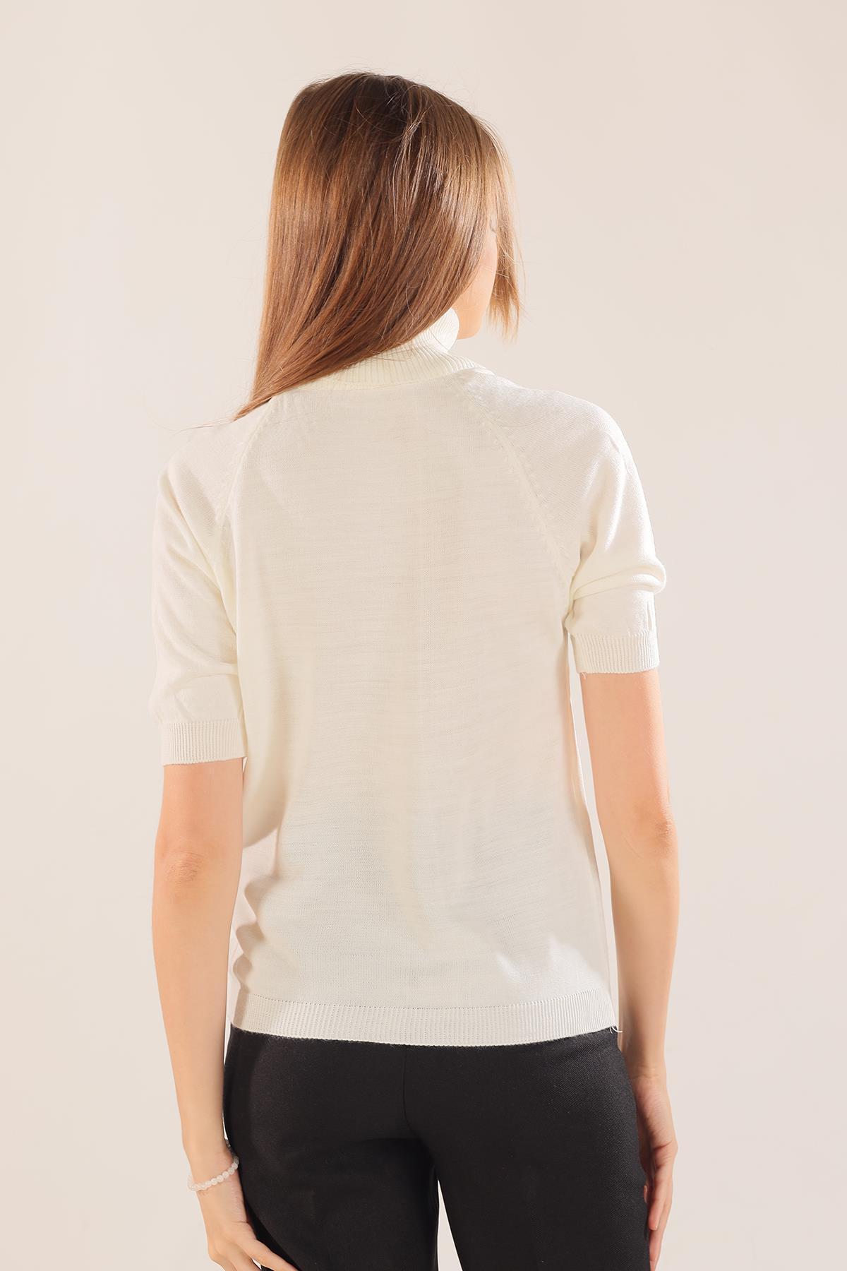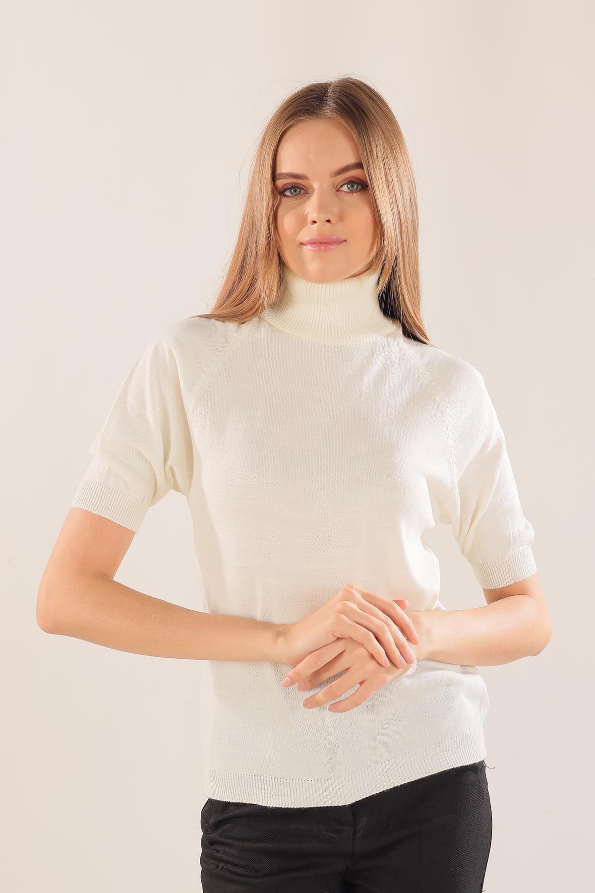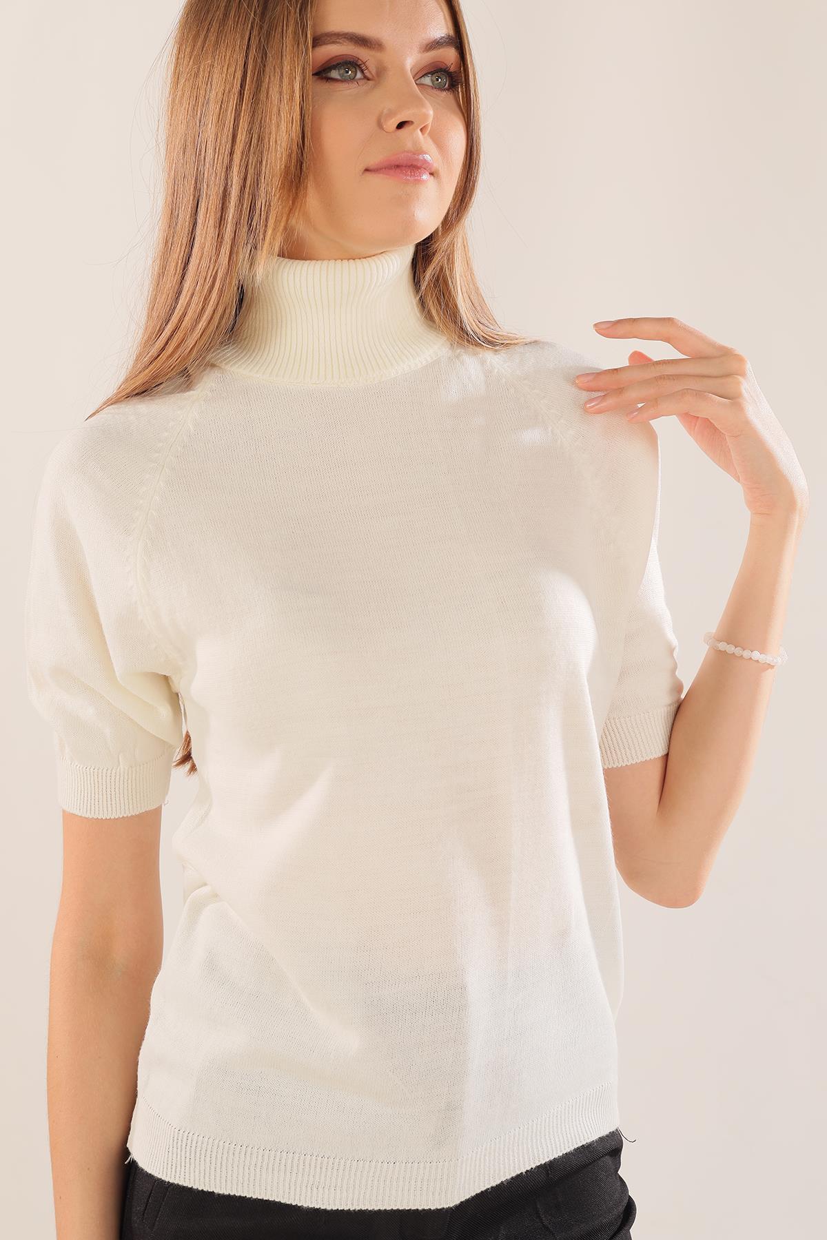 Ekru Yarım Kol Boğazlı Kazak 701