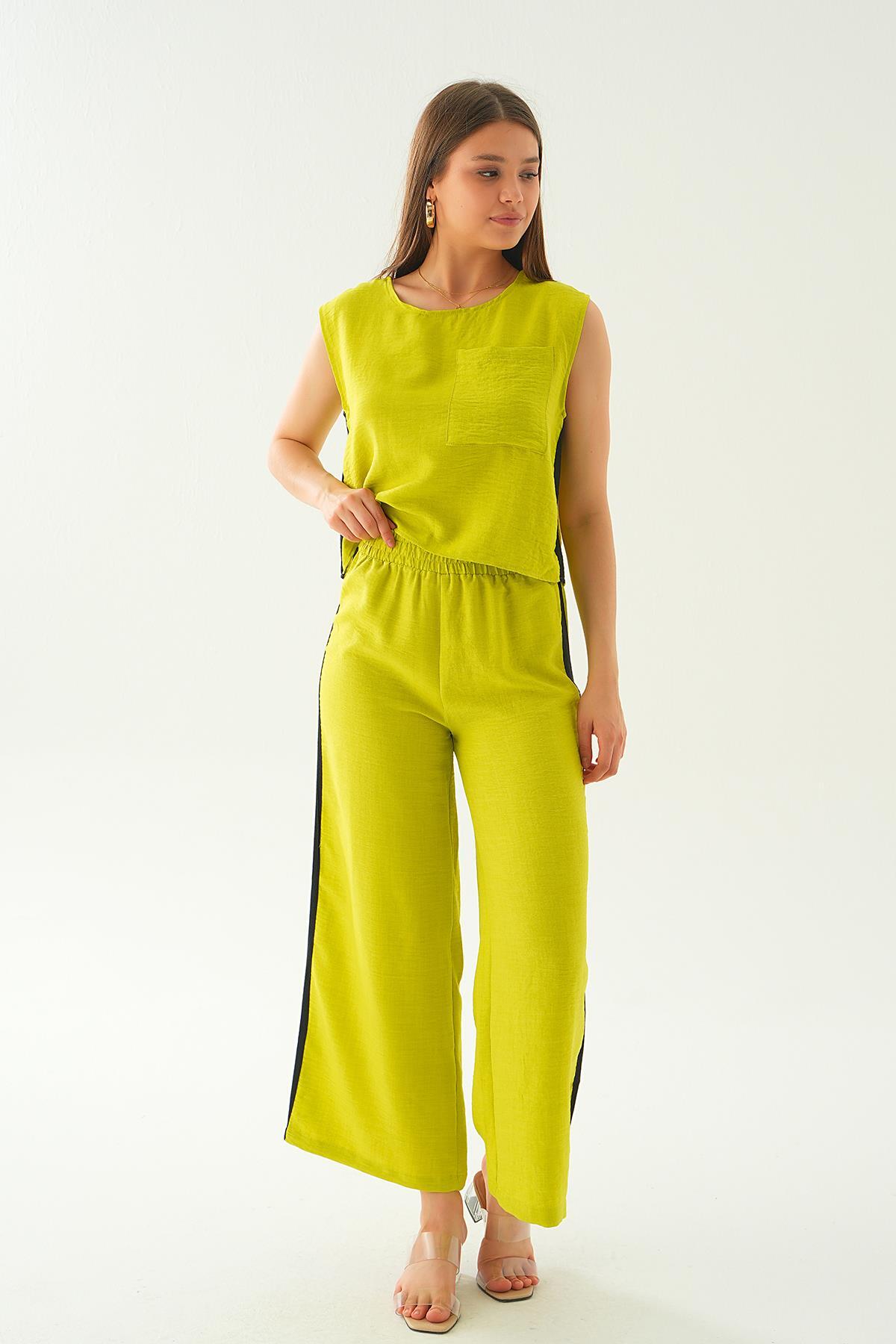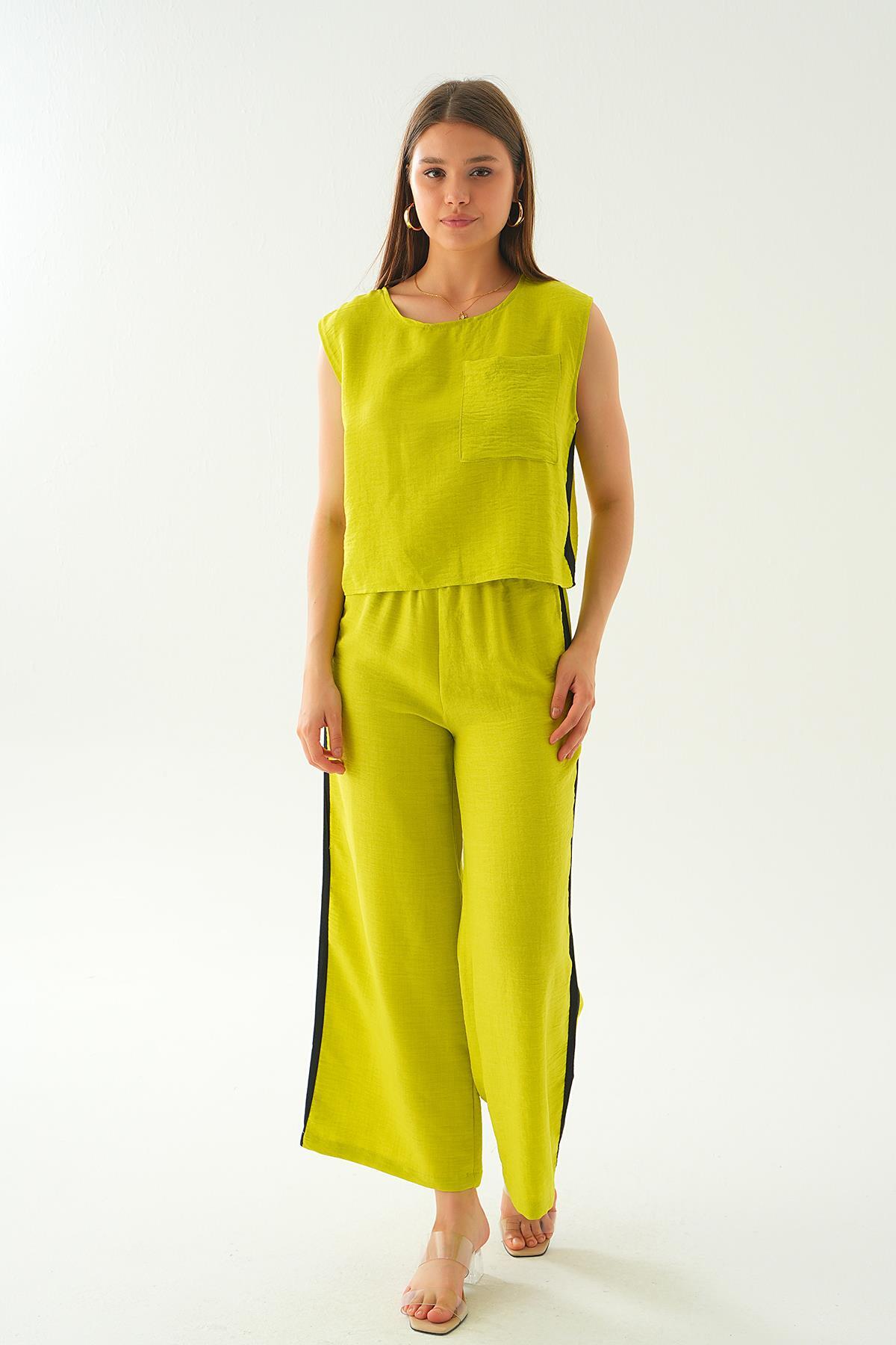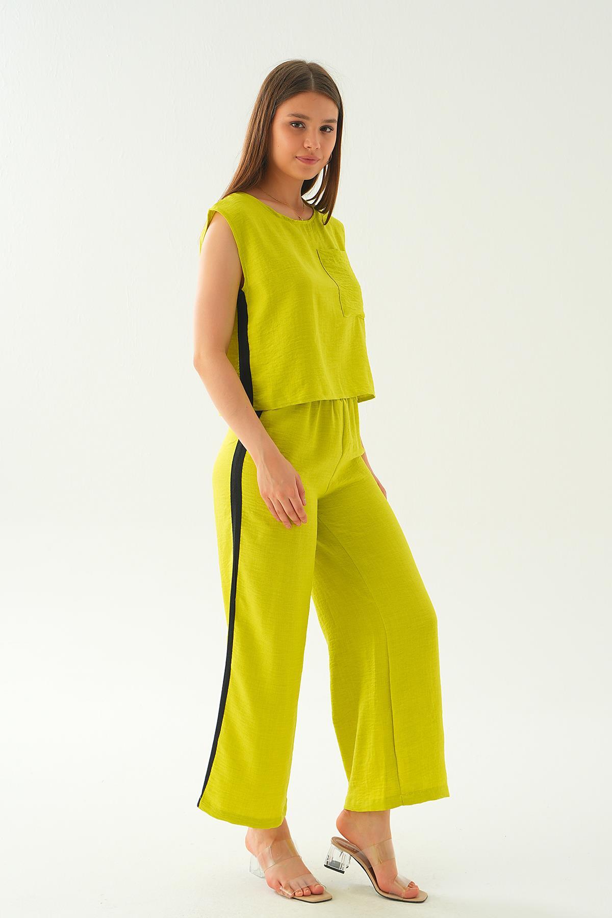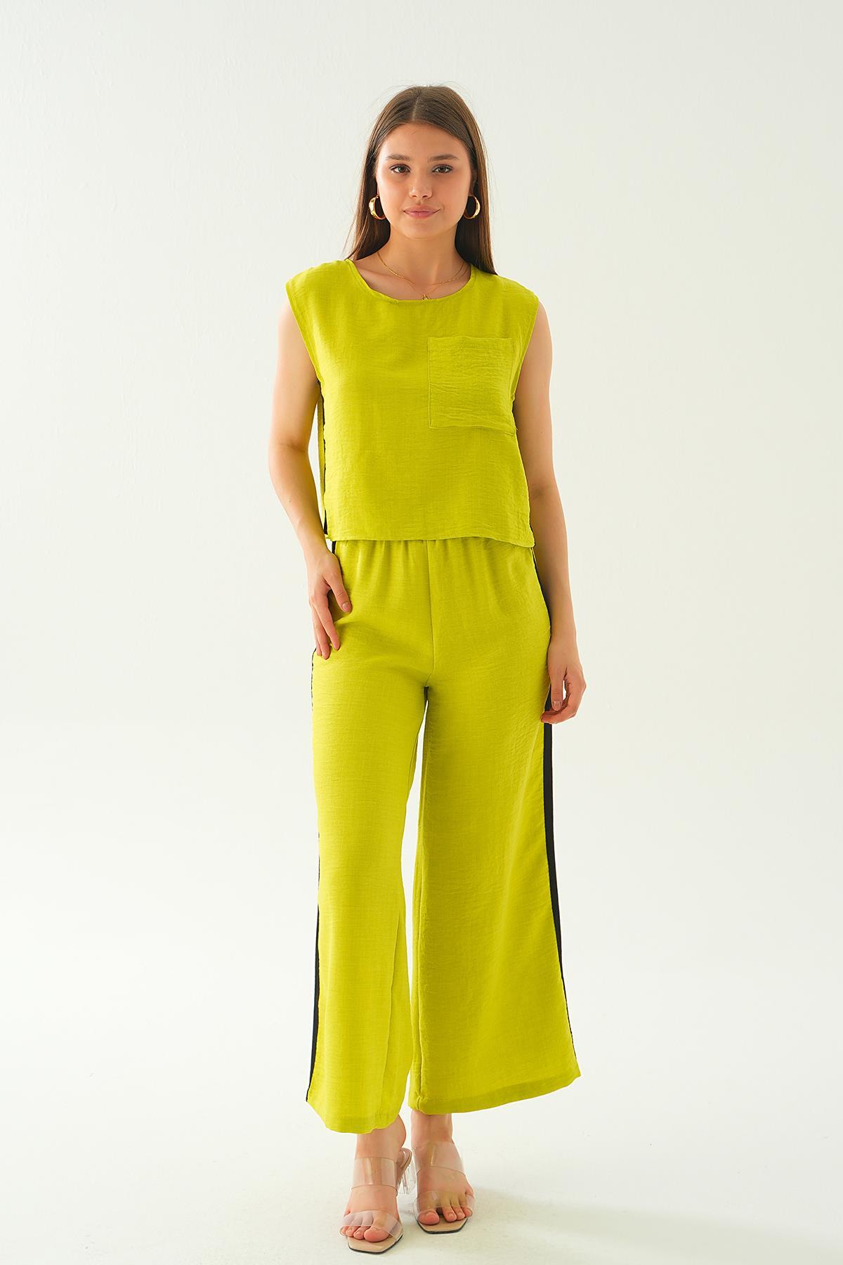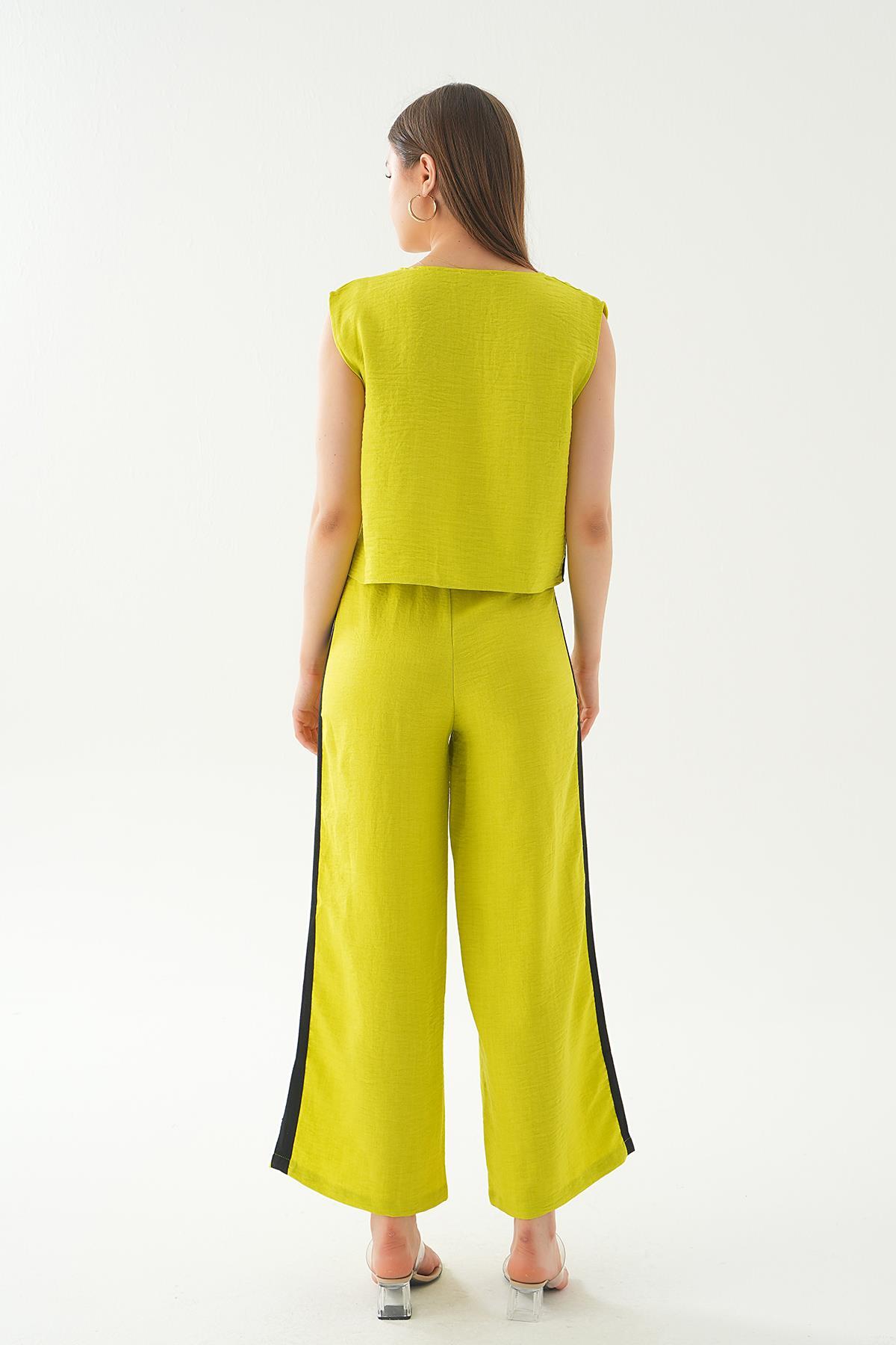 Yağ Yeşili Şeritli Pantolon Takım 7017