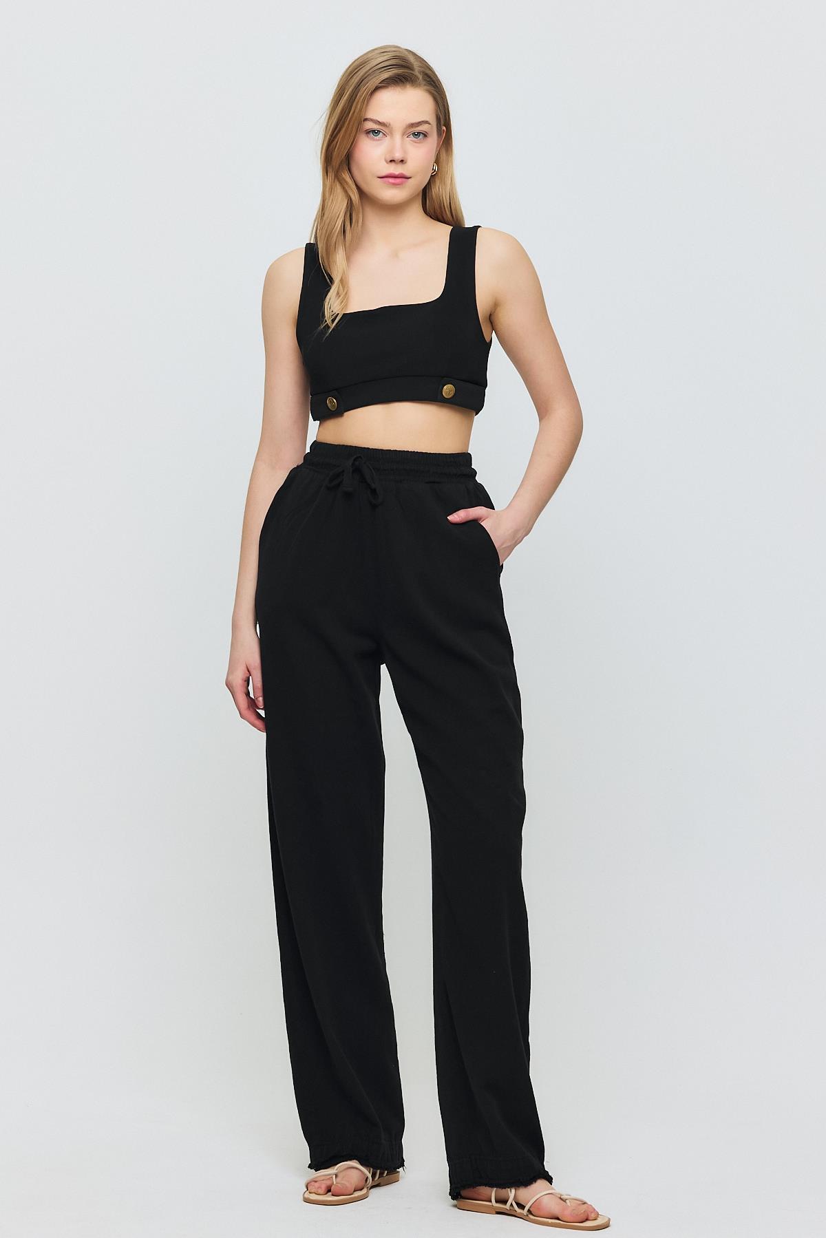7022 Gronigen Bağcık Beli Lastikli Pantolon Siyah