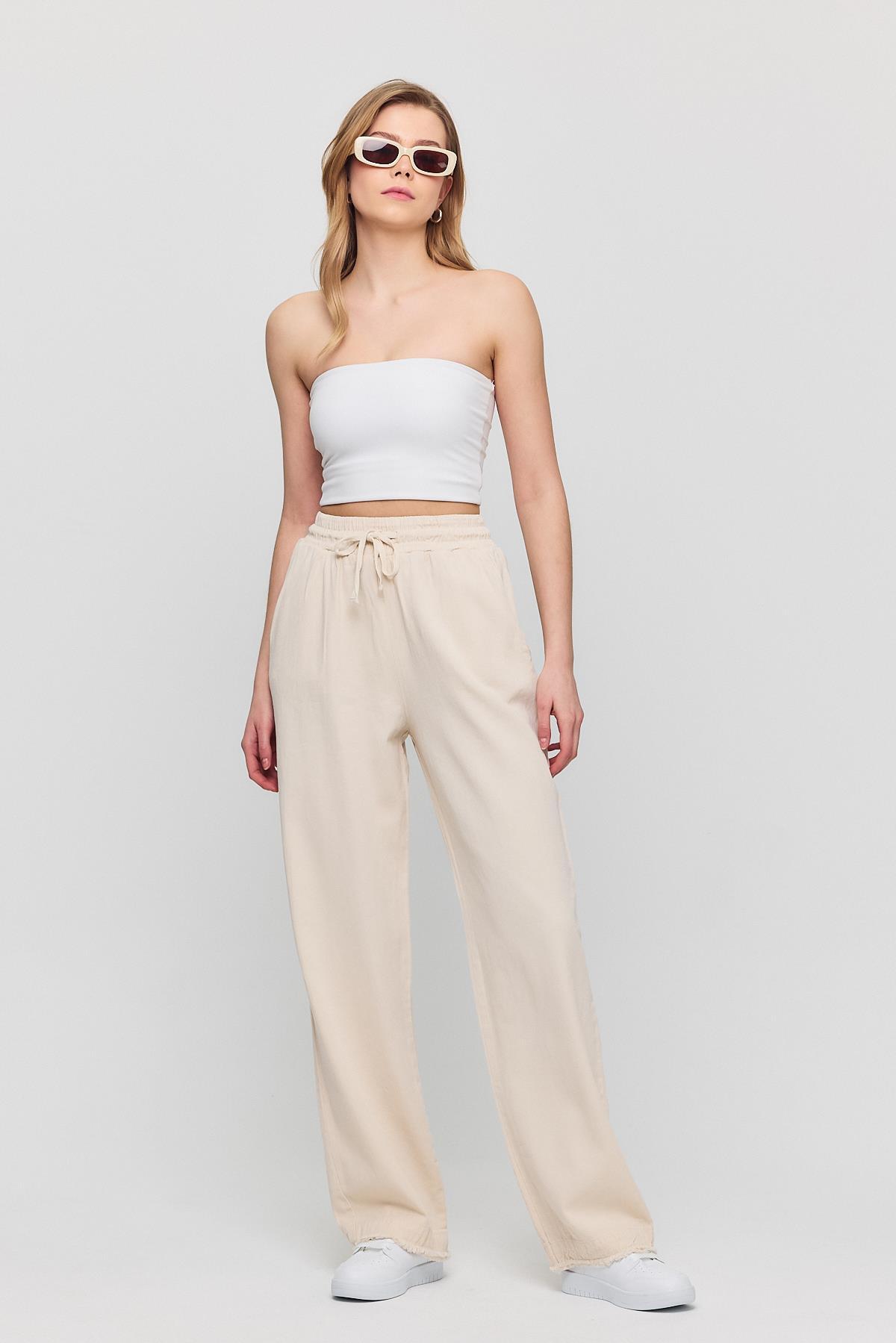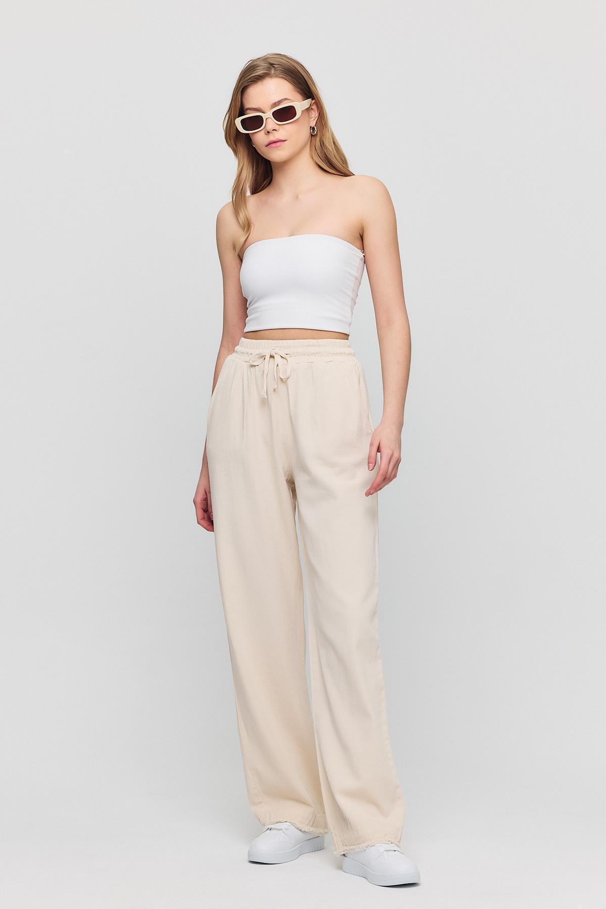 Beyaz Bağlamalı Palazzo Pantolon 3884 - RAYS