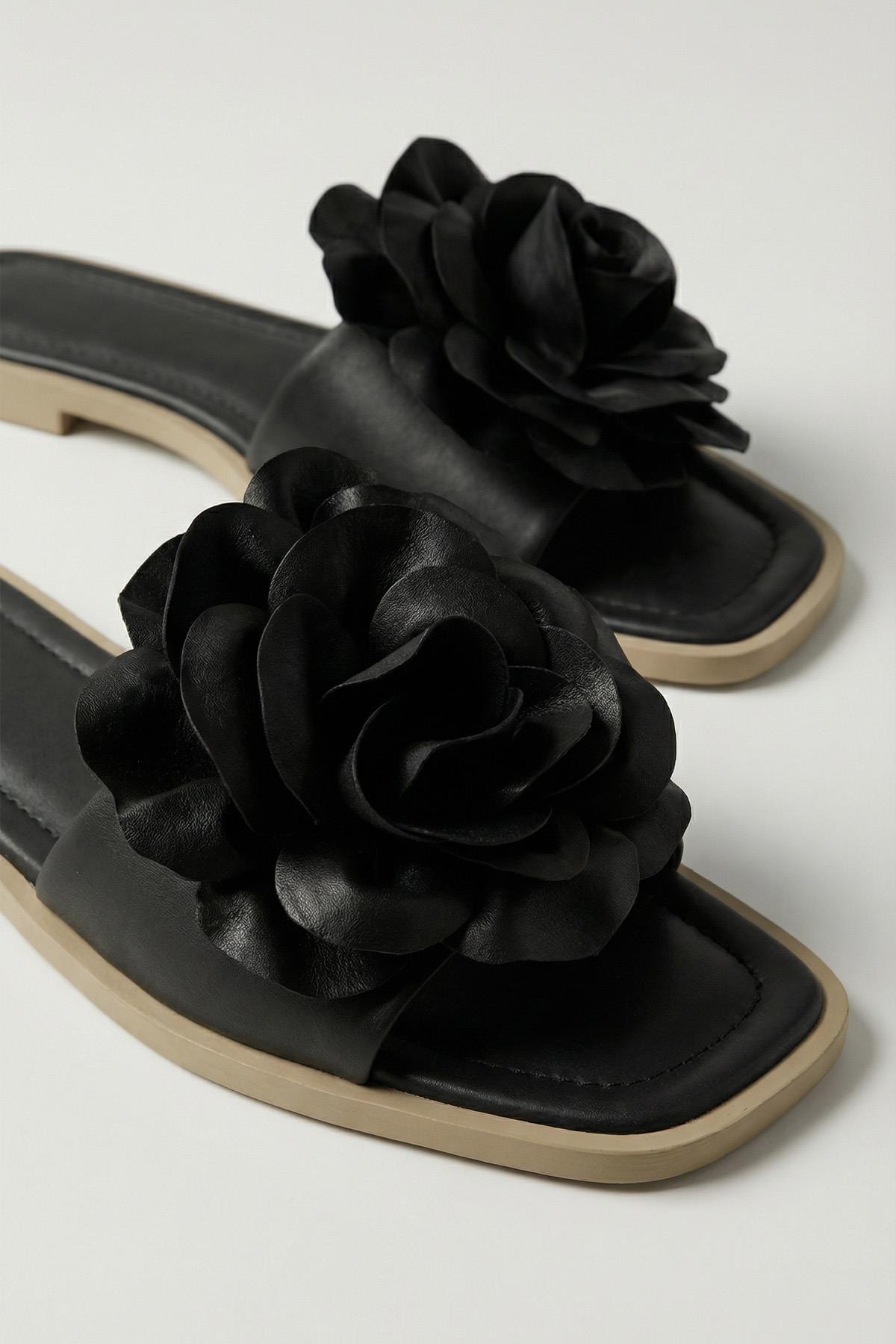 Siyah Çiçek Detay Terlik 7043