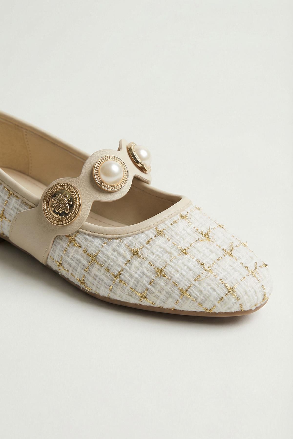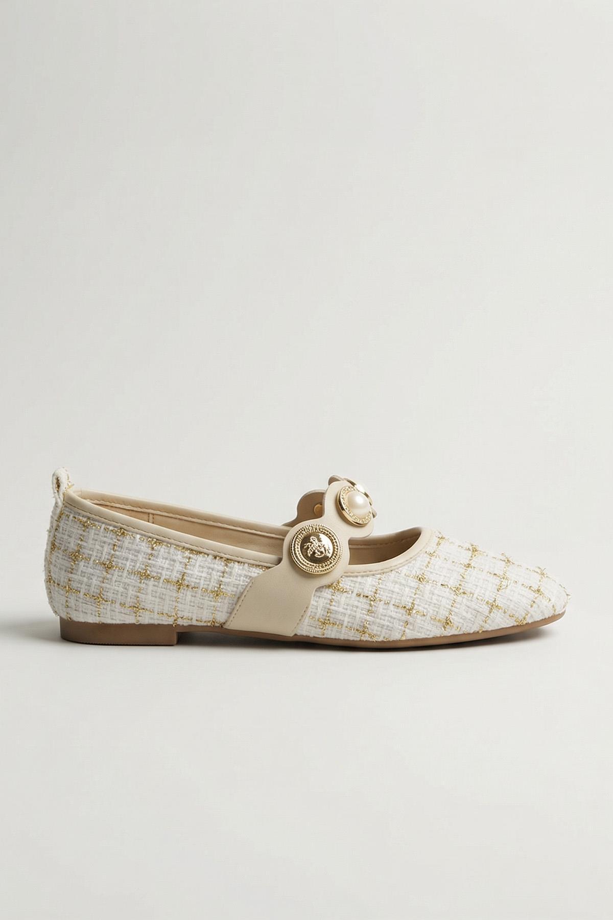 Beyaz Simli Taş Detay Babet 7044