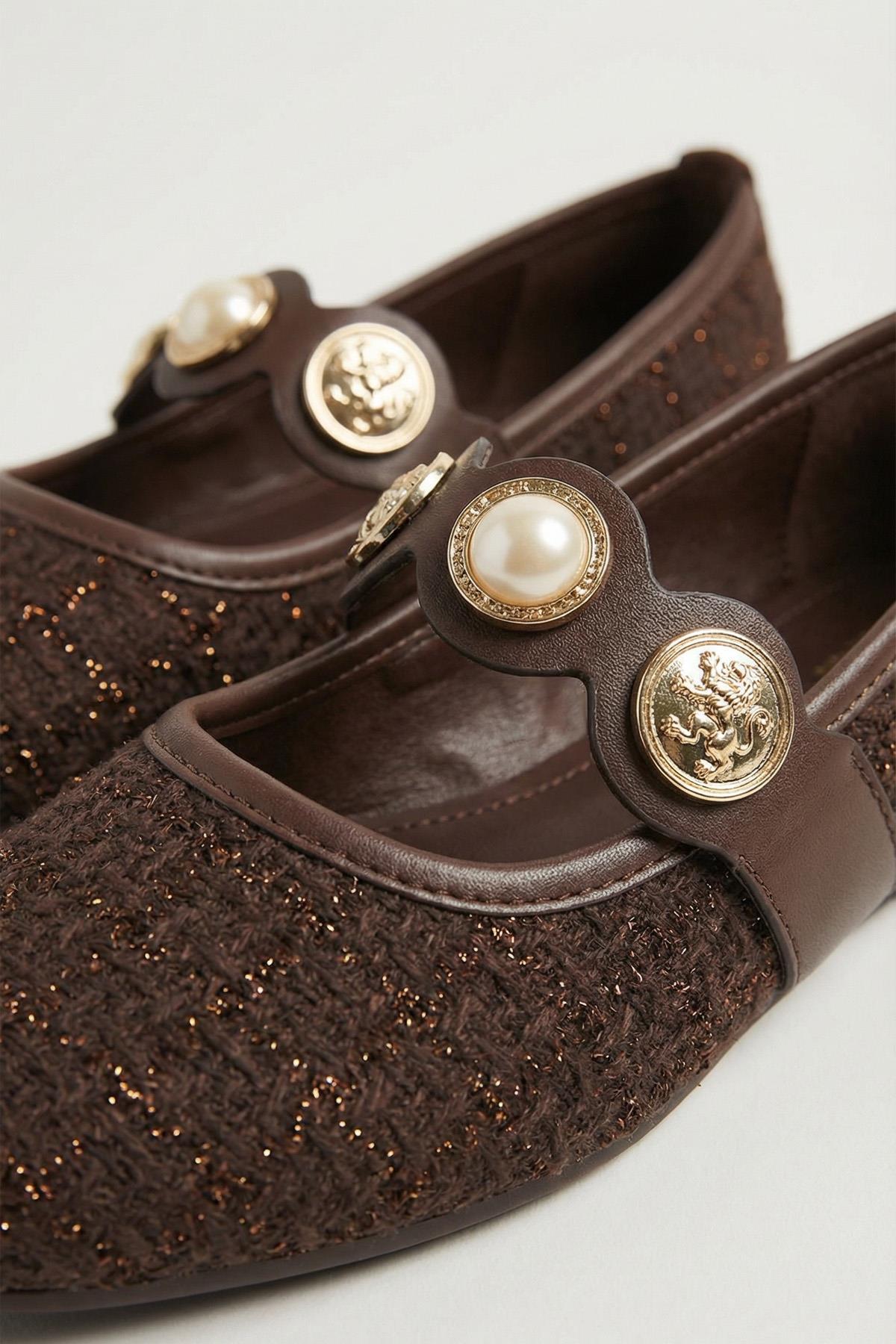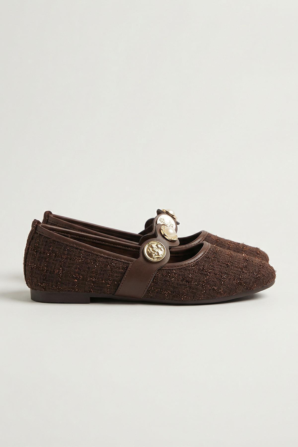Kahve Simli Taş Detay Babet 7044