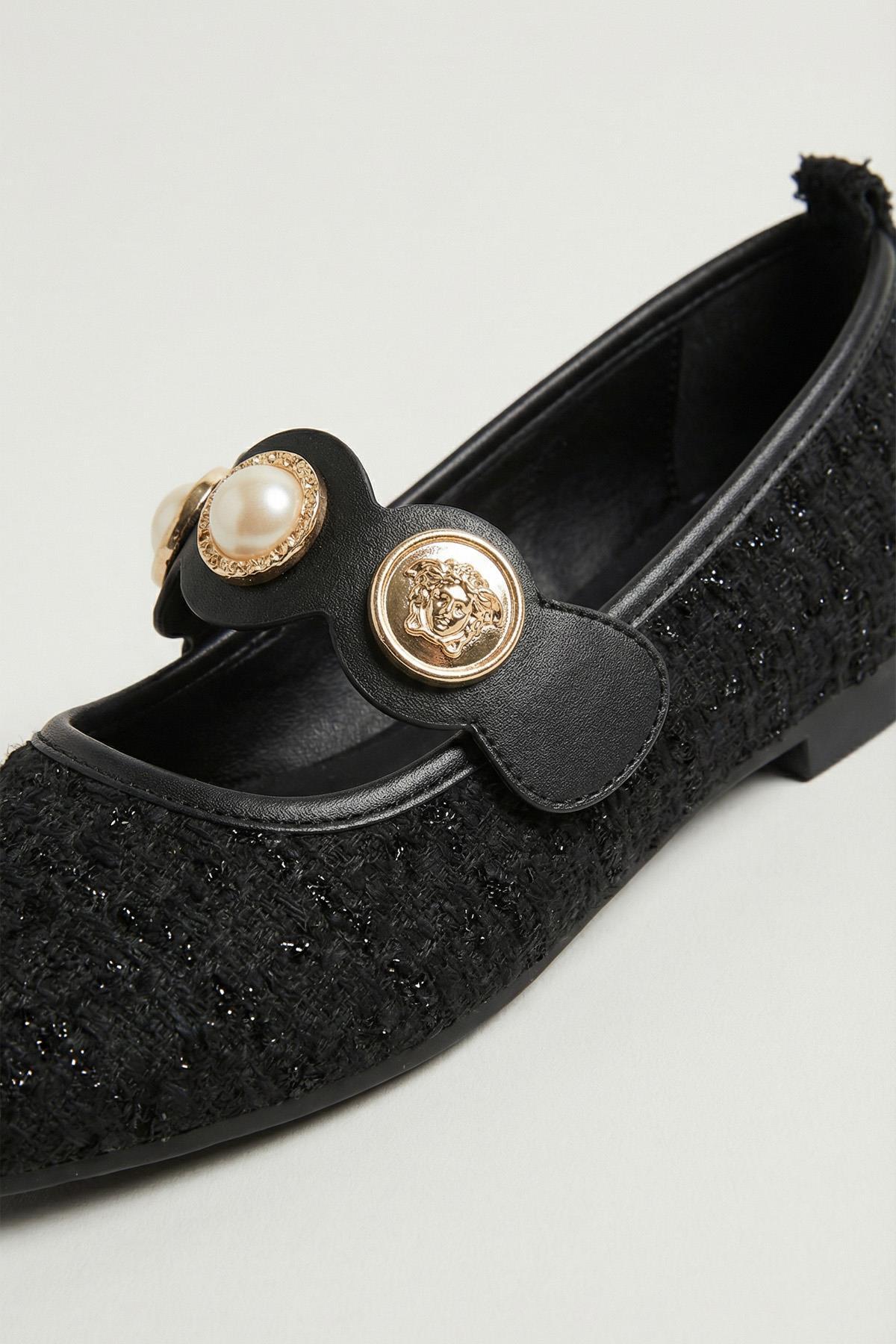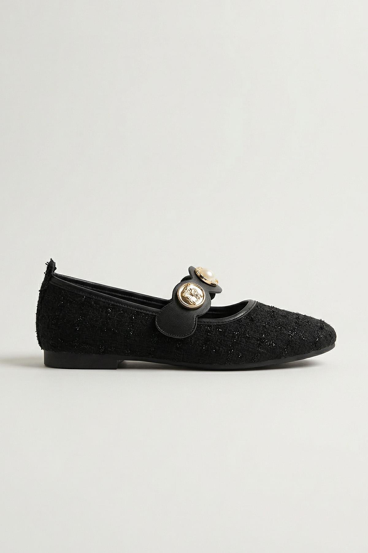 Siyah Simli Taş Detay Babet 7044