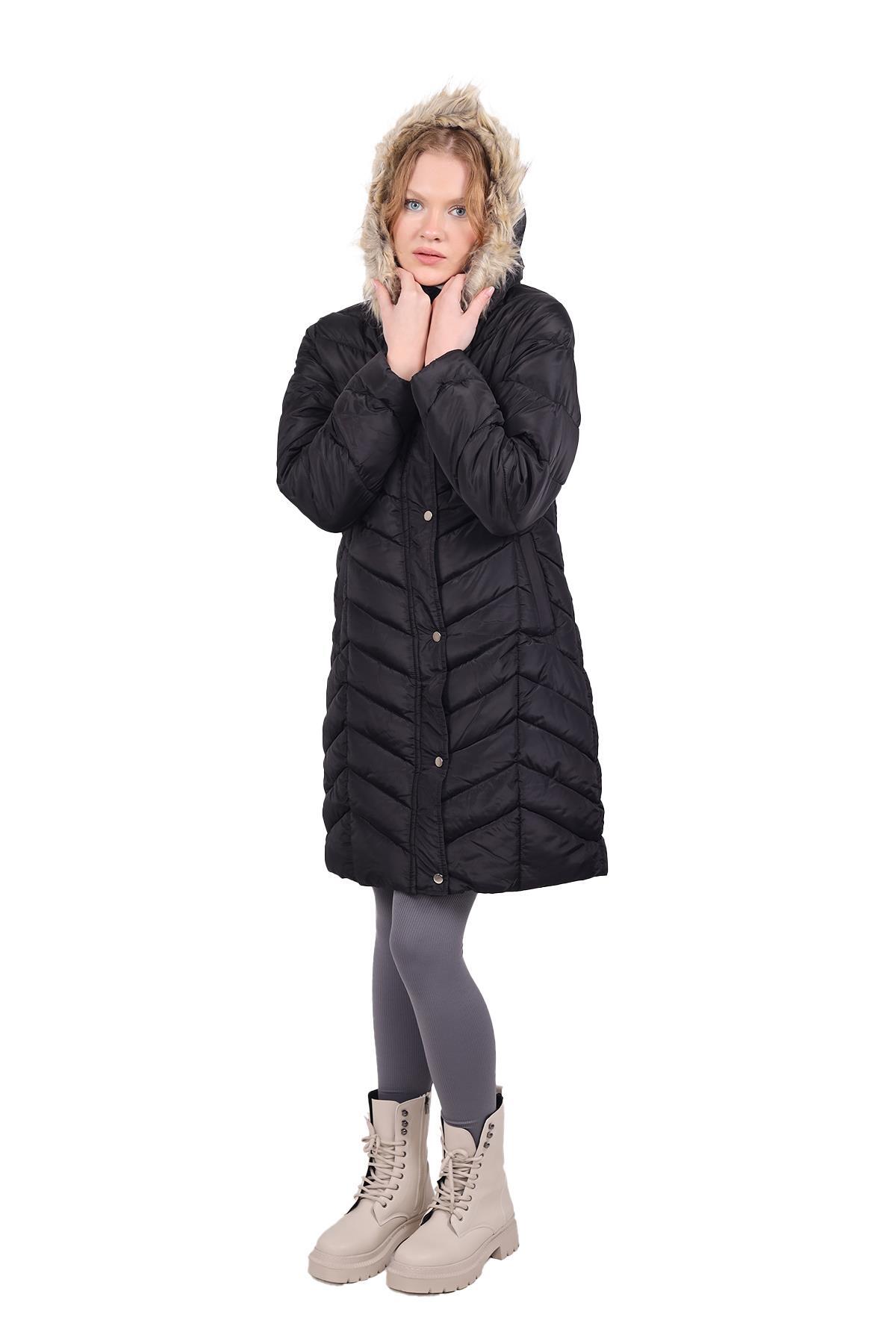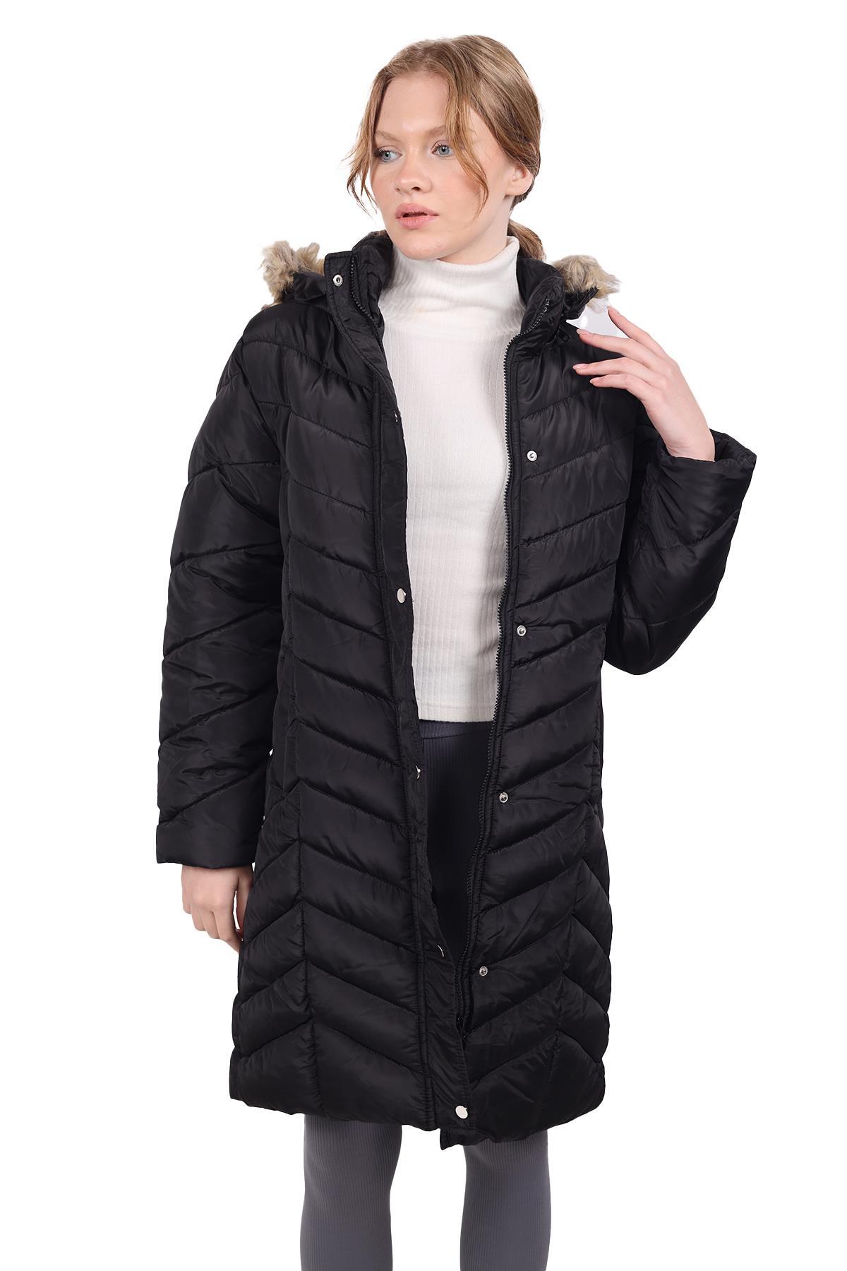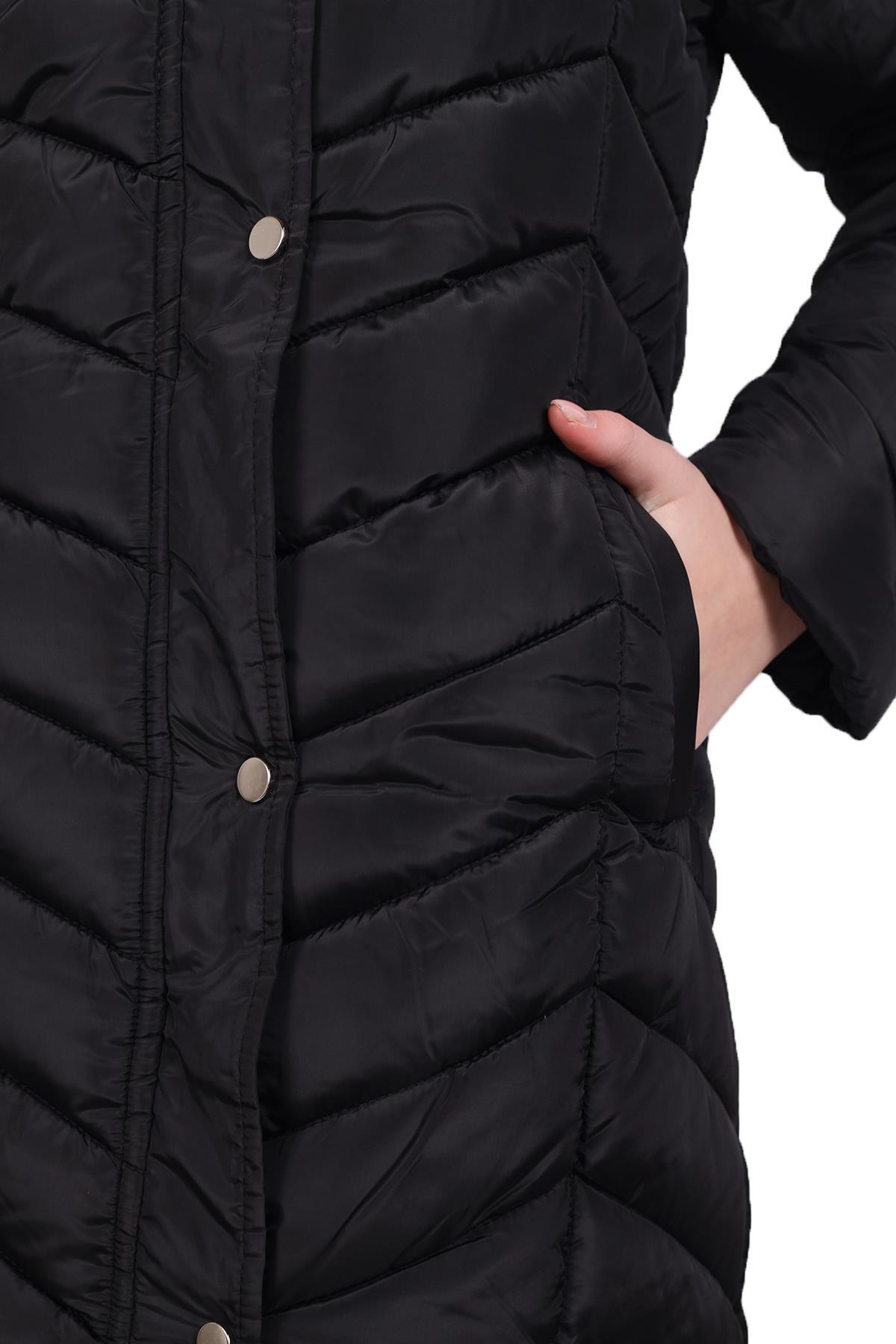 Siyah Kapüşonlu Parlak Uzun Mont 7045