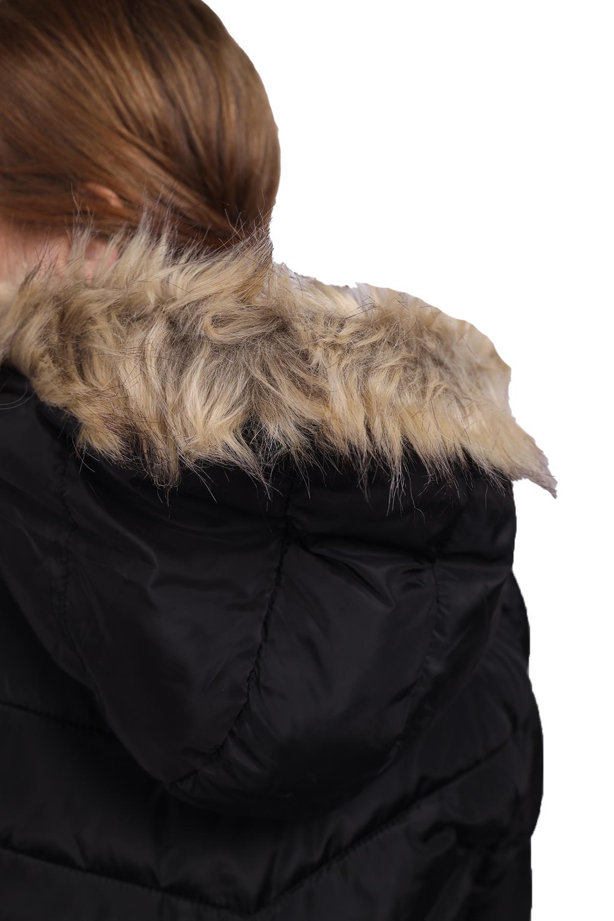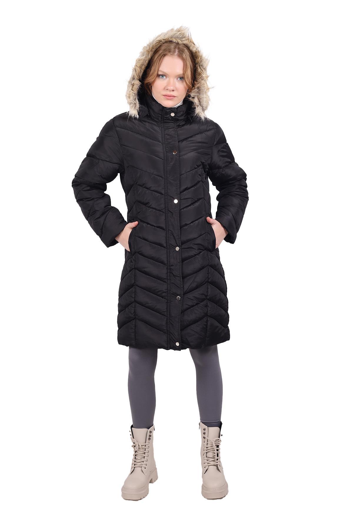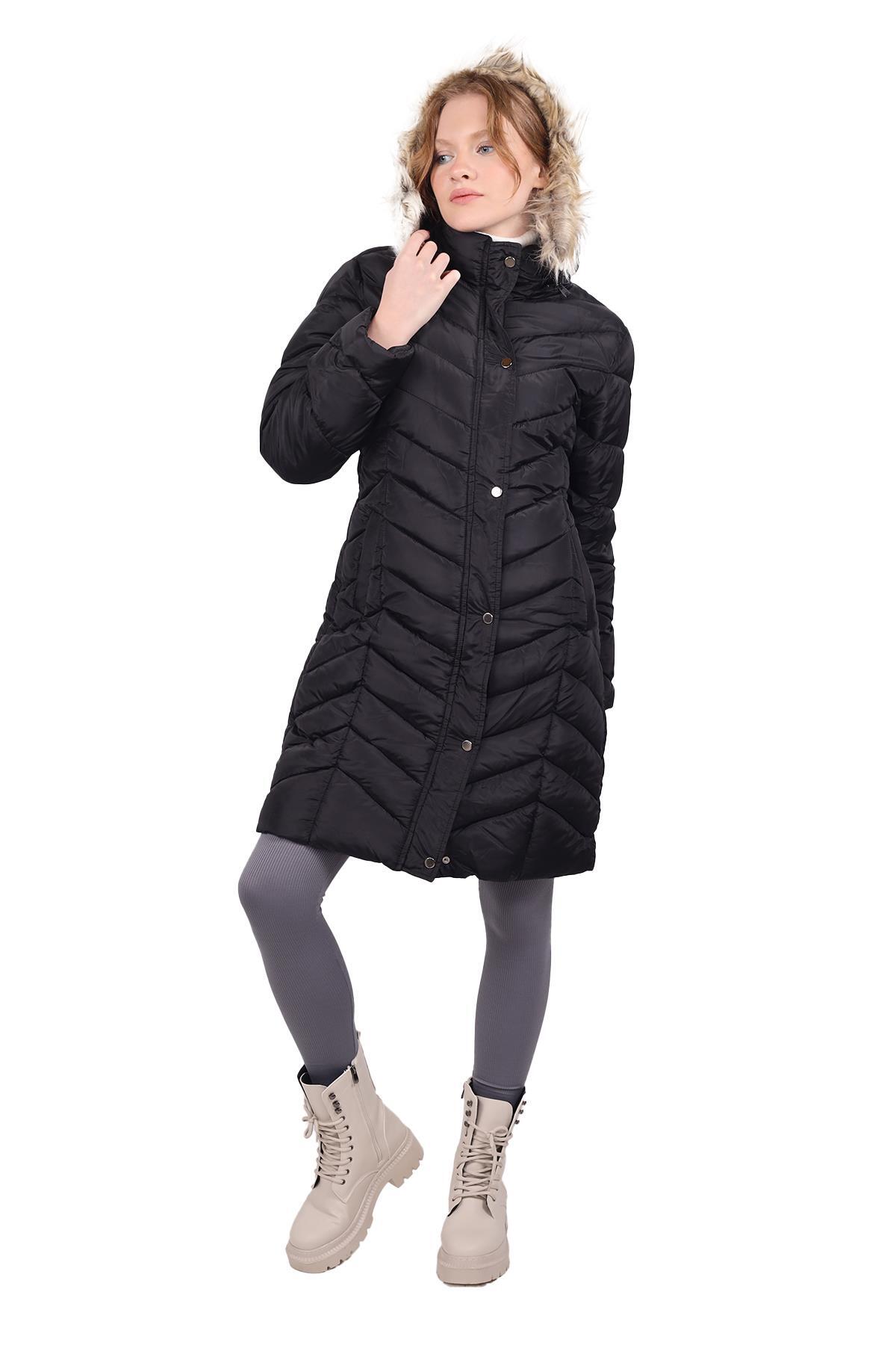 Siyah Kapüşonlu Parlak Uzun Mont 7045