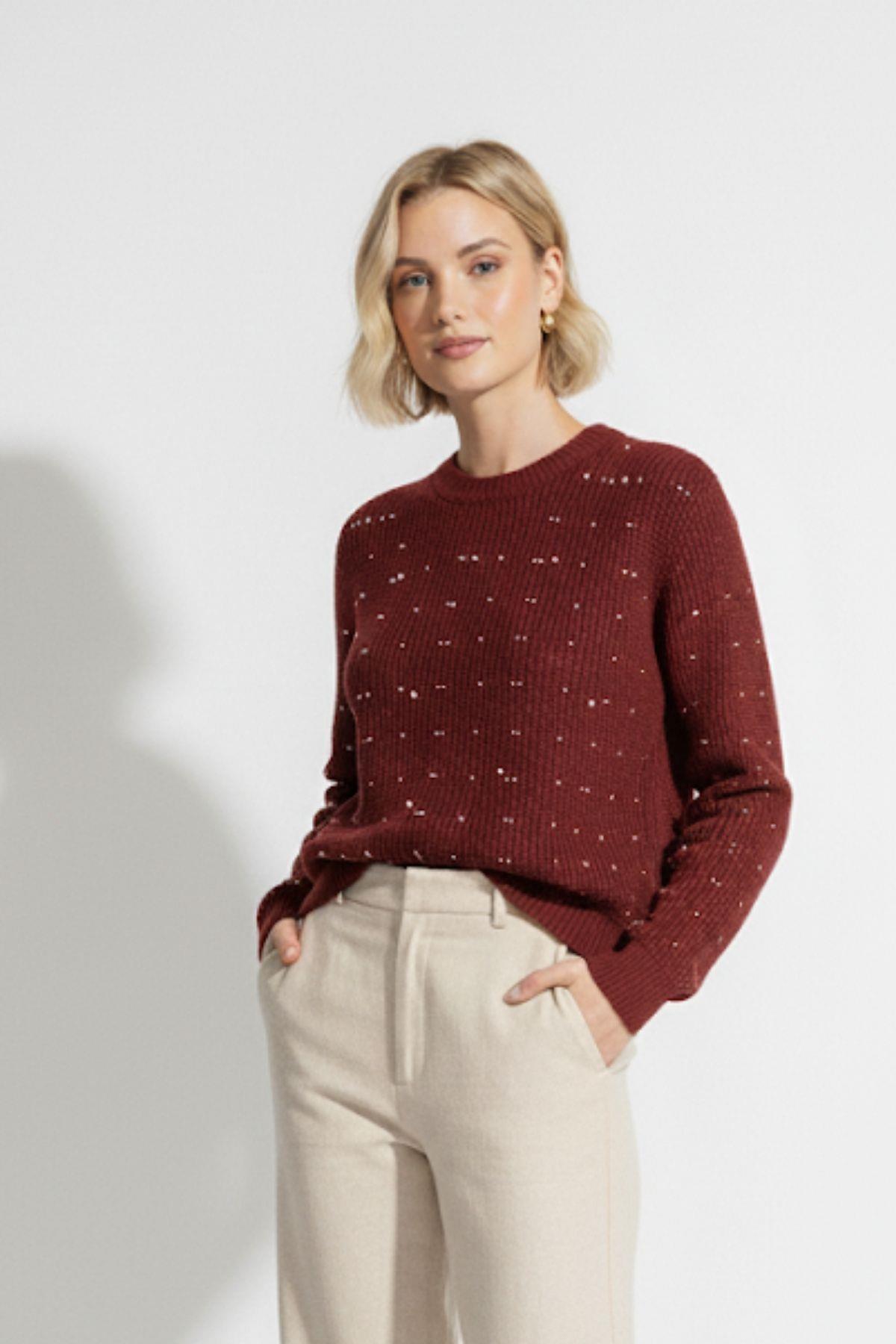 7045 Kol Örgü Detay Taşlı Kazak Bordo