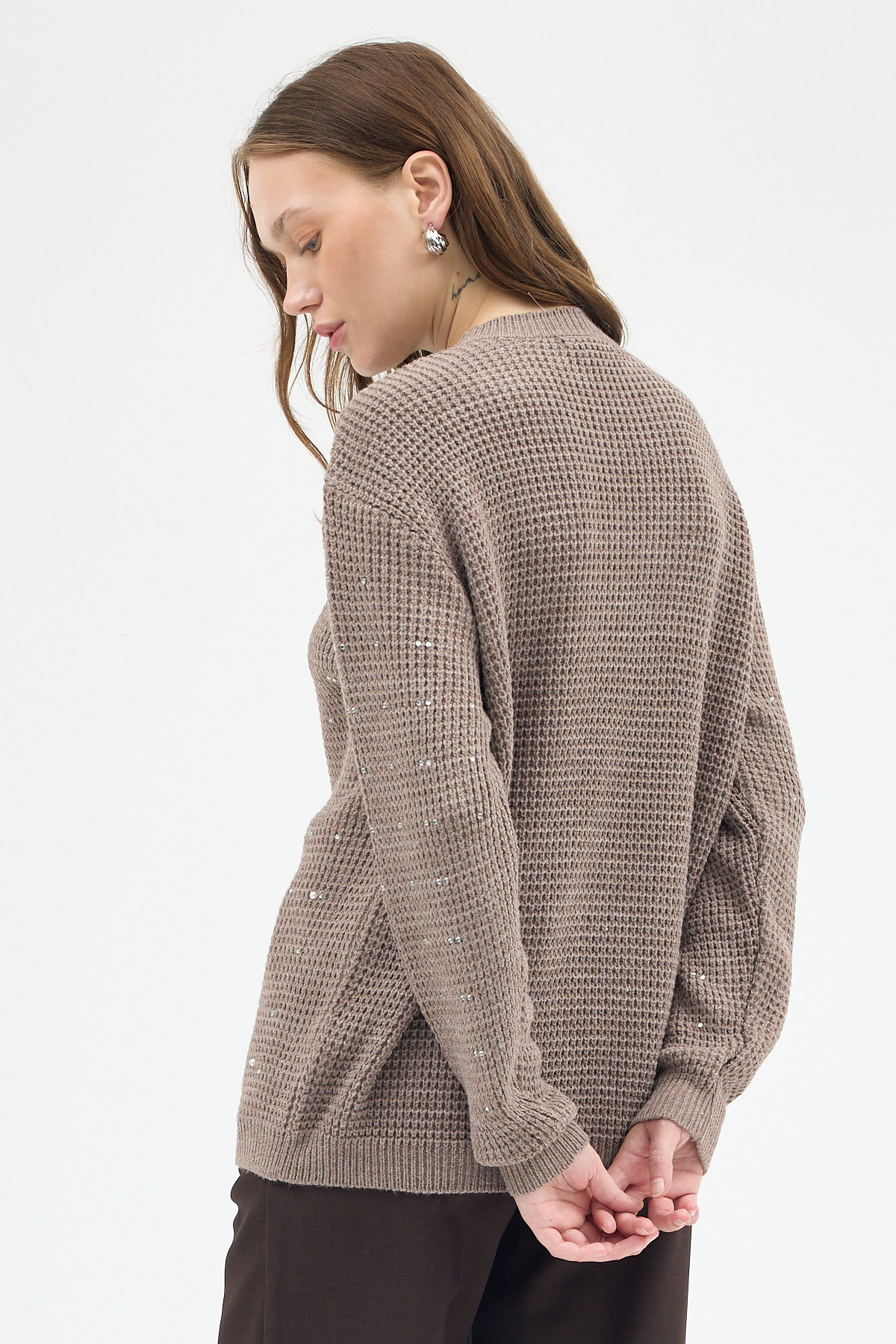 Kahve - Ekru Yıldız Baskılı Oversize Kazak 2474 - RAYS Kahve - Ekru Yıldız Baskılı Oversize Kazak 2474 - RAYS (1)
