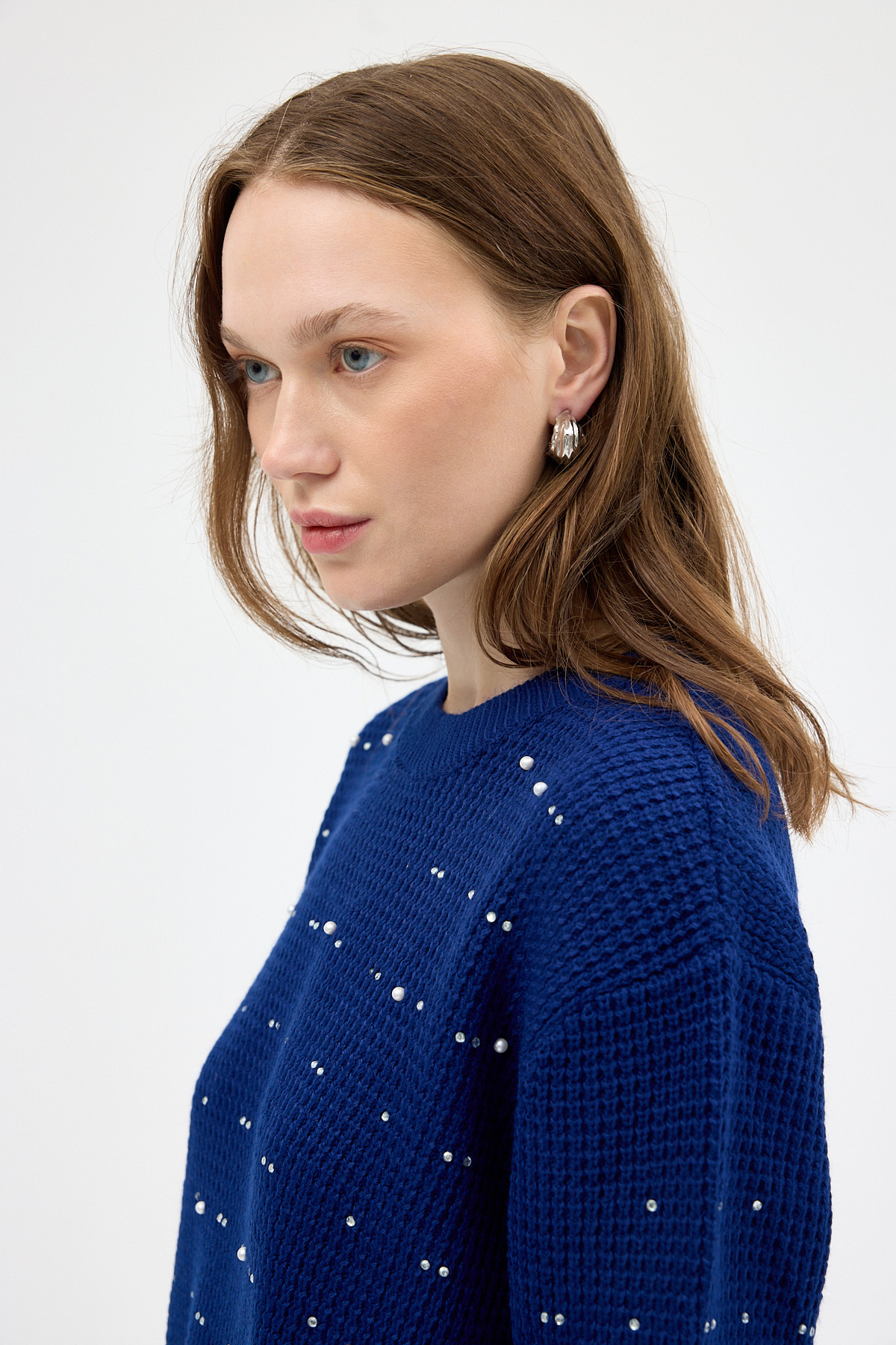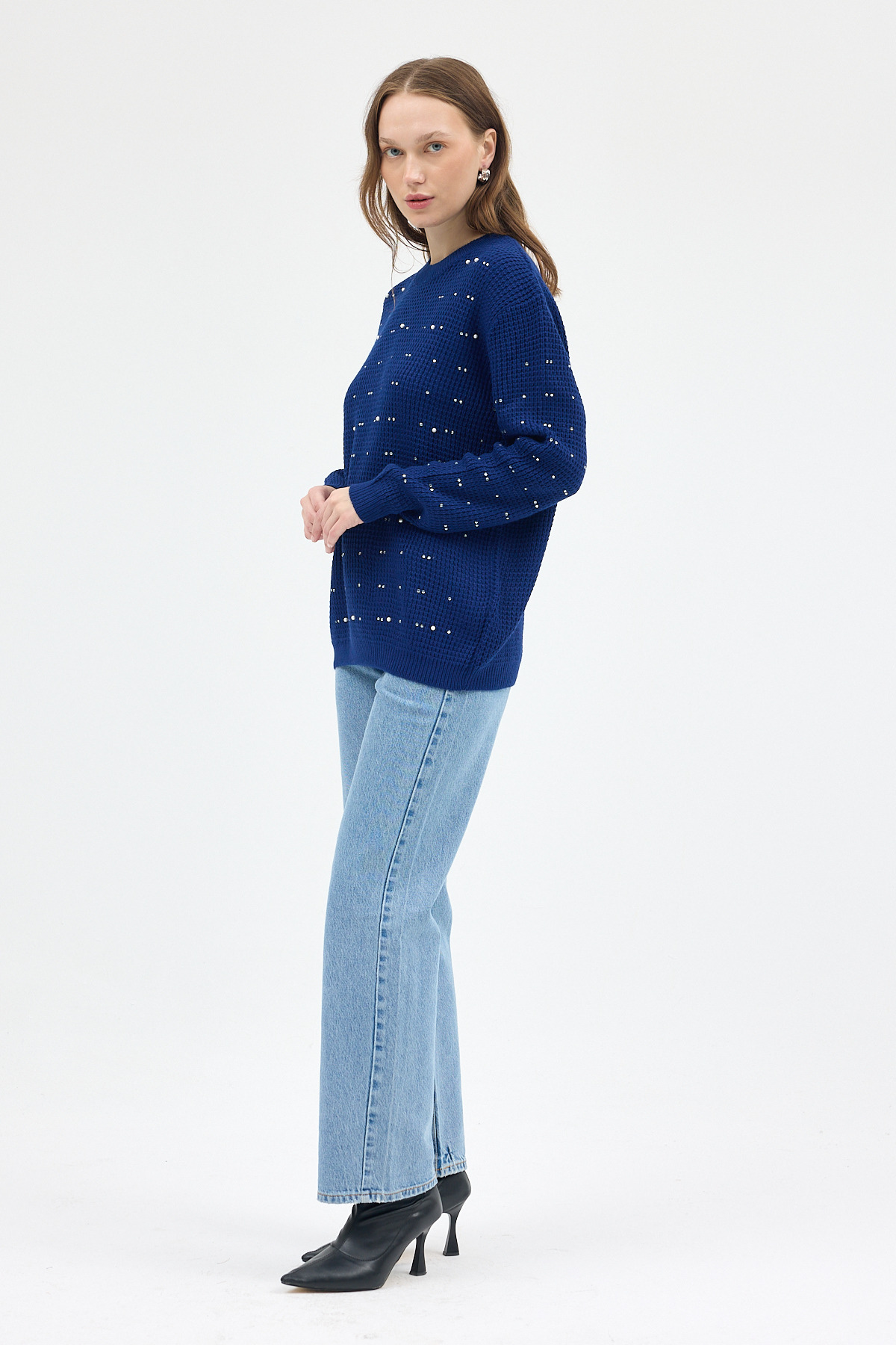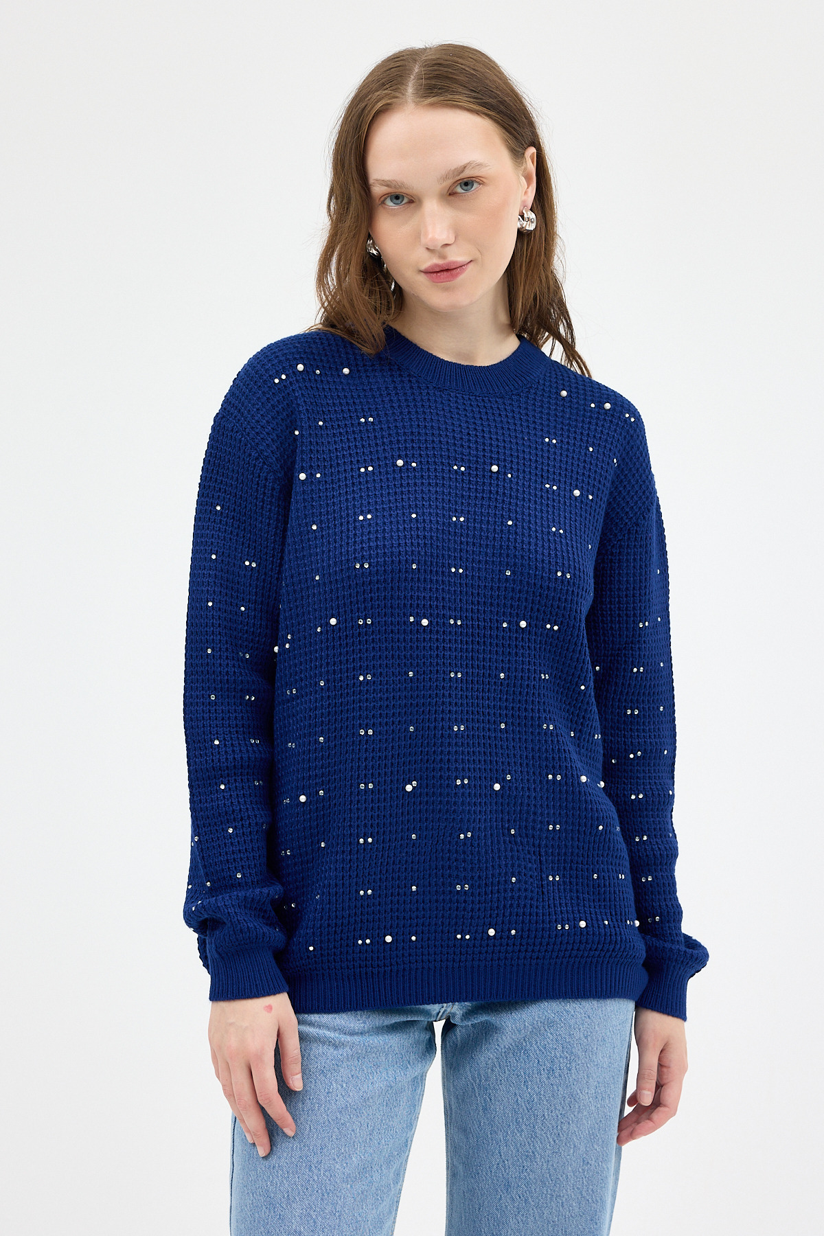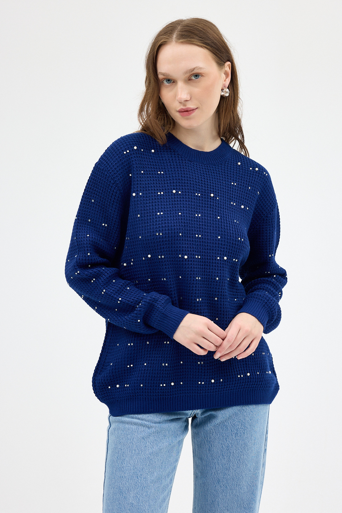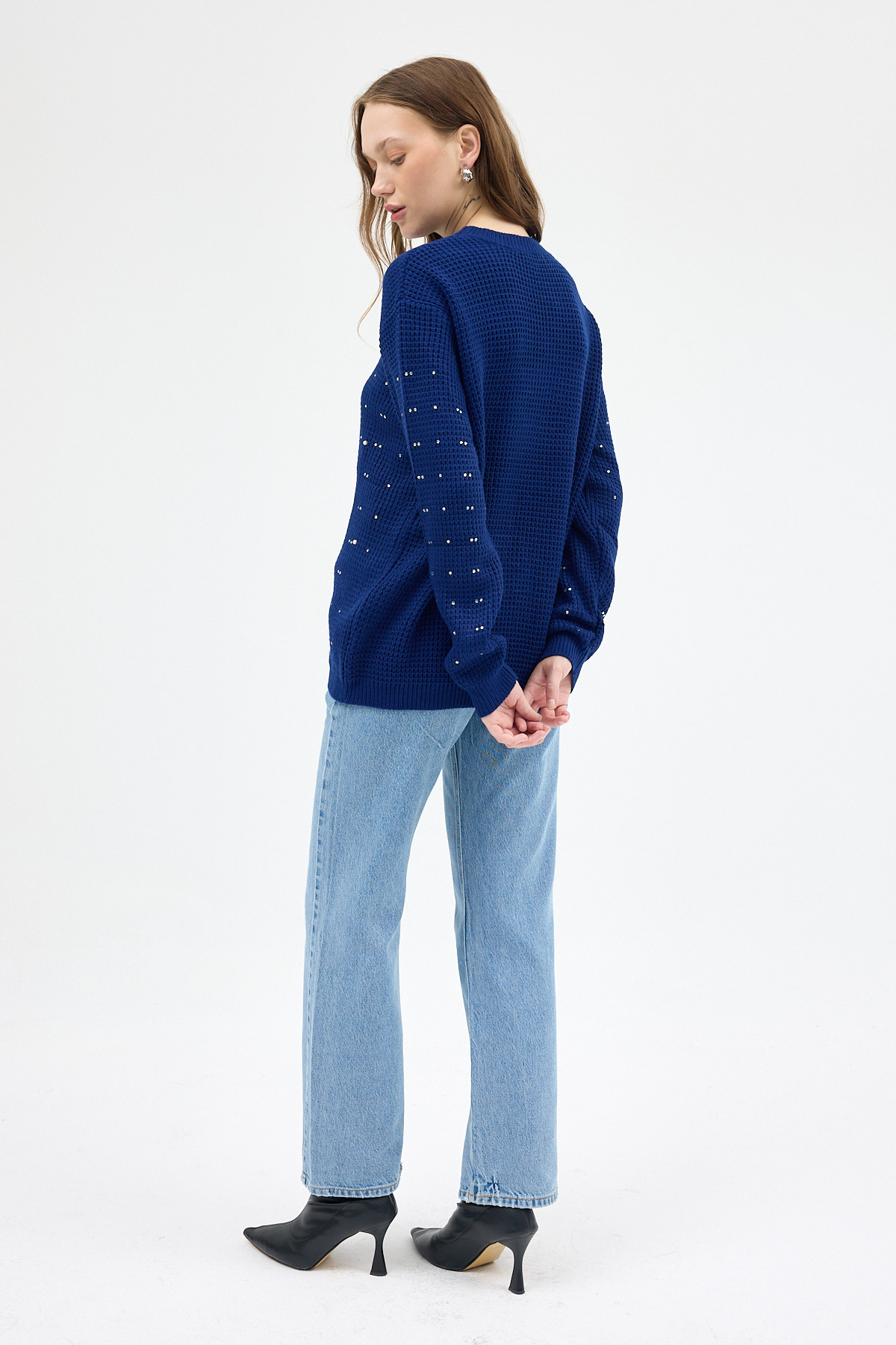 Laci Kadın Taş İşleme Detaylı Bisiklet Yaka Triko Kazak 7045