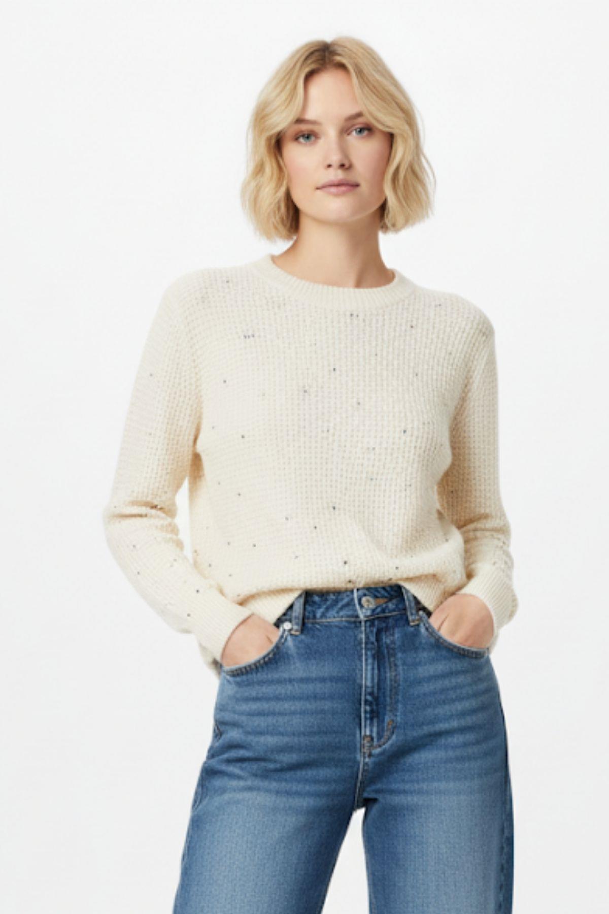 7045 Kol Örgü Detay Taşlı Kazak Natural