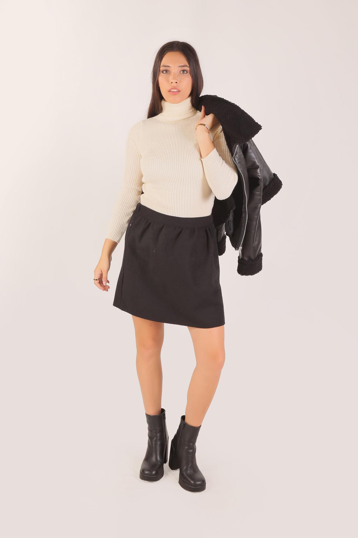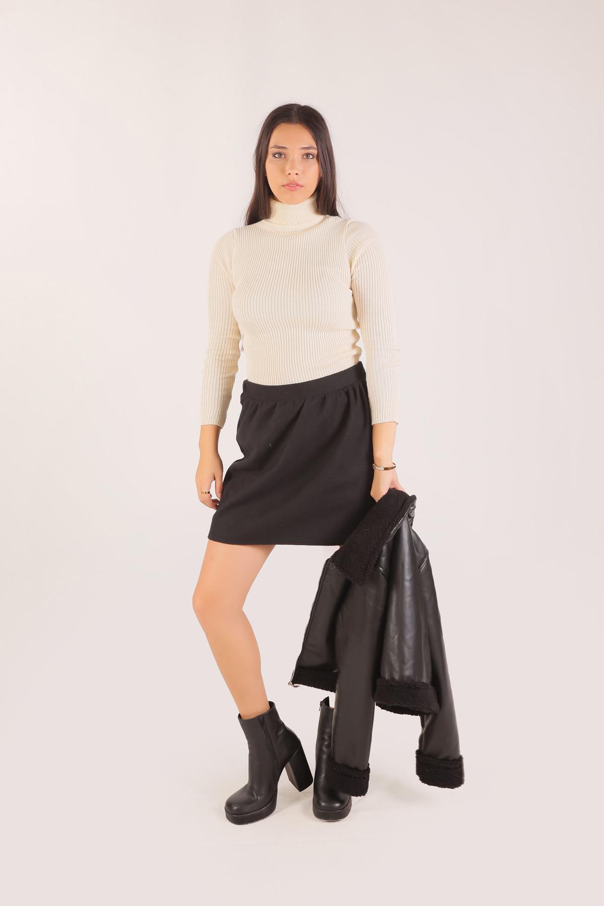 Siyah Ekose Desen Bel Lastikli Etek 3507-1