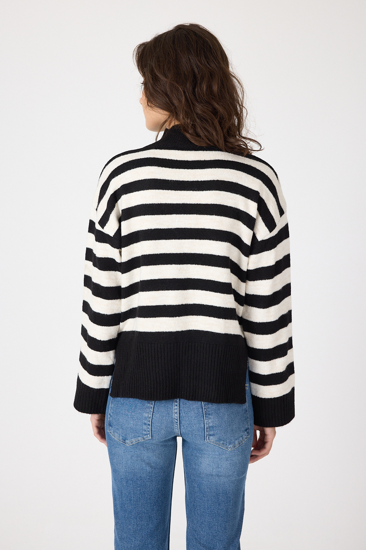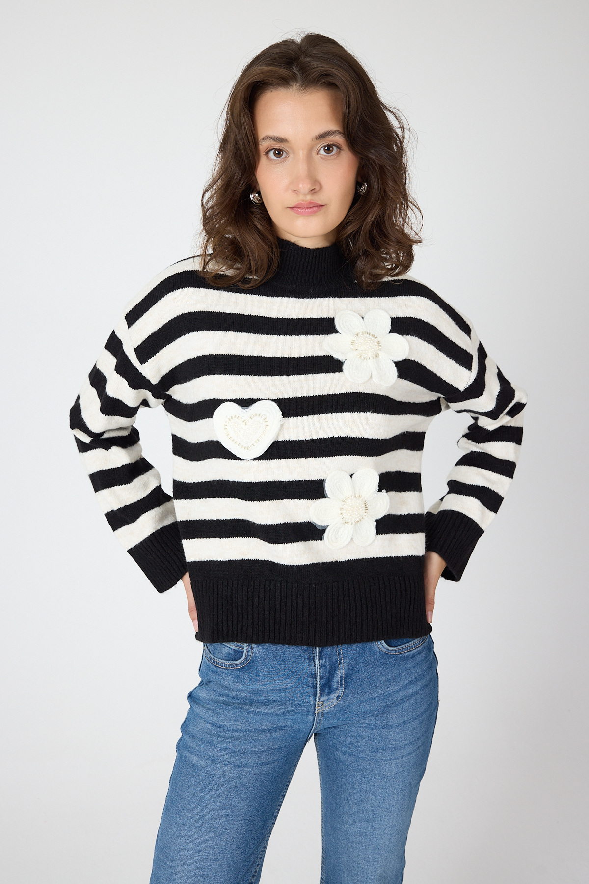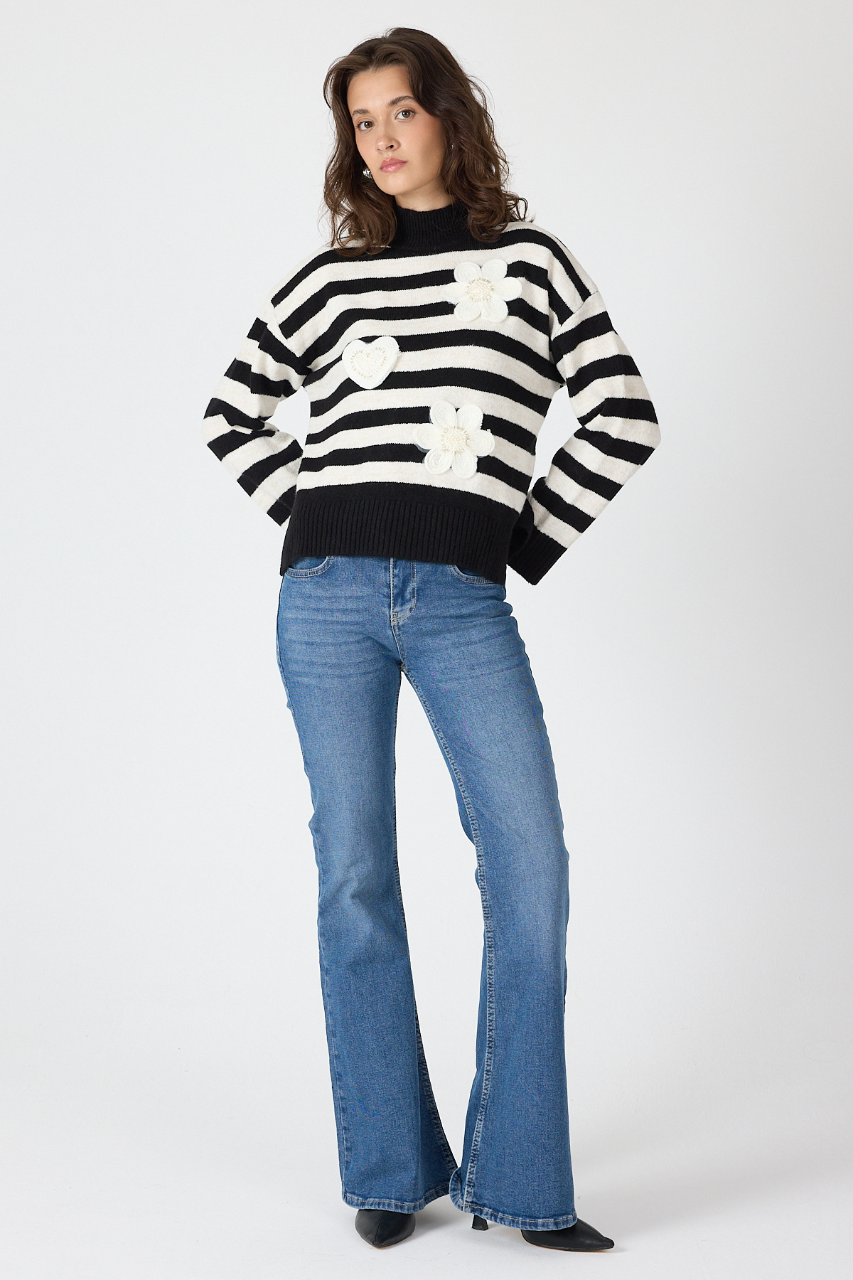 Siyah Çizgili İşleme Detaylı Kazak 7090