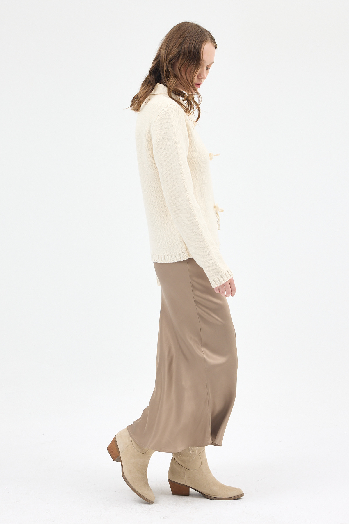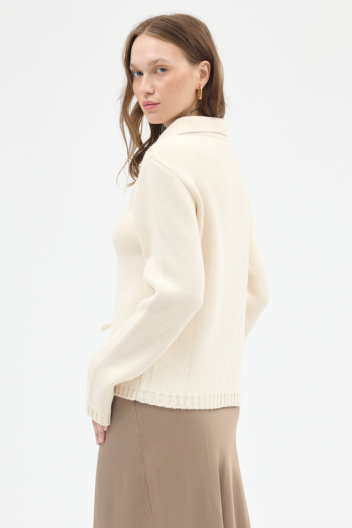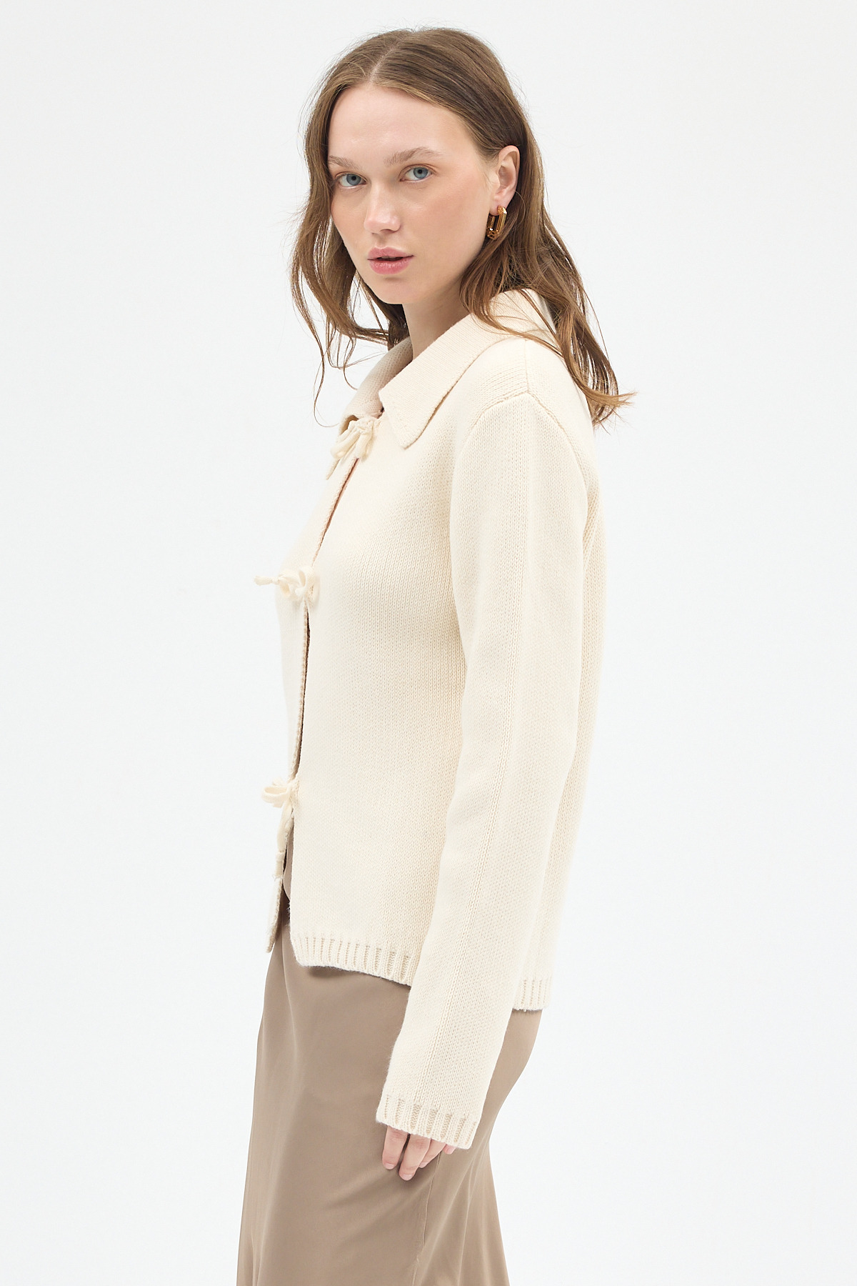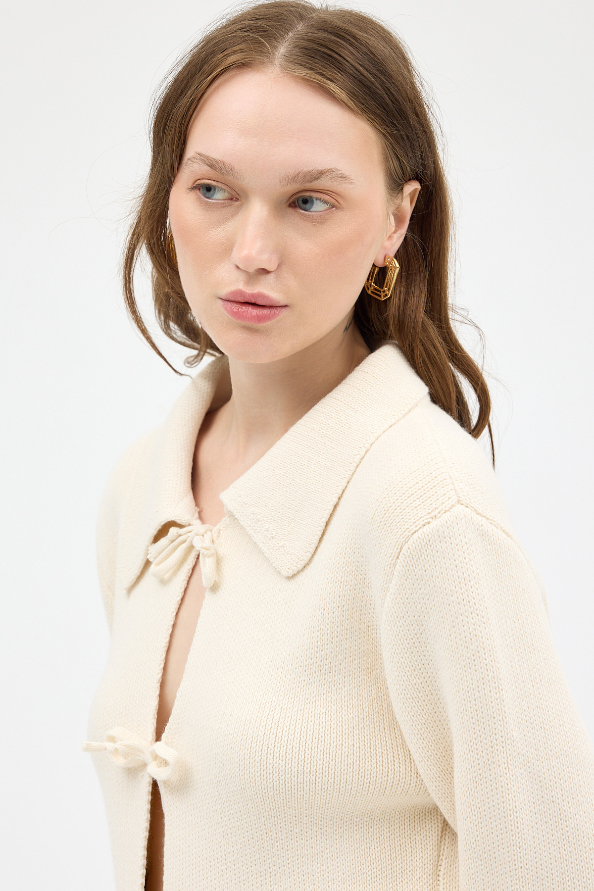 Natural Kadın Bağlamalı Polo Yaka Triko Hırka 7095