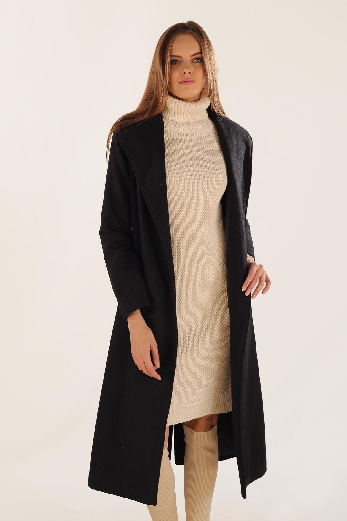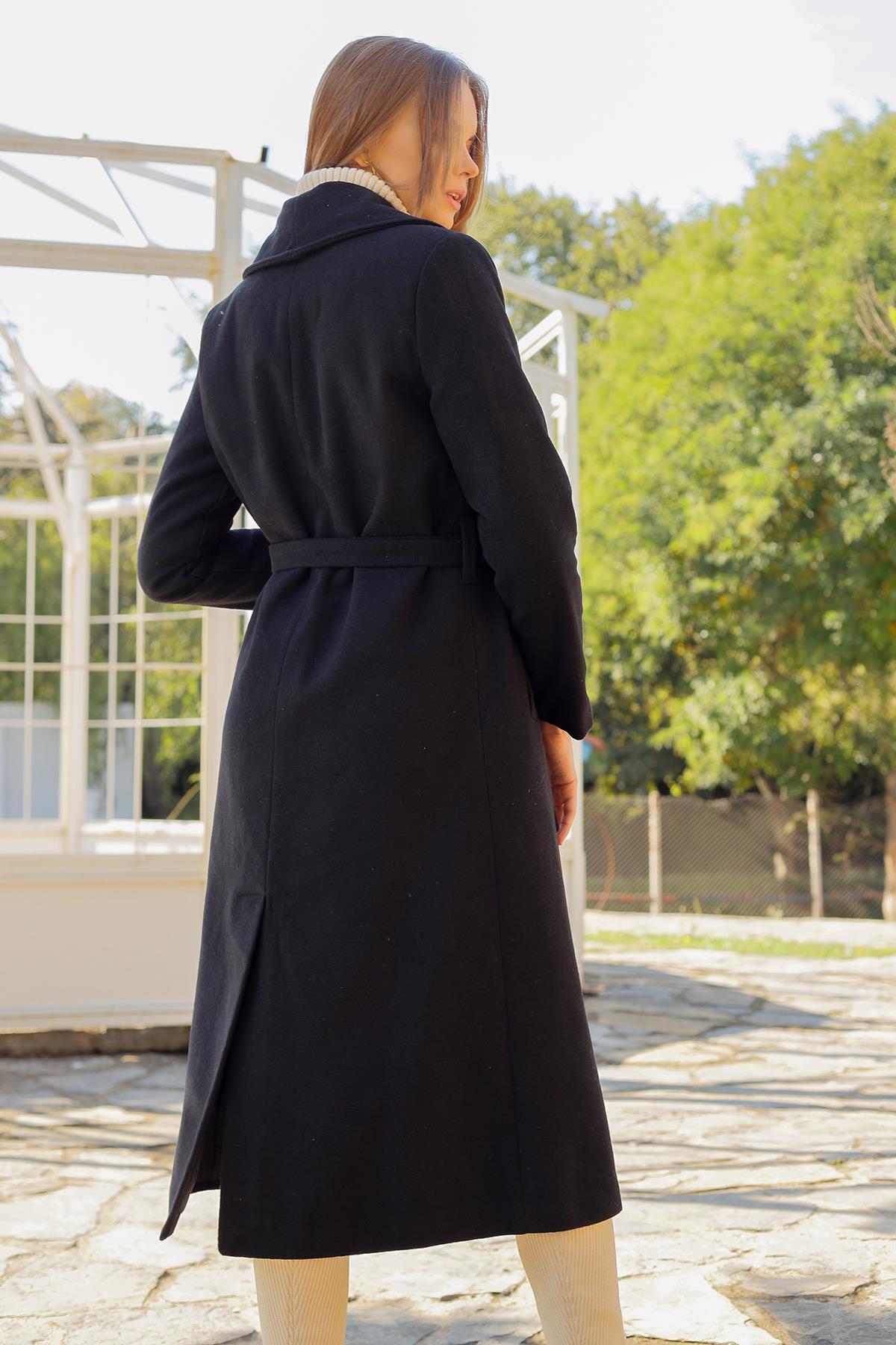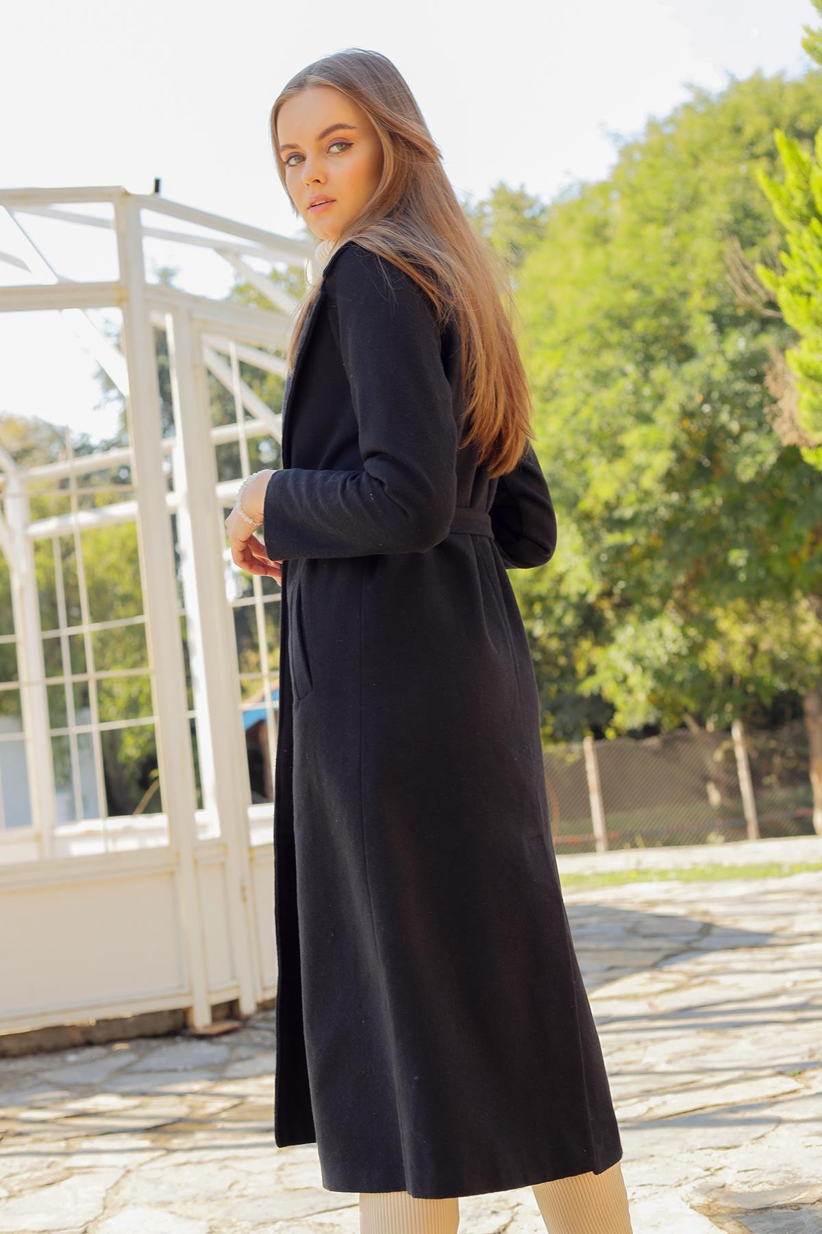 Siyah Kol Vatkalı Kaşe Kaban 7100A