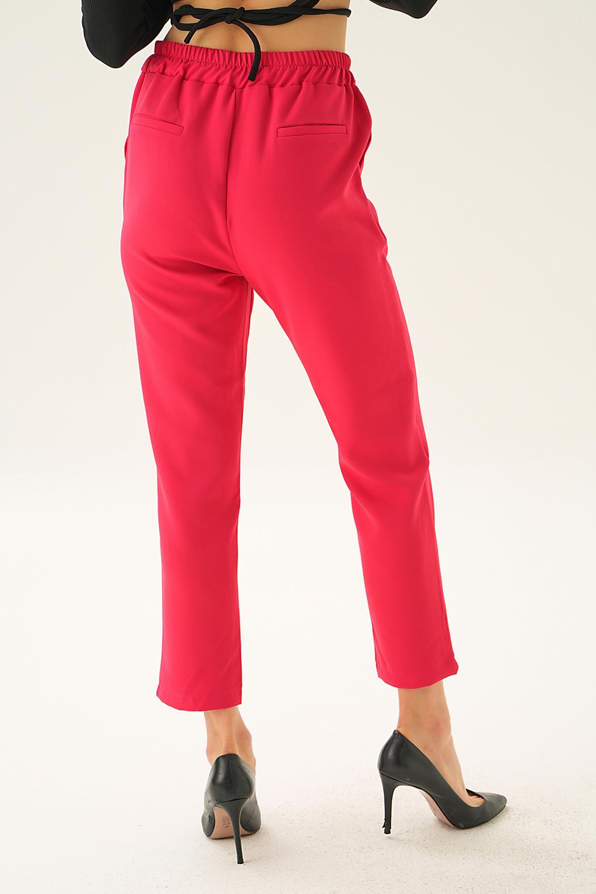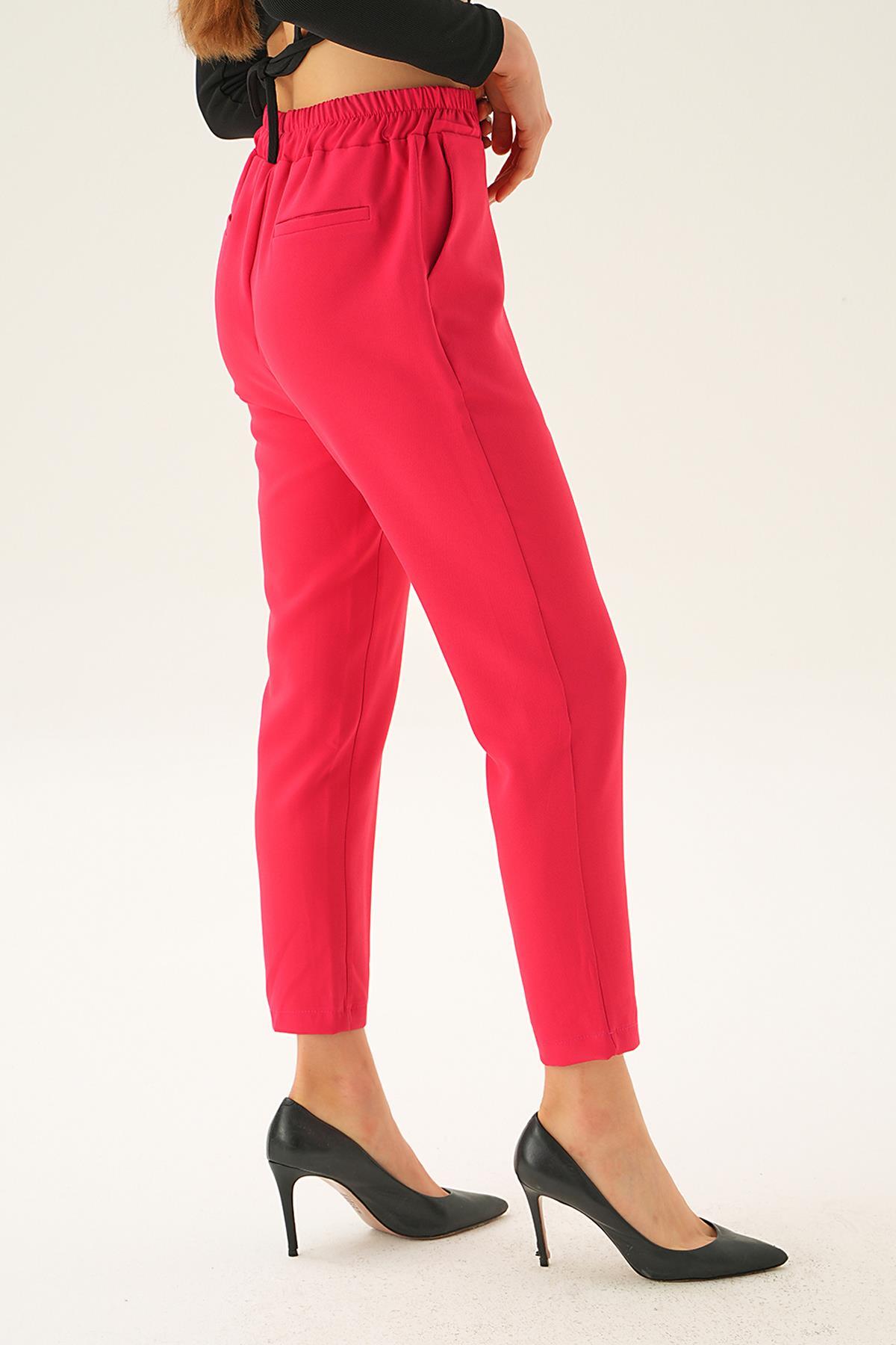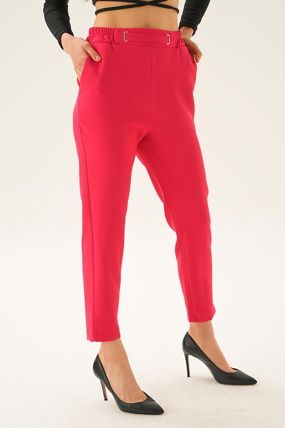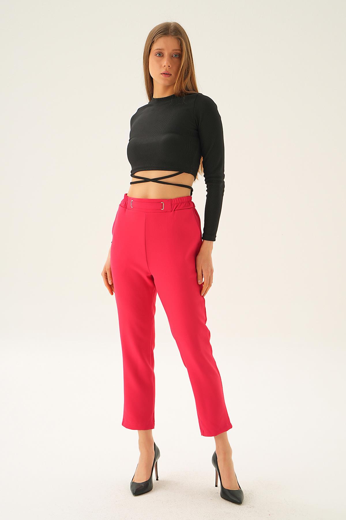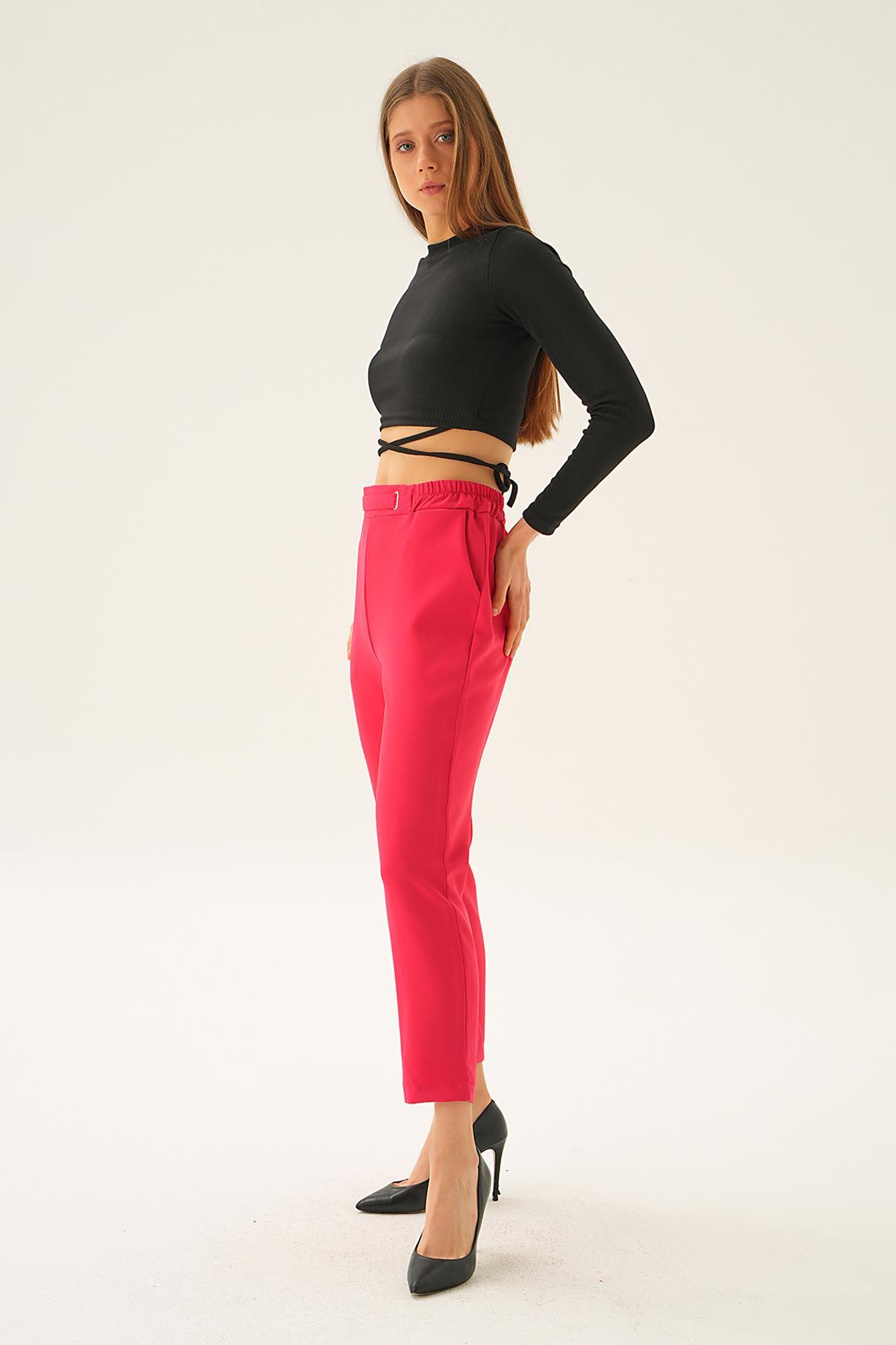 Fuşya Bel Aksesuar Detay Pantolon 7105-1