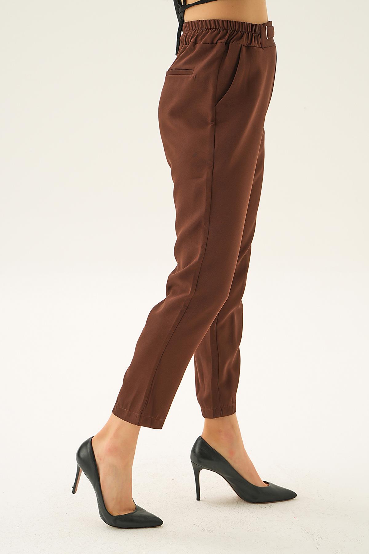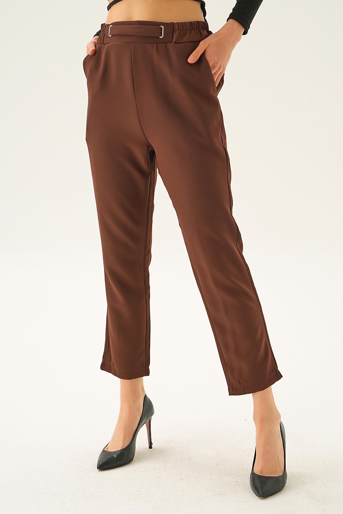 Kahve Bel Aksesuar Detay Pantolon 7105-1